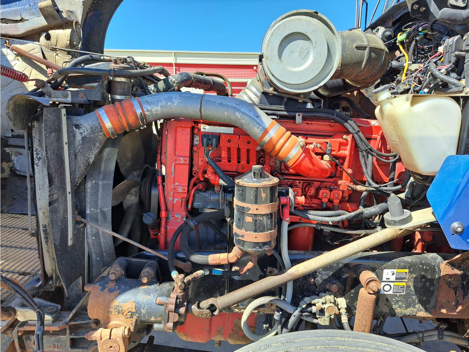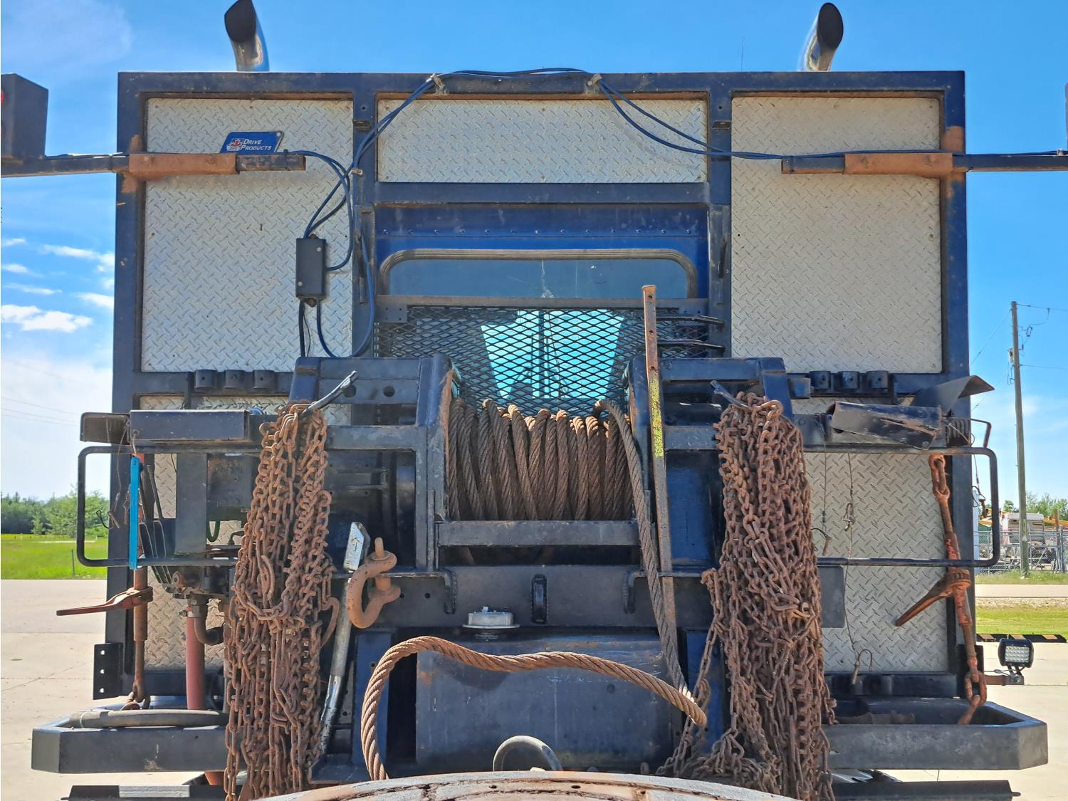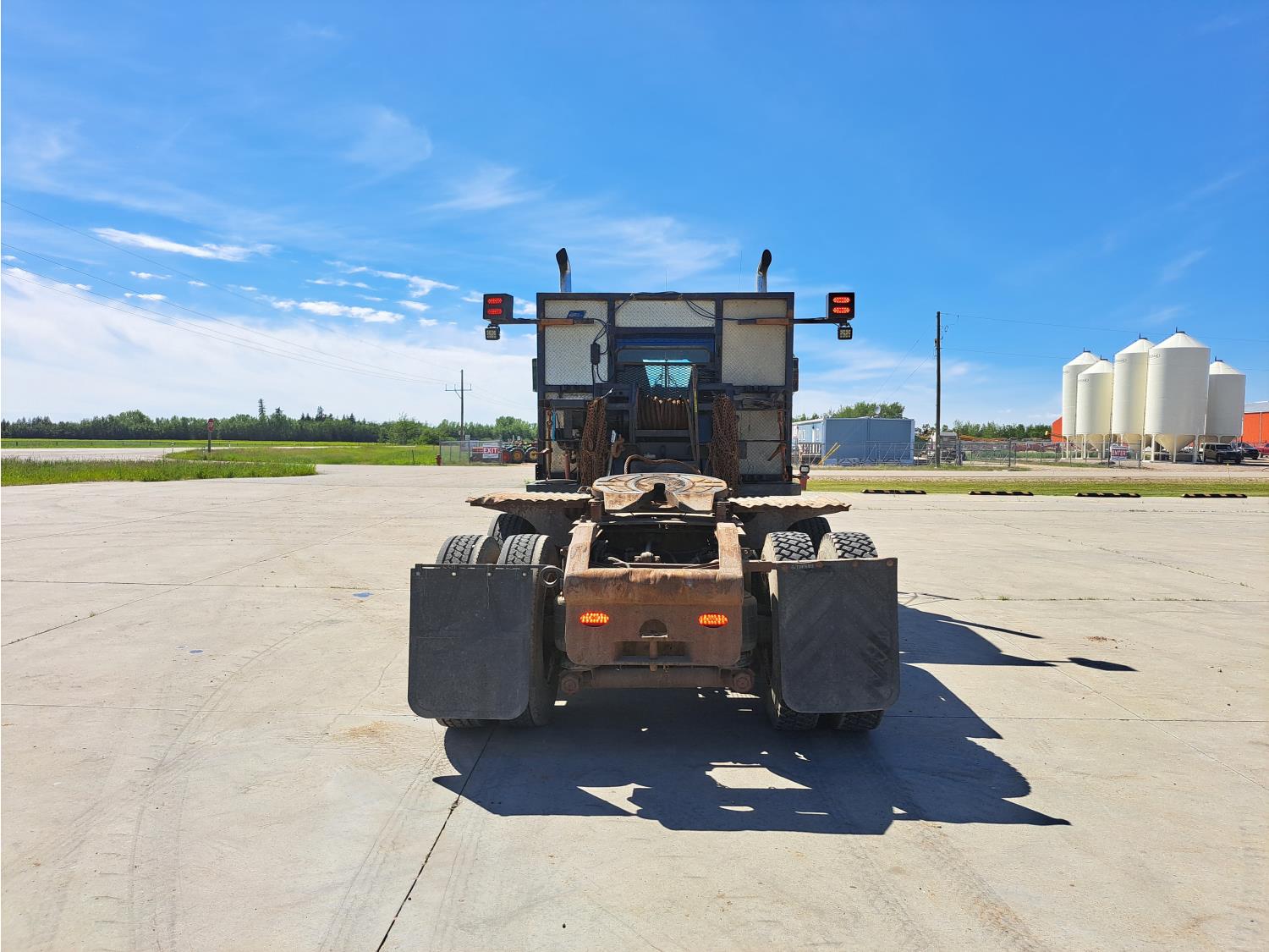 Cummins 475 HP diesel engine, engine brake, Eaton FULLER 18 speed manual transmission, A/C, cruise control, leather interior, stereo, moose bumper, headache rack, beacons, chain holders, hydraulic winch, diff lock, 11R24.5 tires