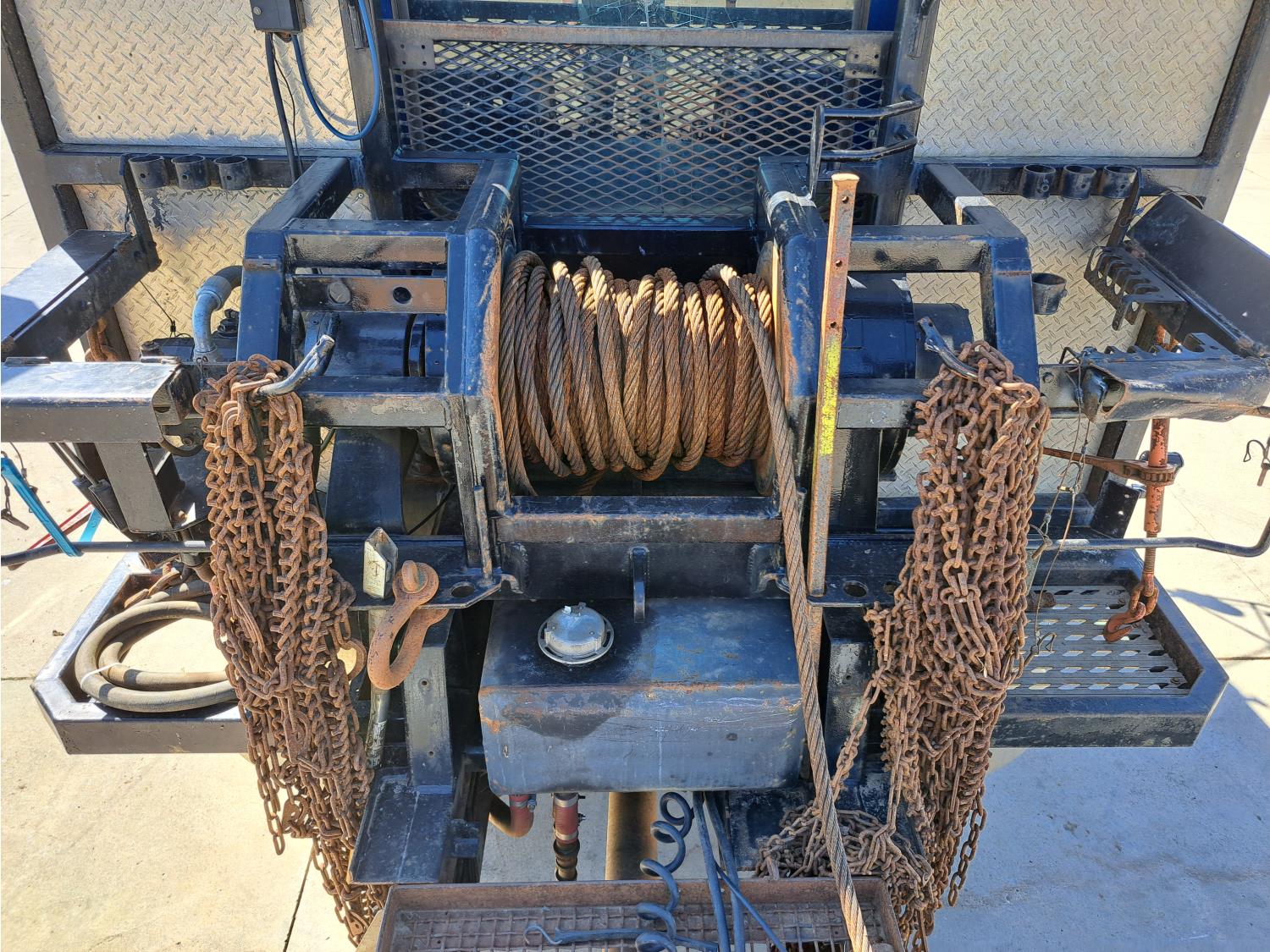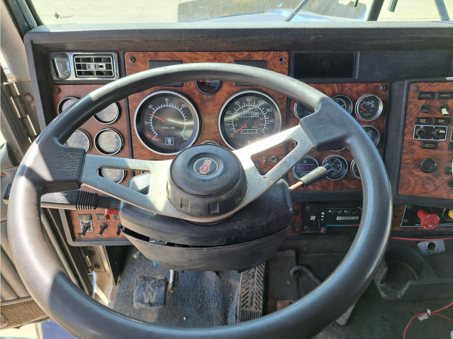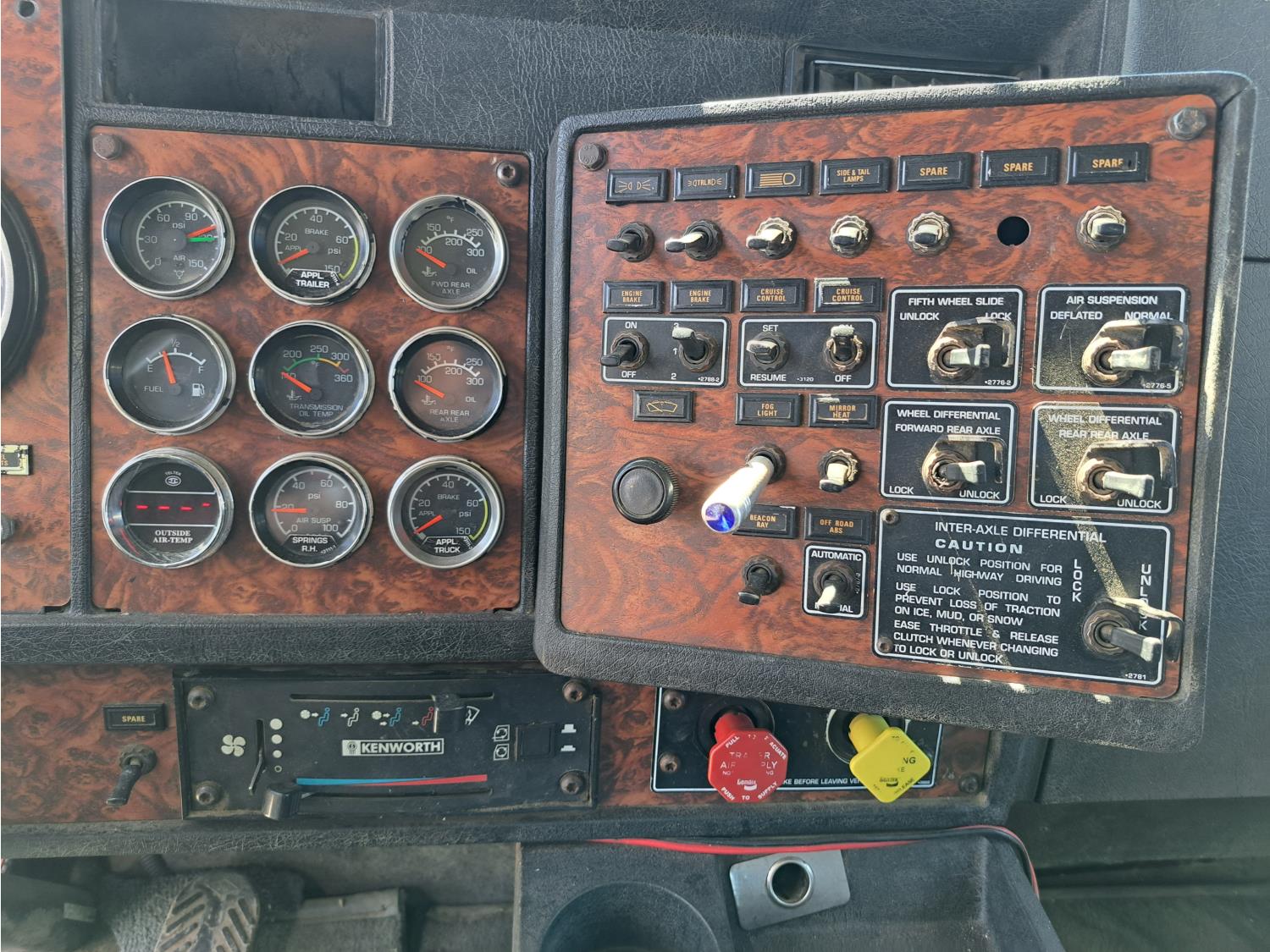 Cummins 475 HP diesel engine, engine brake, Eaton FULLER 18 speed manual transmission, A/C, cruise control, leather interior, stereo, moose bumper, headache rack, beacons, chain holders, hydraulic winch, diff lock, 11R24.5 tires