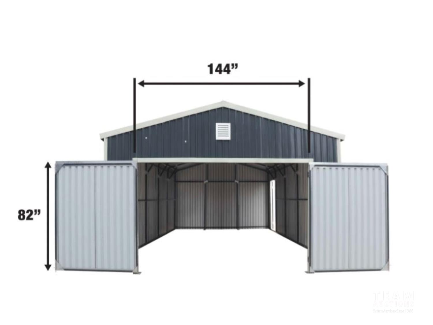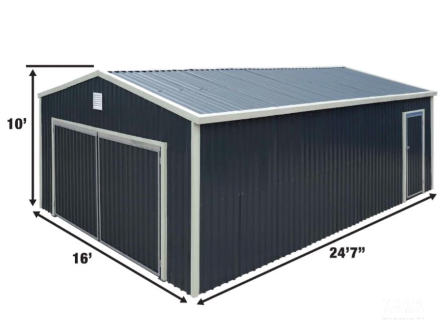 458 TMG Industrial MS1624 16 Ft X 24 Ft Metal Garage Shed (Unused)