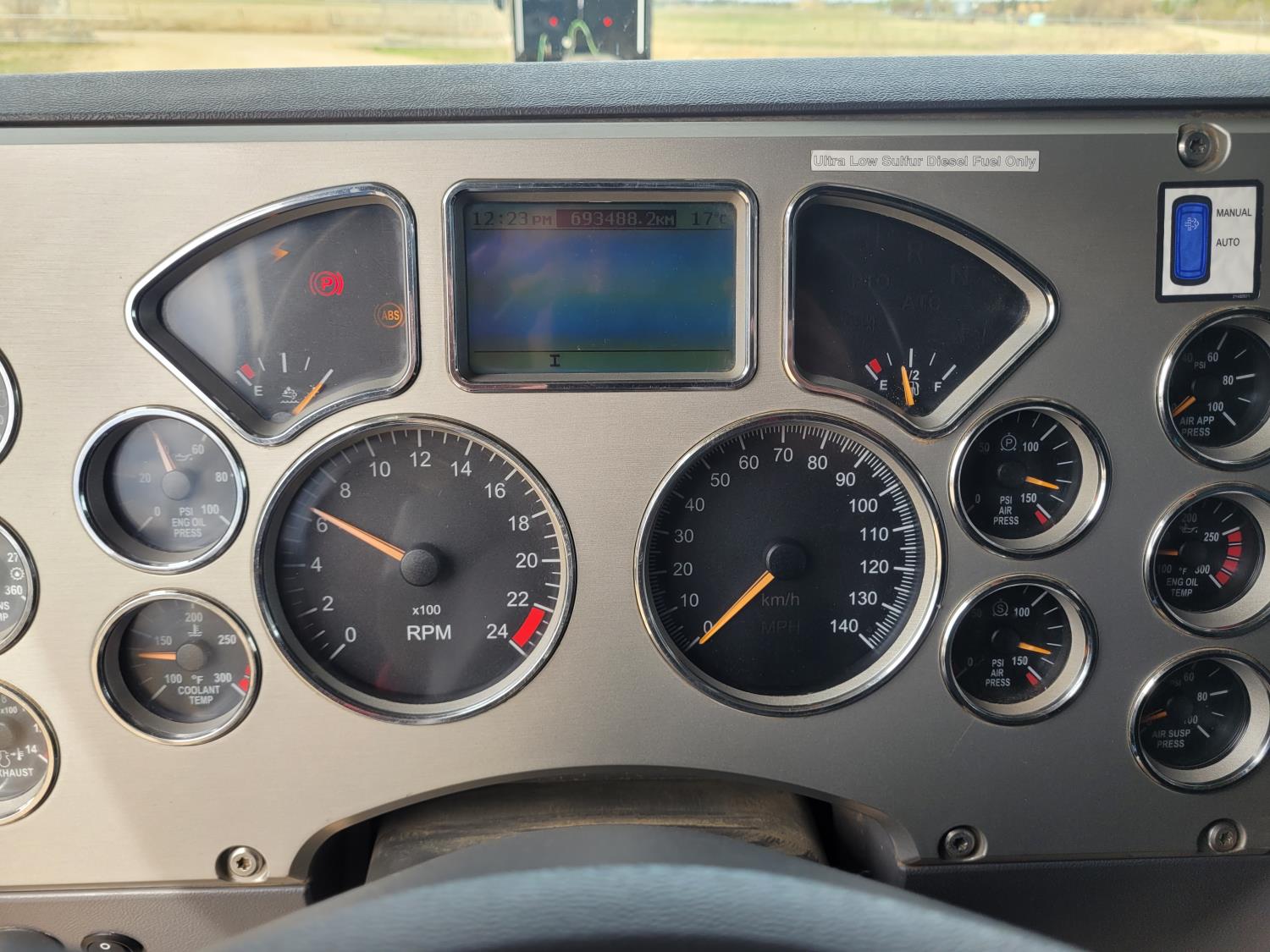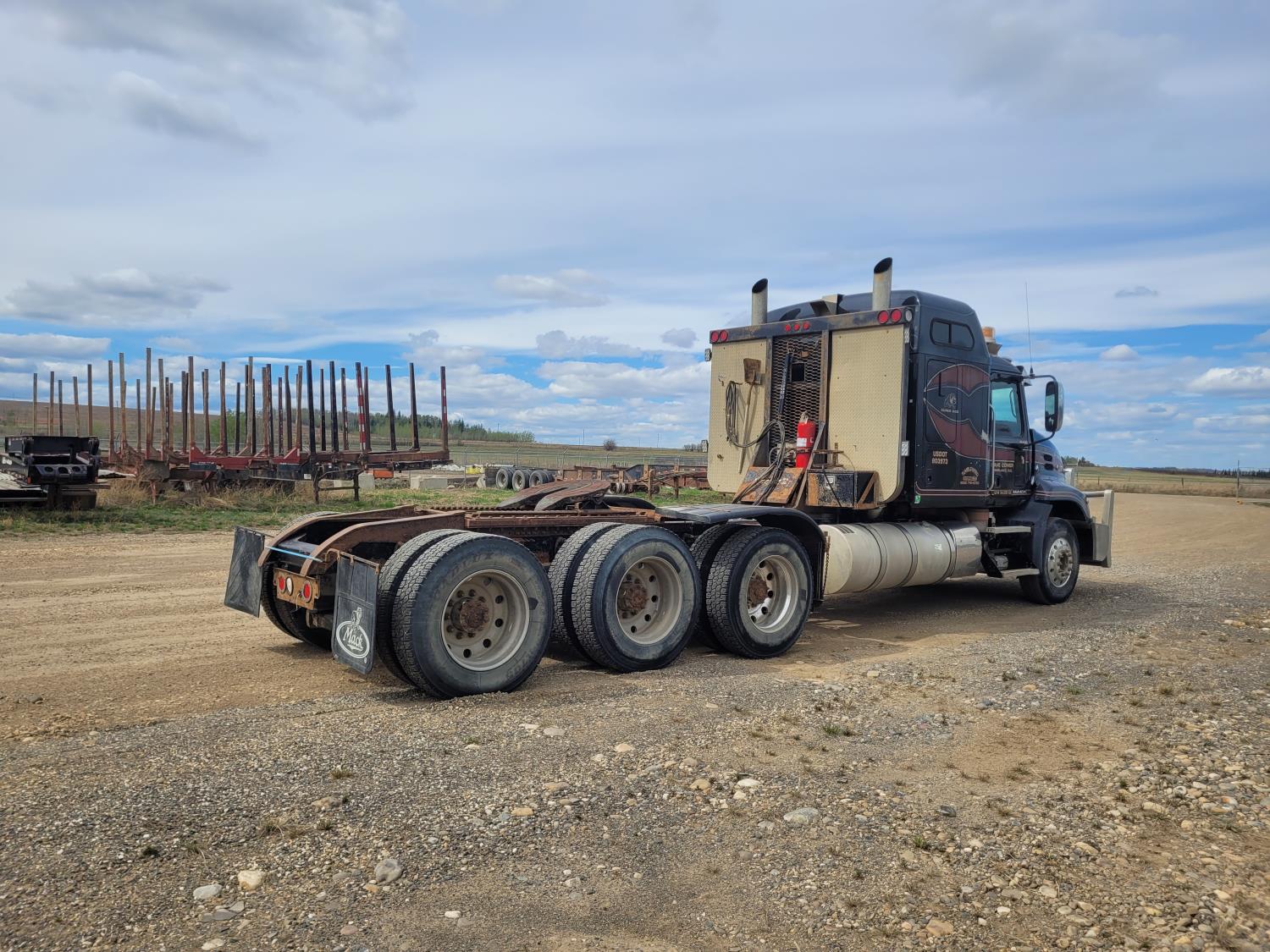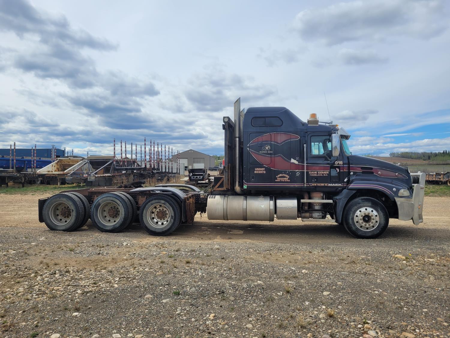 Mack MP8 485 505 HP diesel engine, emissions deleted, 18 speed transmission, sleeper, fridge, A/C, cruise control, leather interior, air ride seats, stereo, moose bumper, headache rack, Arctic HR, FGI rigging, PTO, air ride suspension, diff lock, Sliding 5th, all aluminum wheels, 11R24.5 rear tires