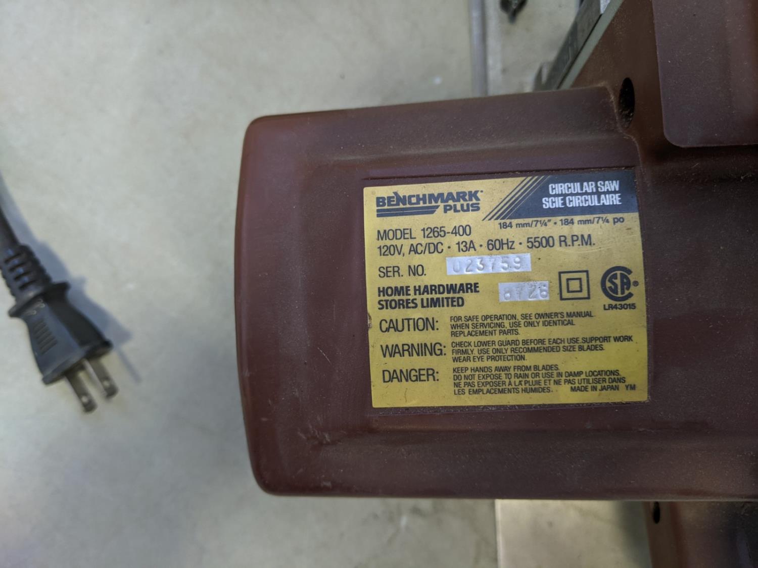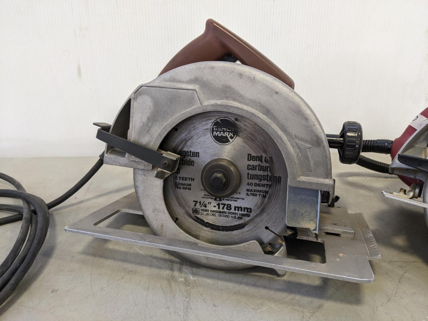Benchmark circular saw s/n: 023759, Master Mechanic circular saw