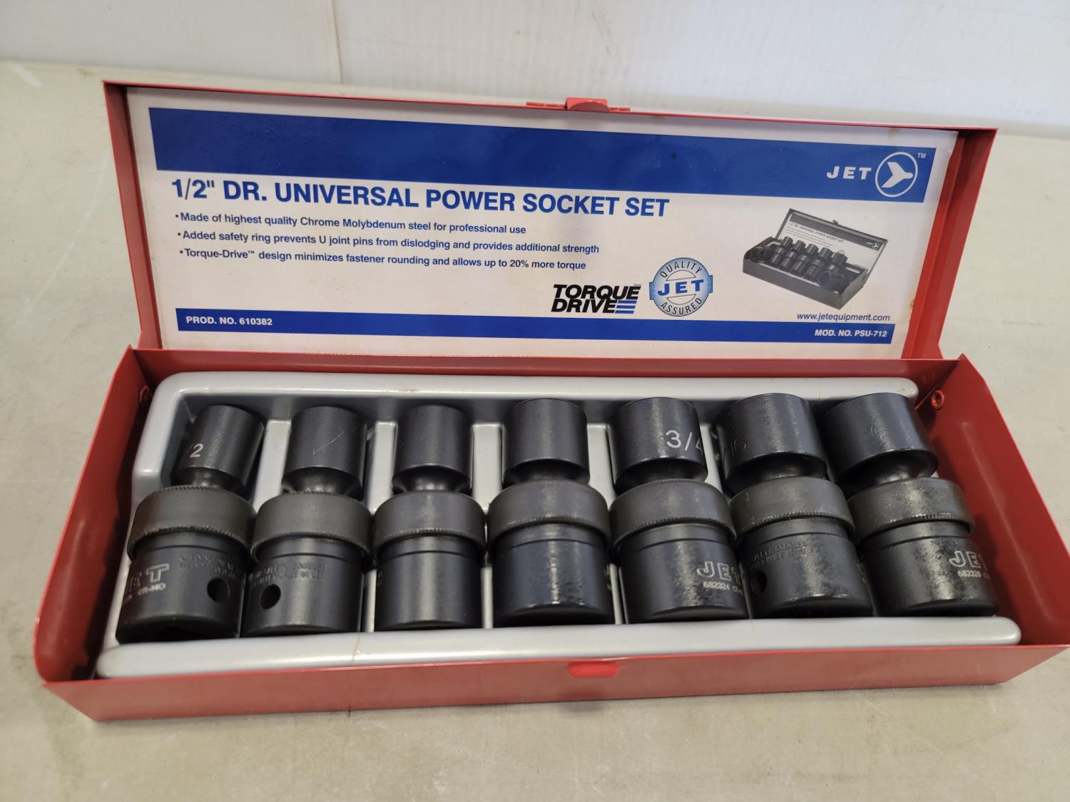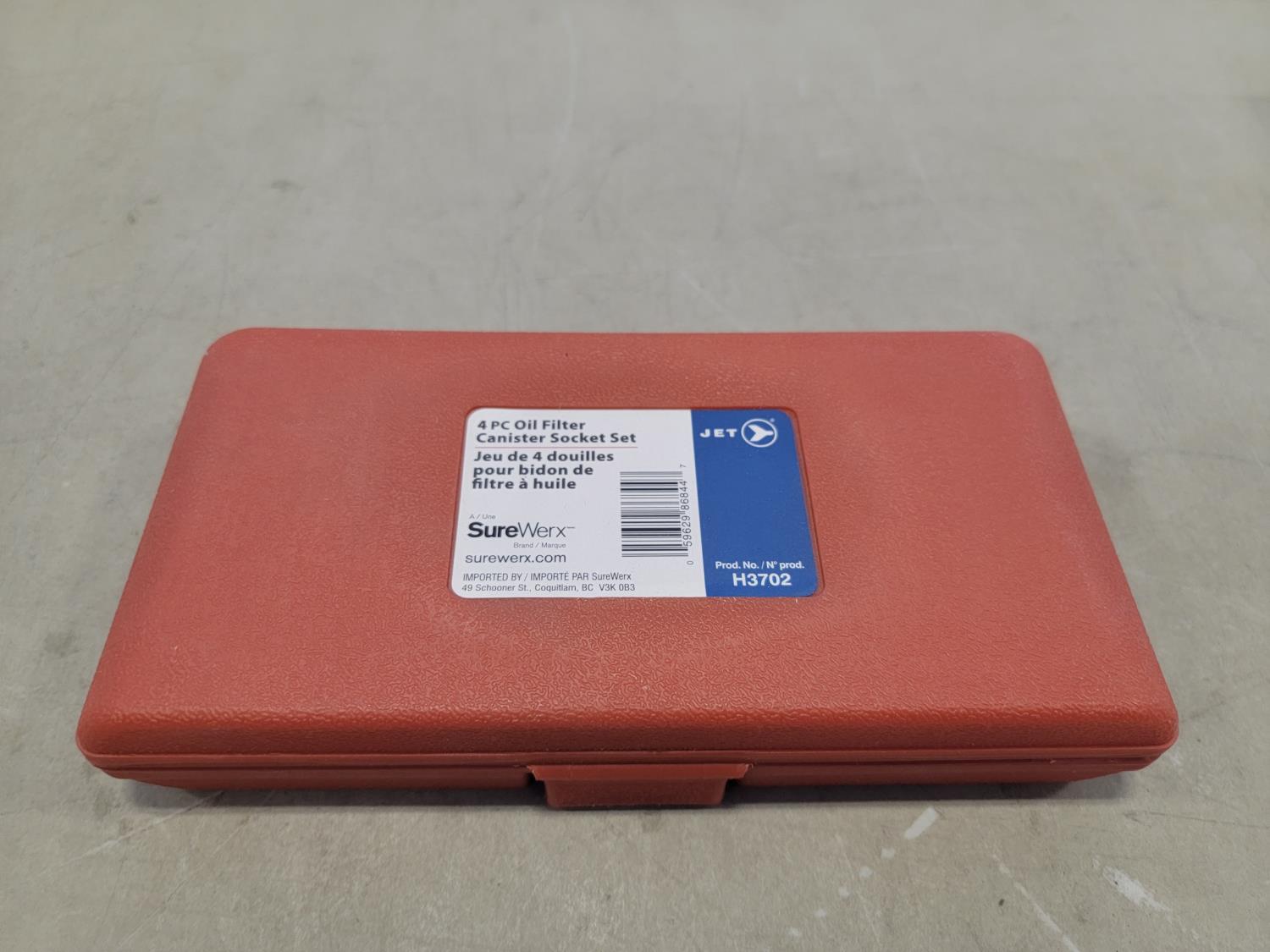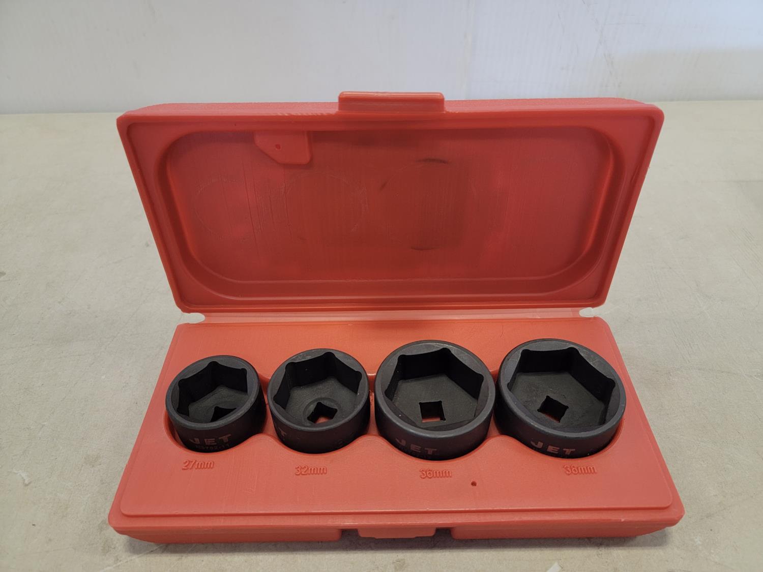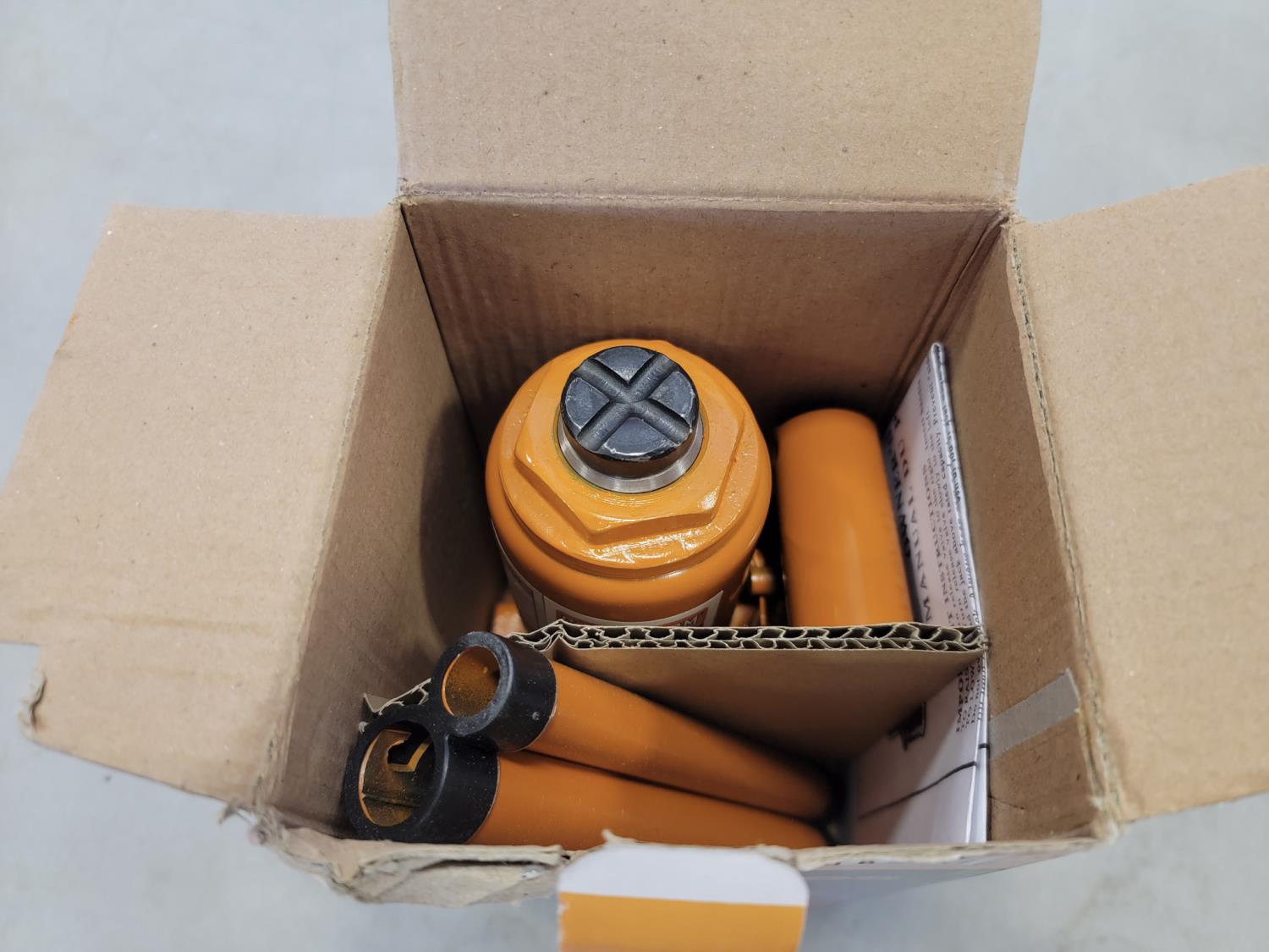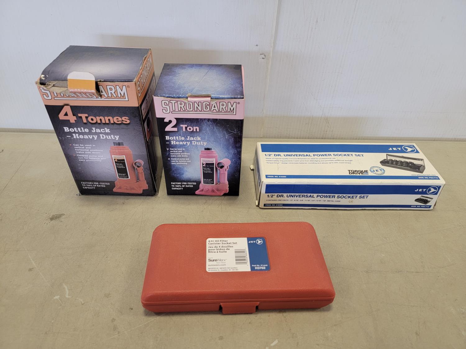 5417 (2) Strongarm Bottle Jacks, 4 Piece Oil Filter Canister Socket Set and 1/2 Inch Drive Power Socket Set (Unused)