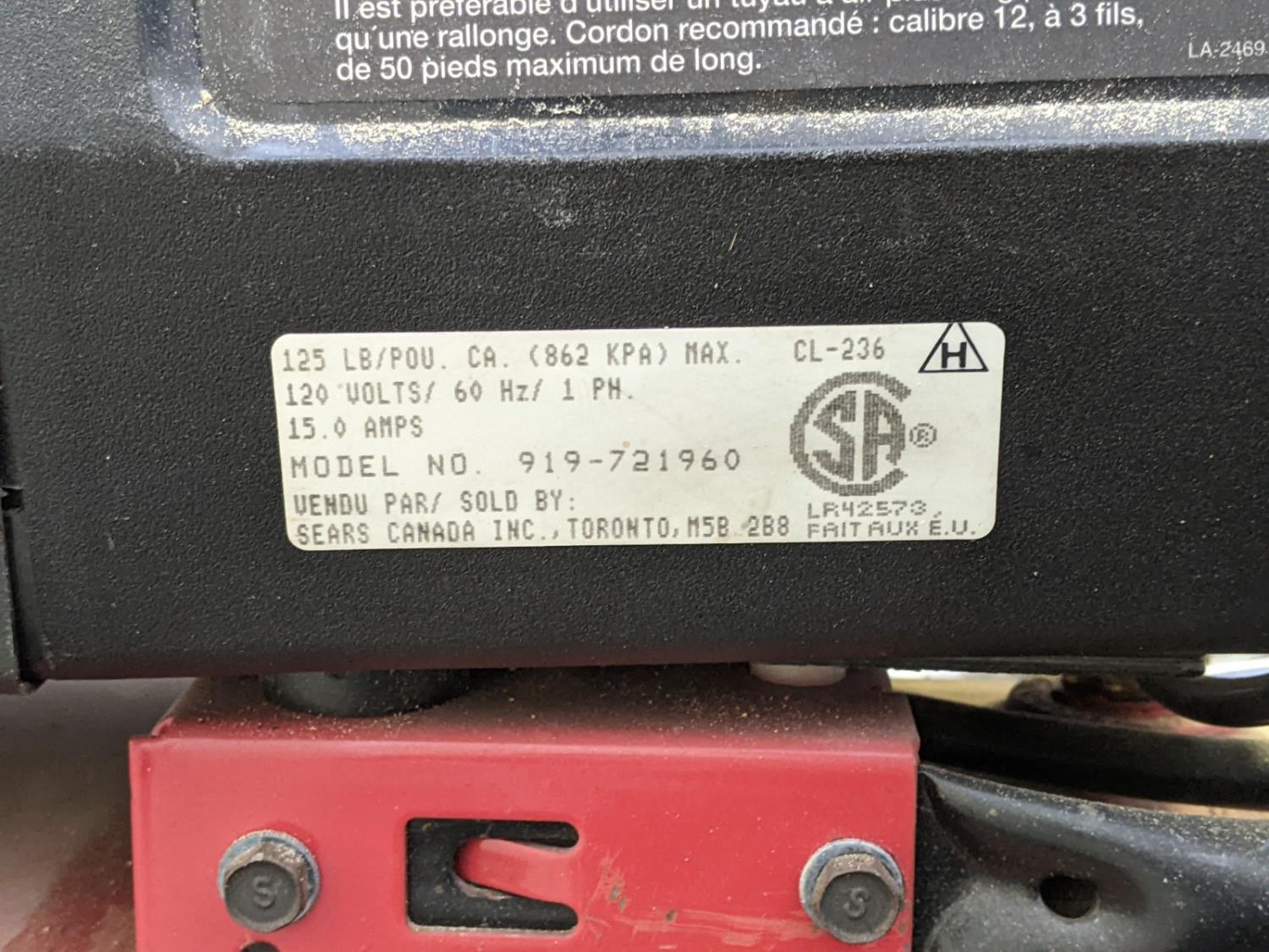 5233 Craftsman 919-751960 25 Gallon Air Compressor