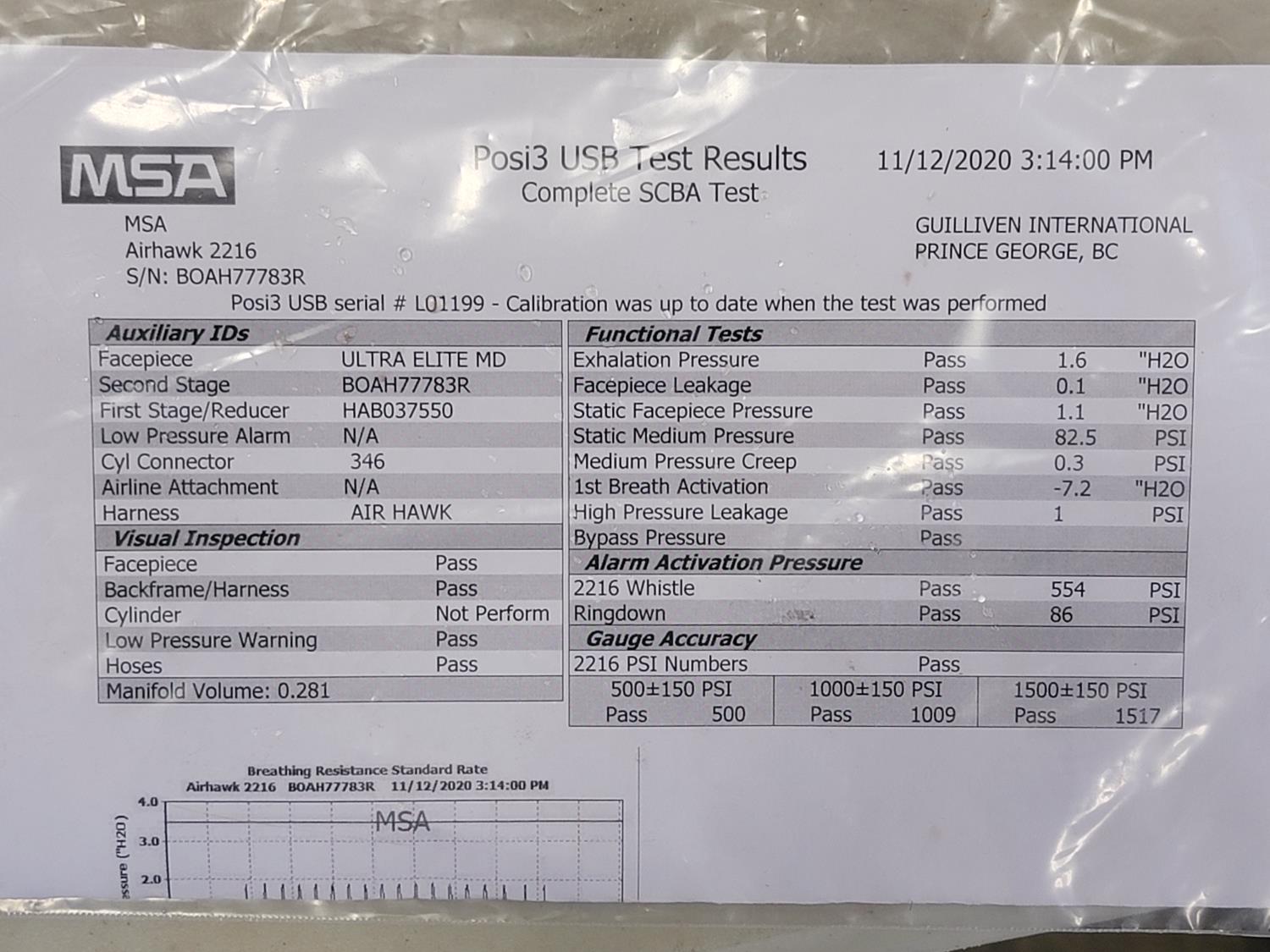 5020 MSA Airhawk 2216 Oxygen Mask and Bottle