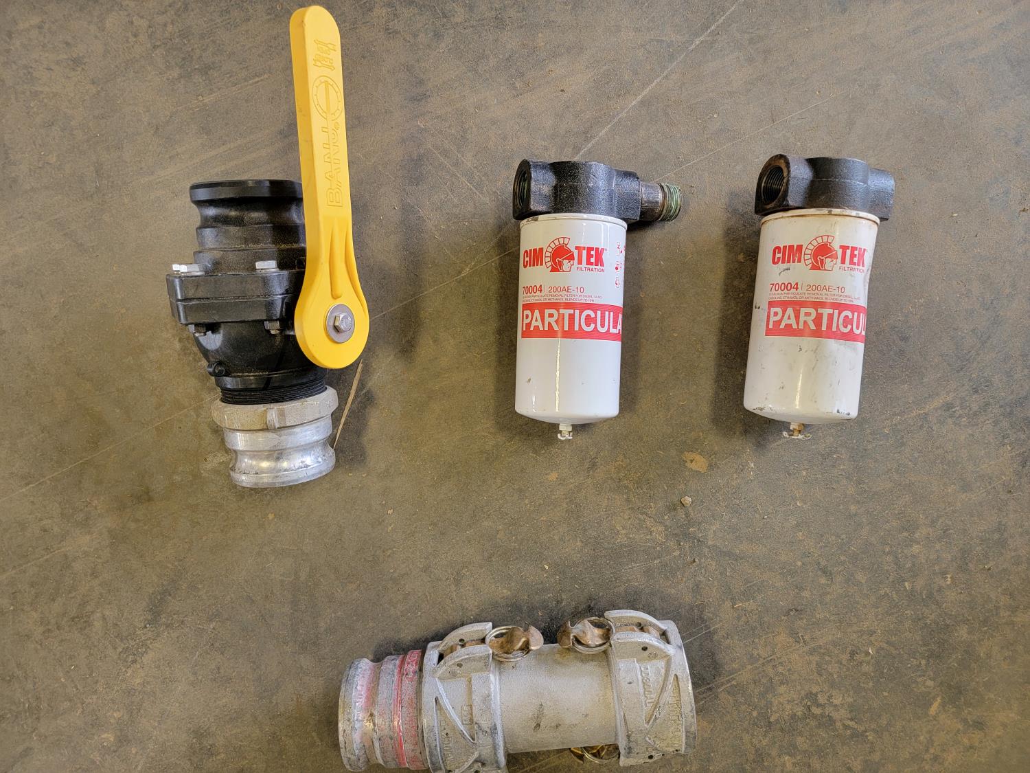 Vacuum hose, oil filter, couplers, Easy-fill valve, Coleman coffee maker, tools, washers, screws