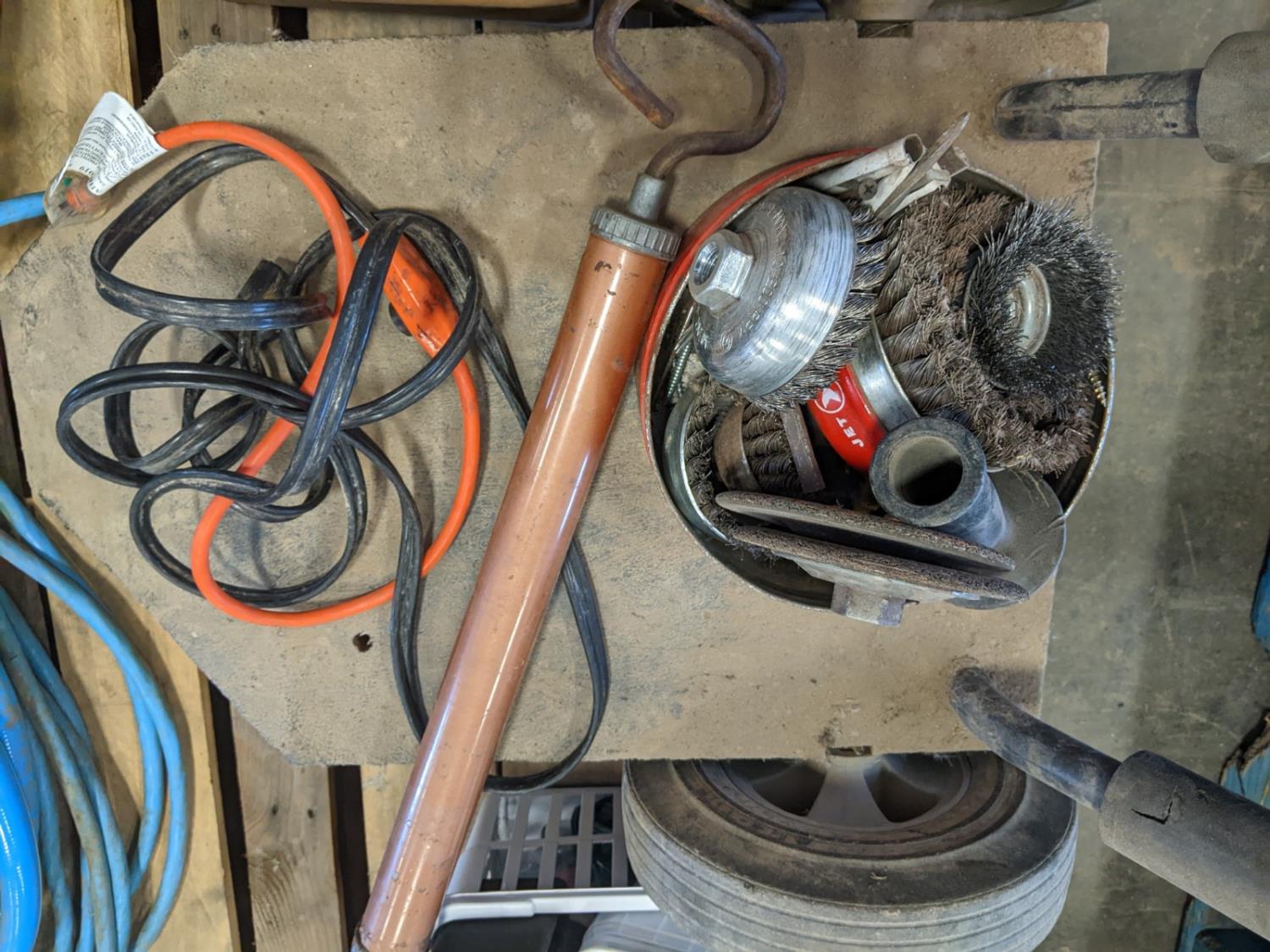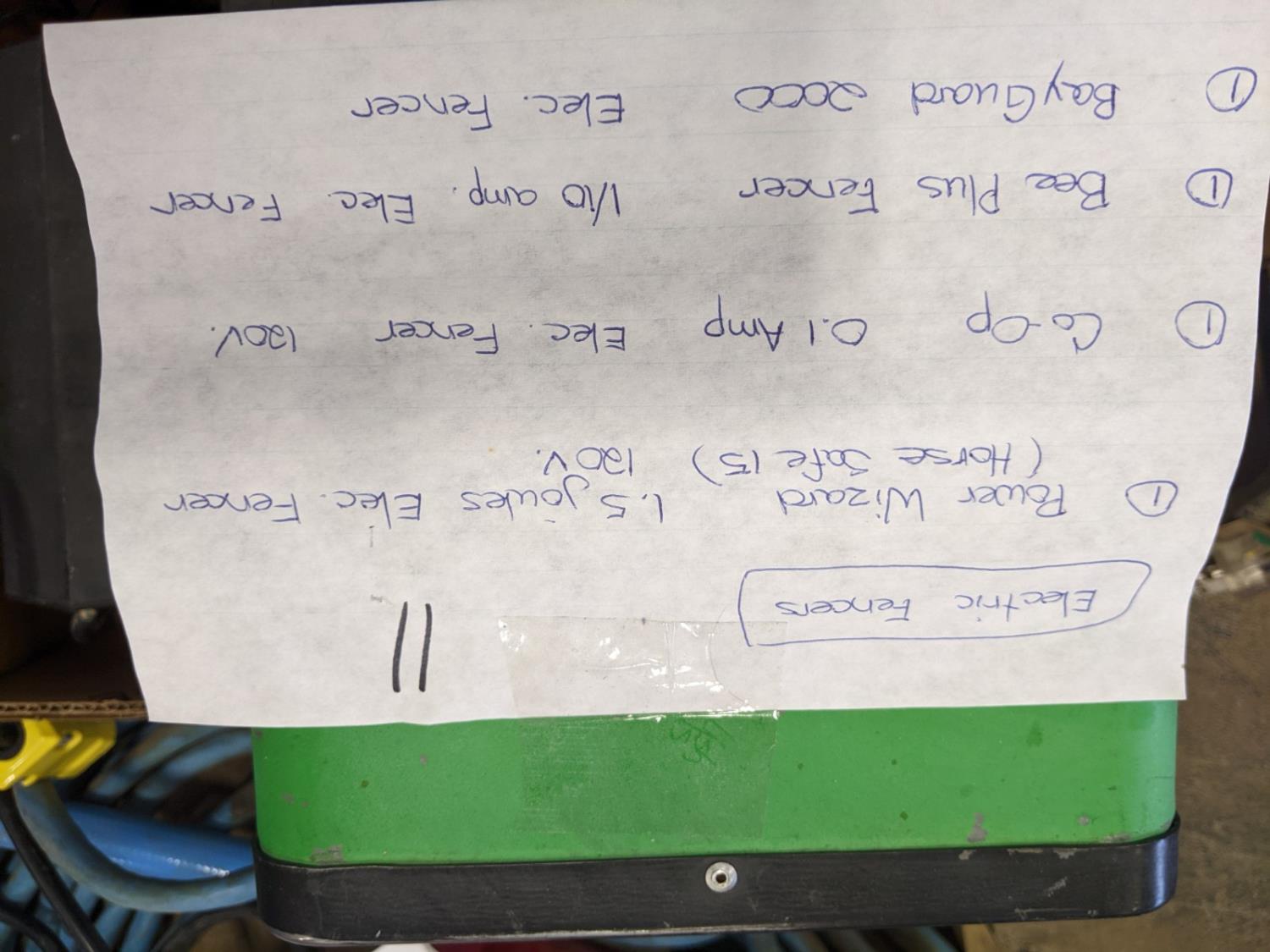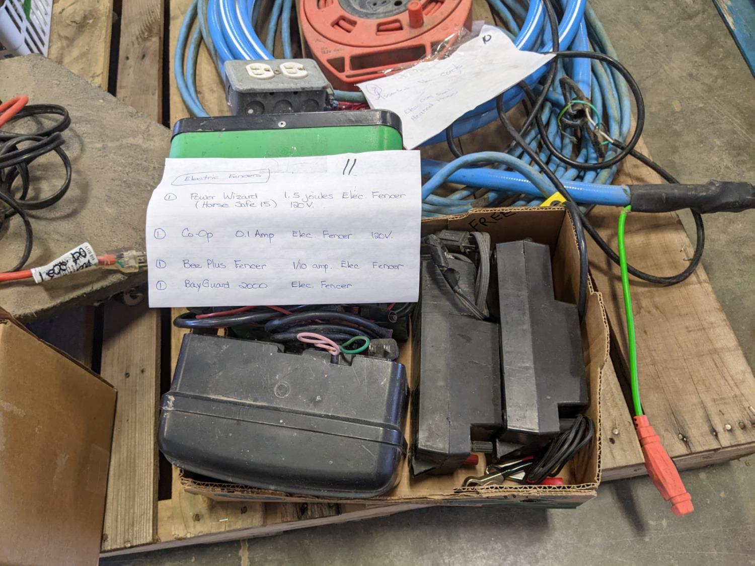 Fence Electrifiers, Grinding Discs, Nails, and Pressure Washer Cart.