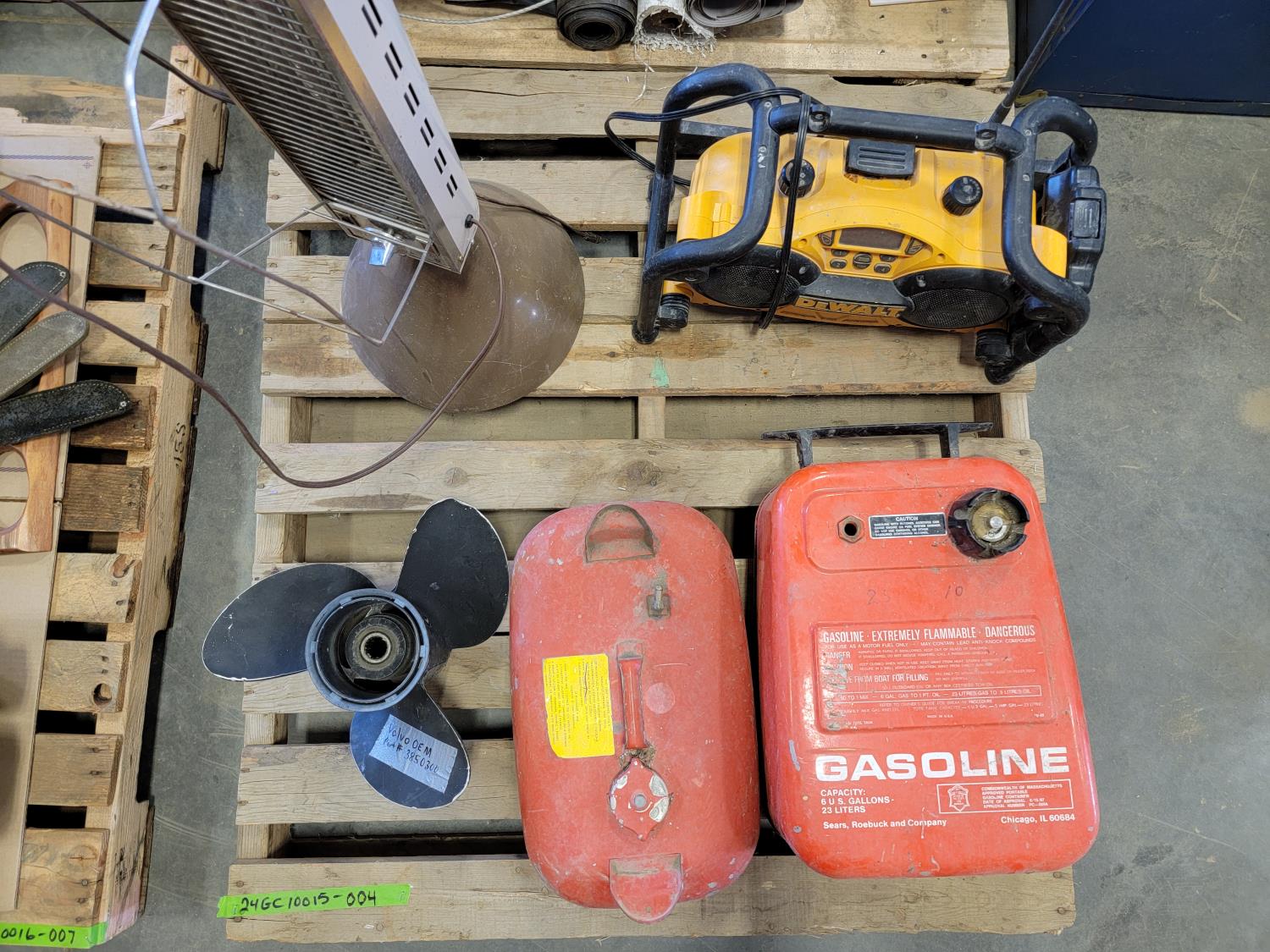 Volvo OEM propeller, fuel tanks, DeWalt radio, Boekamp space heater