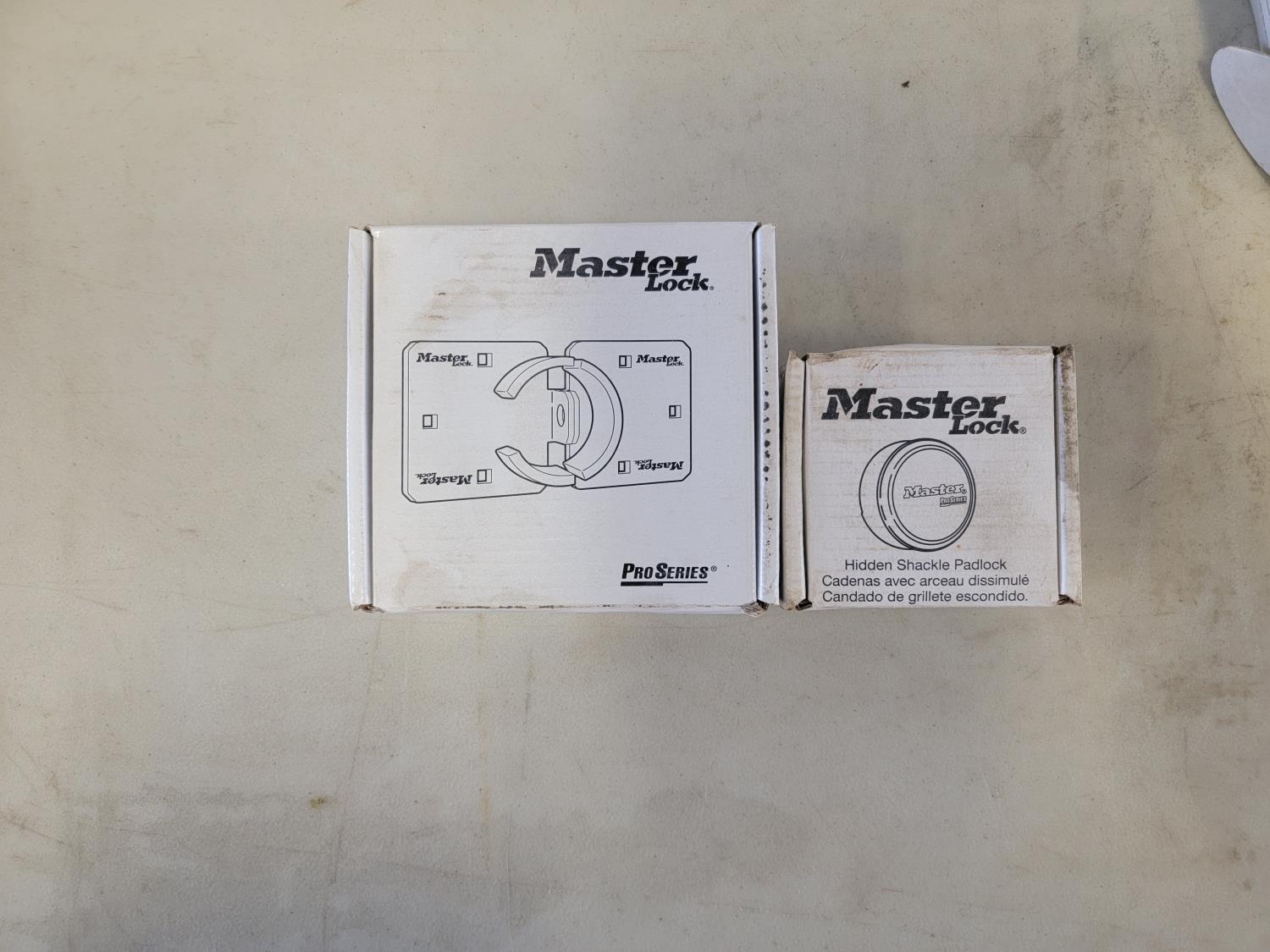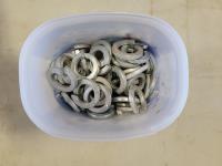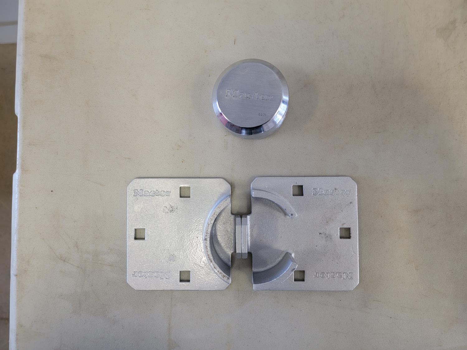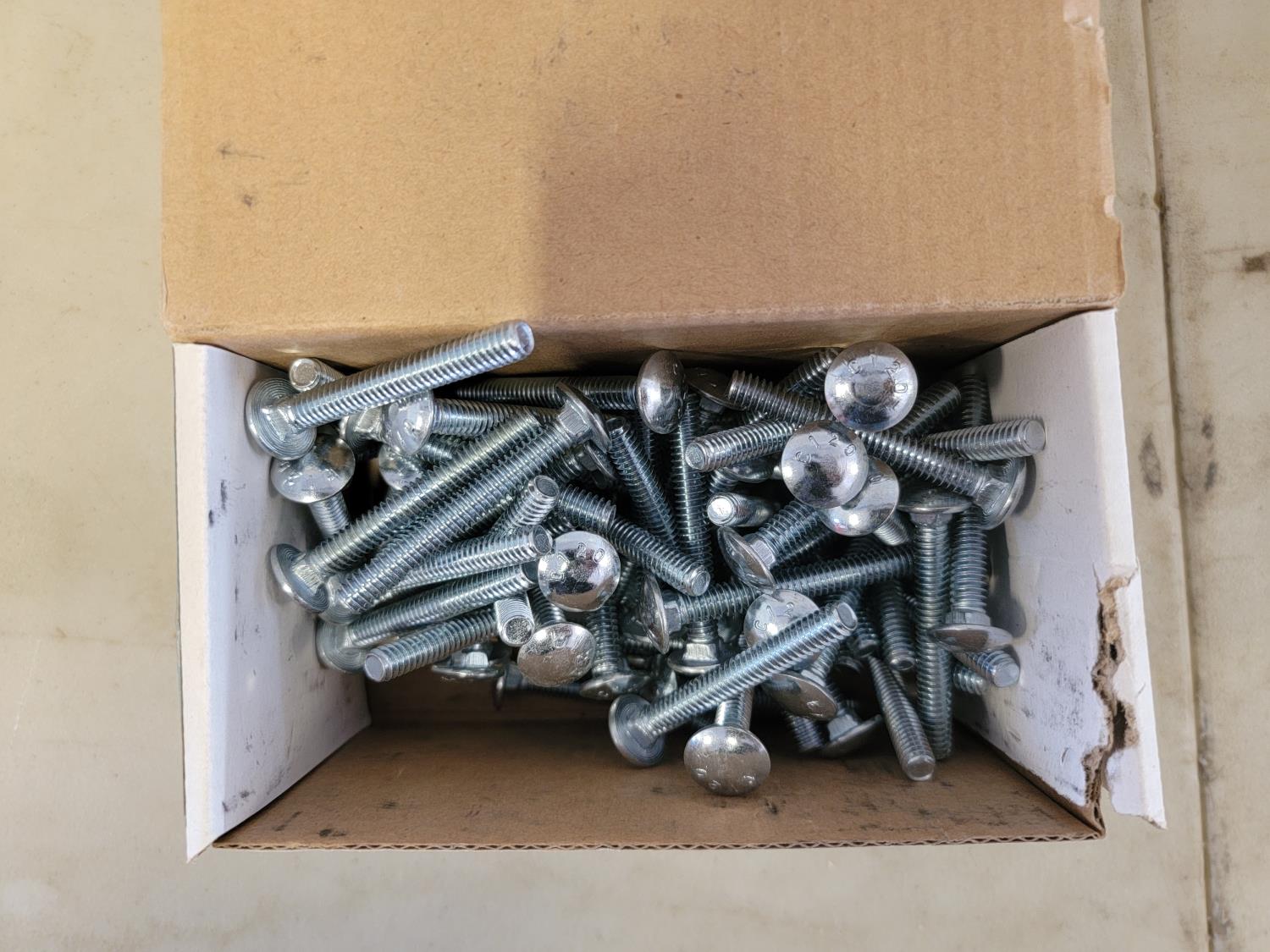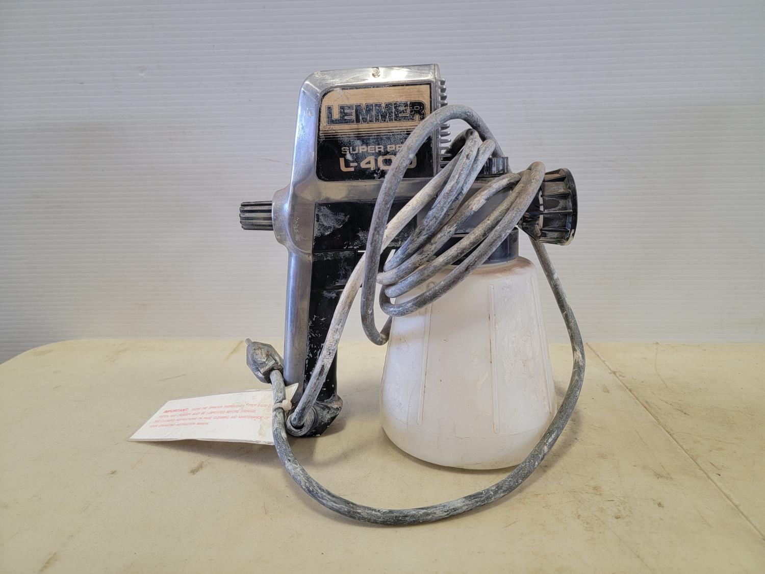 Rivets, cotter pins, locks, split lock washers, Lemmer L-400 paint sprayer, roll of wire, sealant tape, carriage bolts, cap screws, 8 piece wheel caps for trailer, Shurflo water pump, Johnson water pump