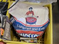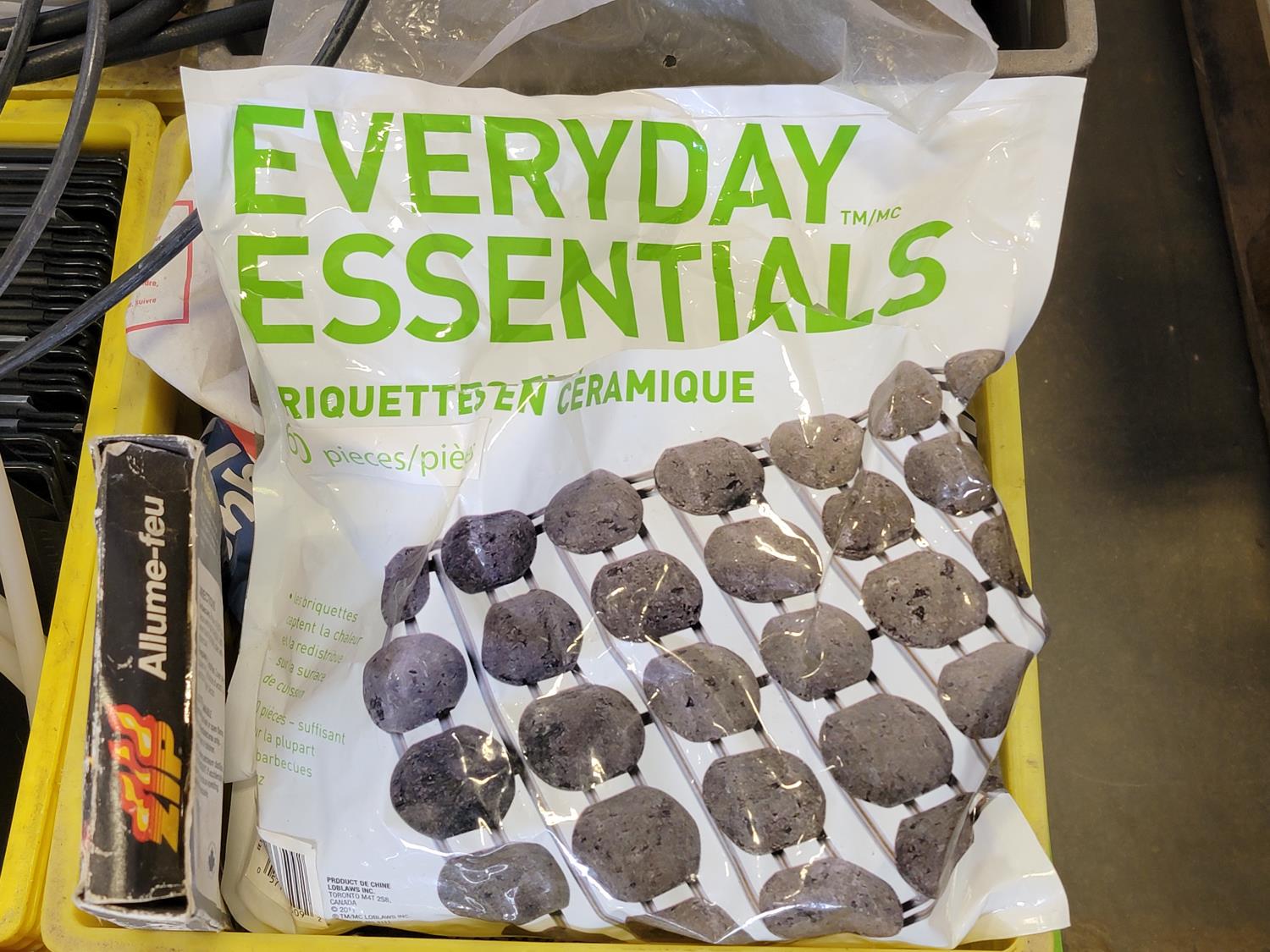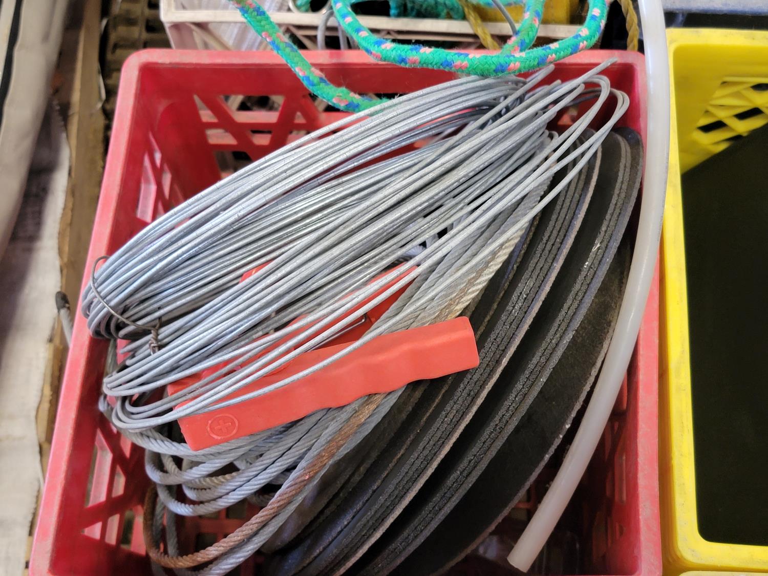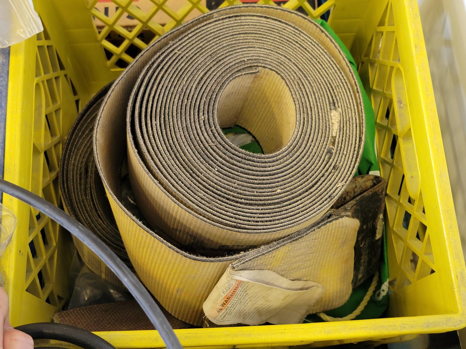 Chains, briquettes, nails, 4 inch straps, shelving panels, wire, metal cable, 14 inch grinding wheels, rope, bungee cords, cine-elevating tripod