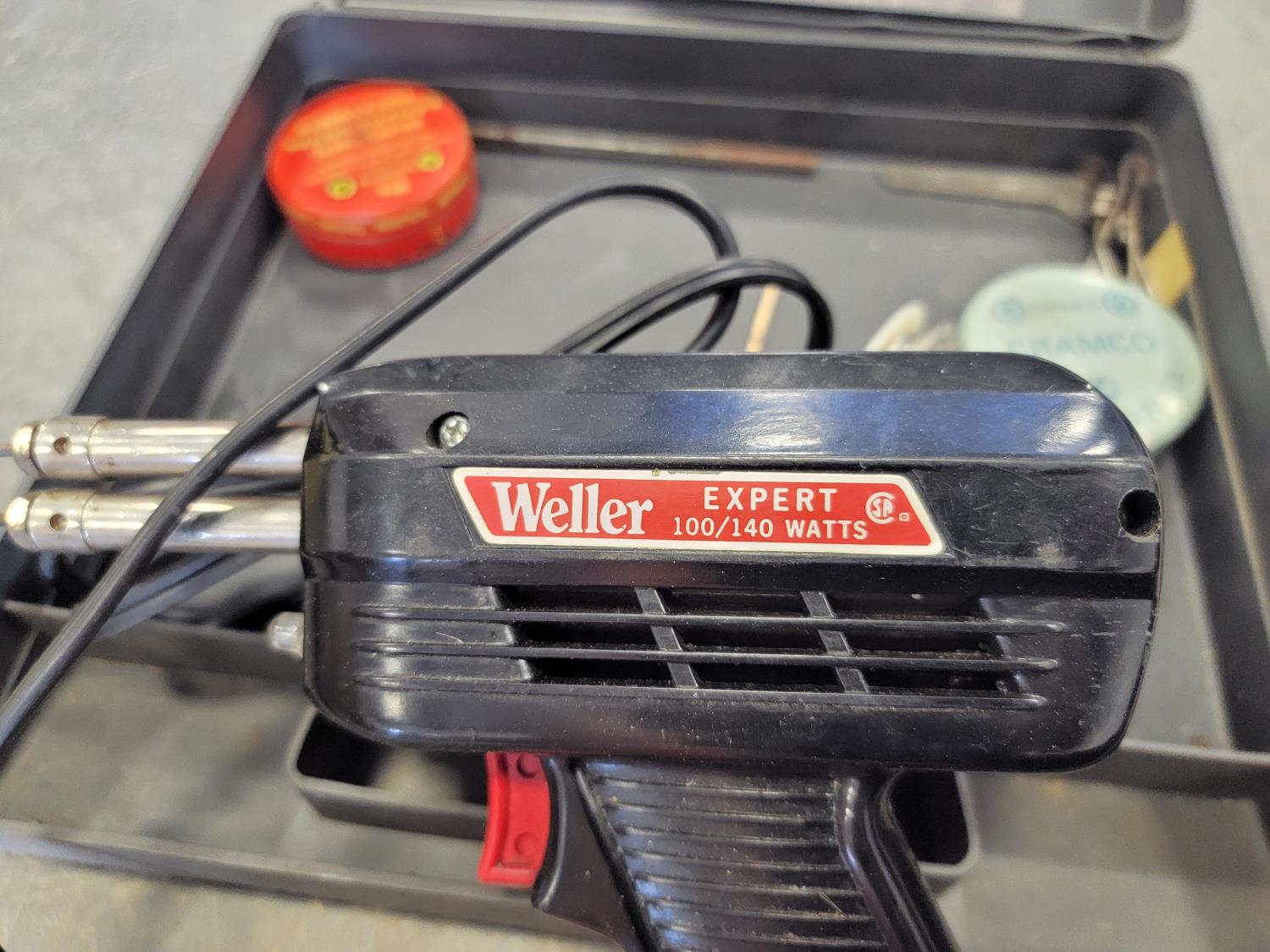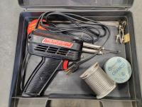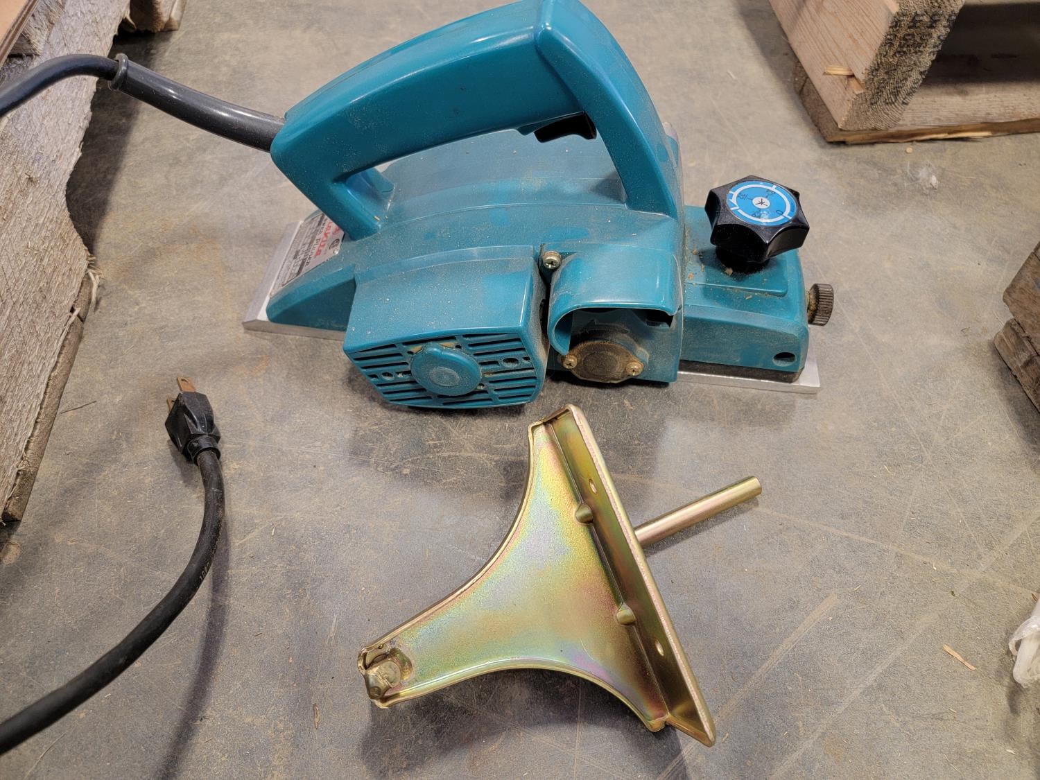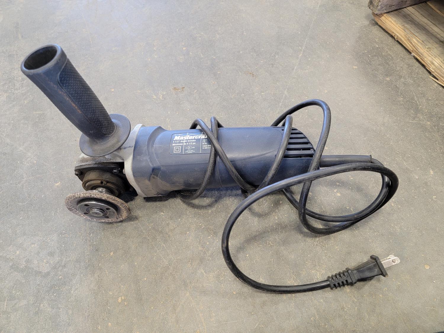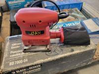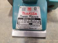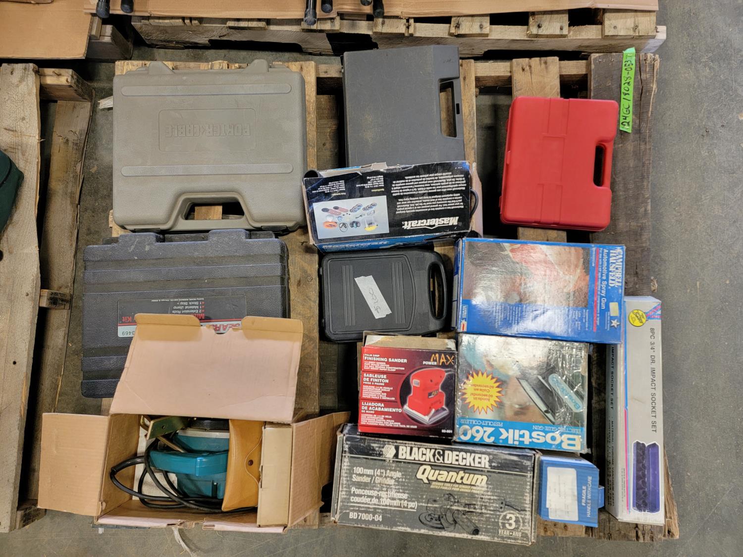 Makita power planer, Black & Decker grinder, Power Max finishing sander, small motor, electric glue gun, 3/4 inch drive impact socket set, automotive spray gun, torque sockets, grease gun adapter kit, Mastercraft 4-1/2 inch angle grinder, soldering gun, nail gun, miter saw accessory kit