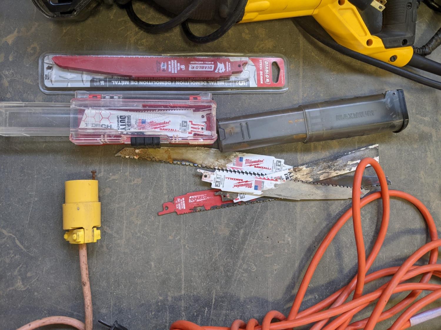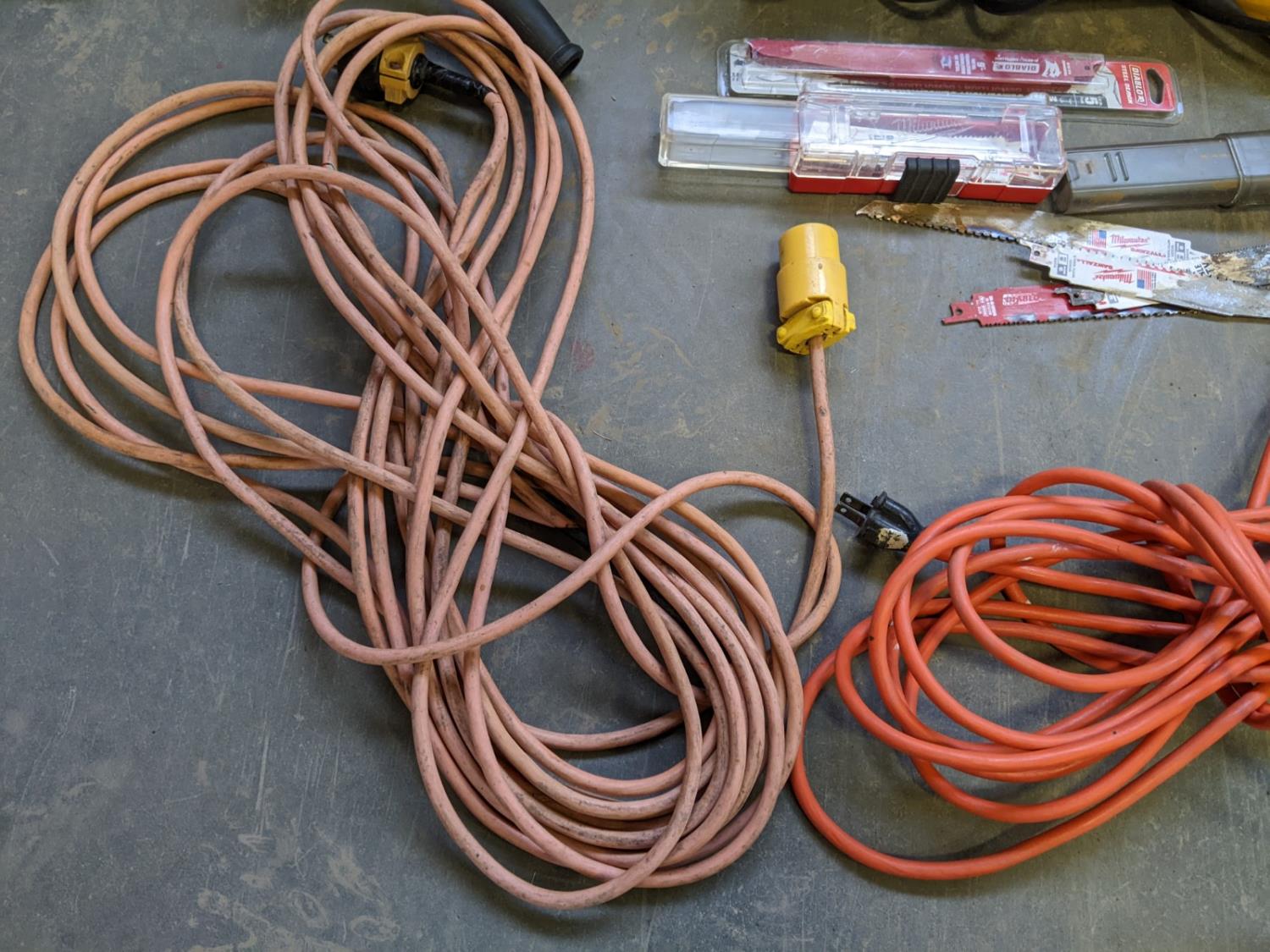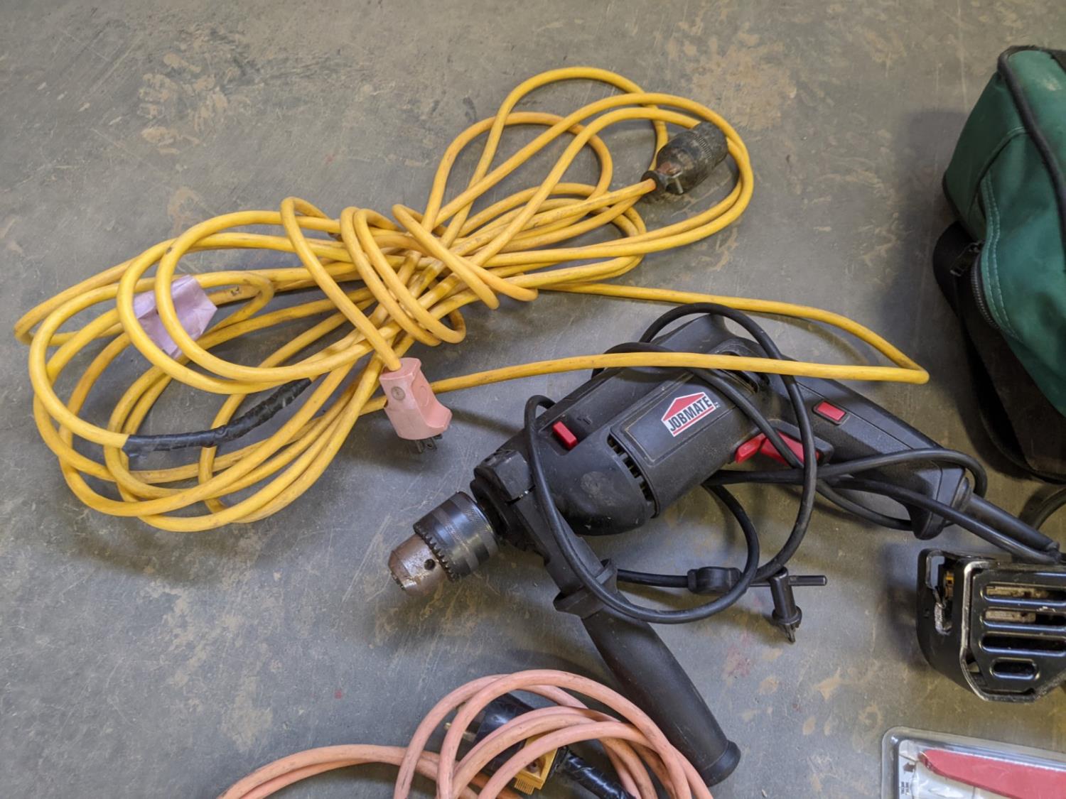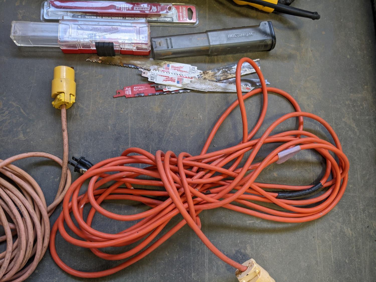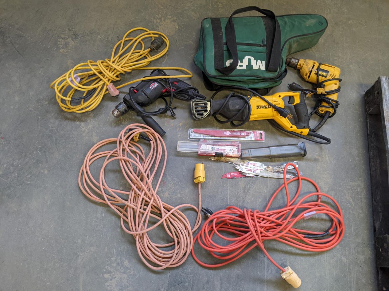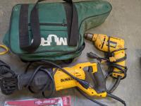 Dewalt Reciprocating saw with blades, Jobmate Drill, Dewalt Drill and (3) Extra Cords