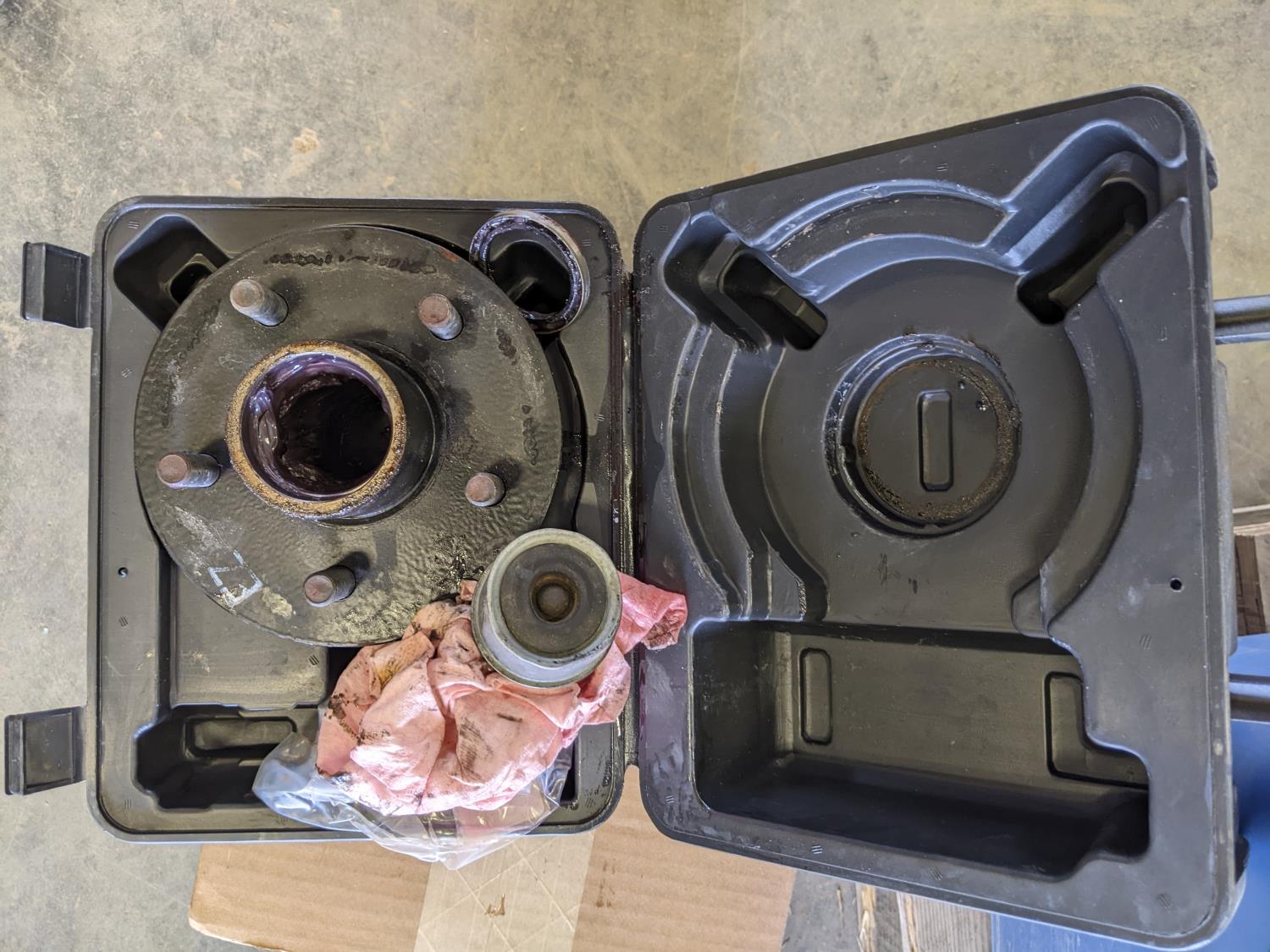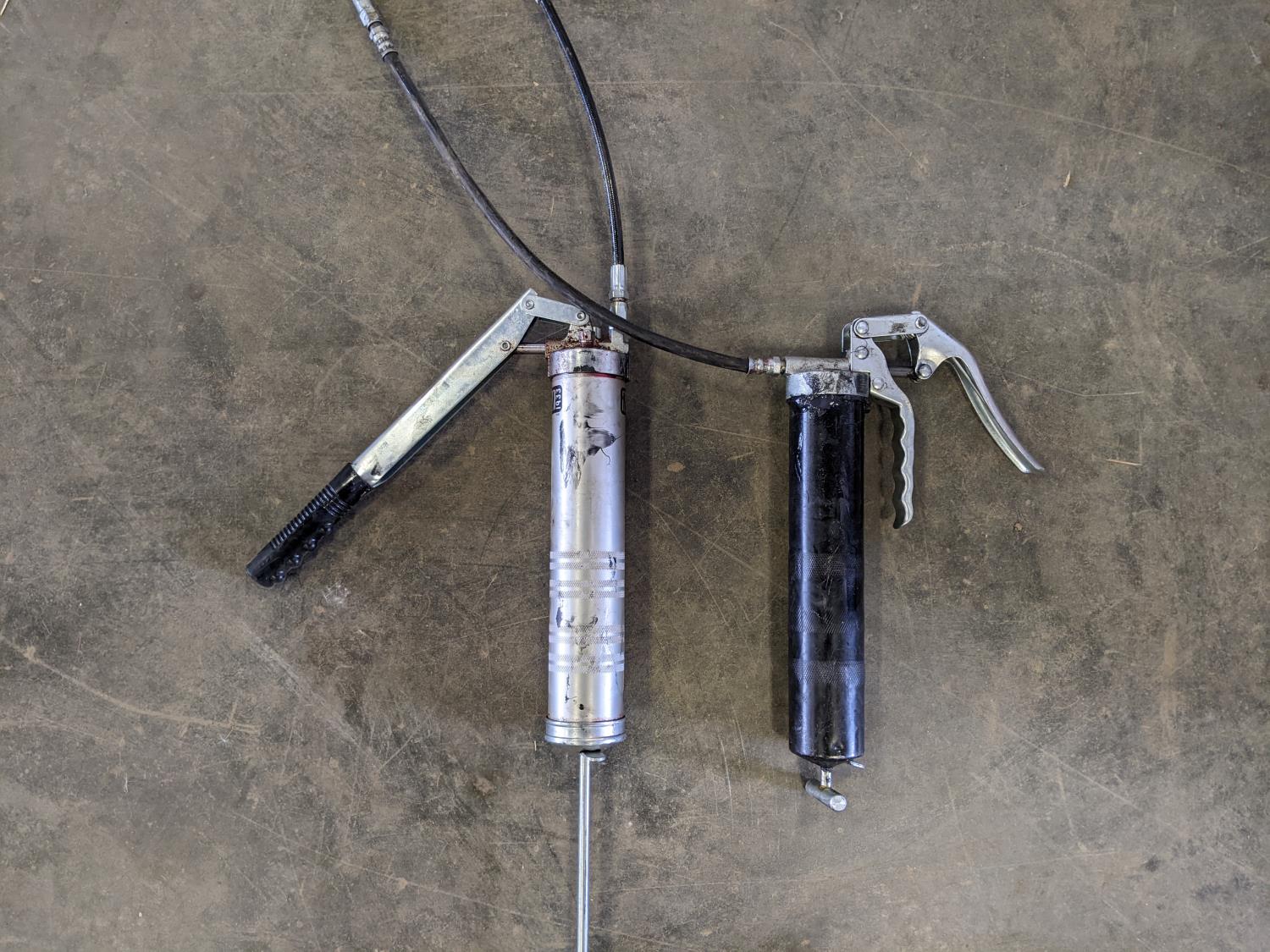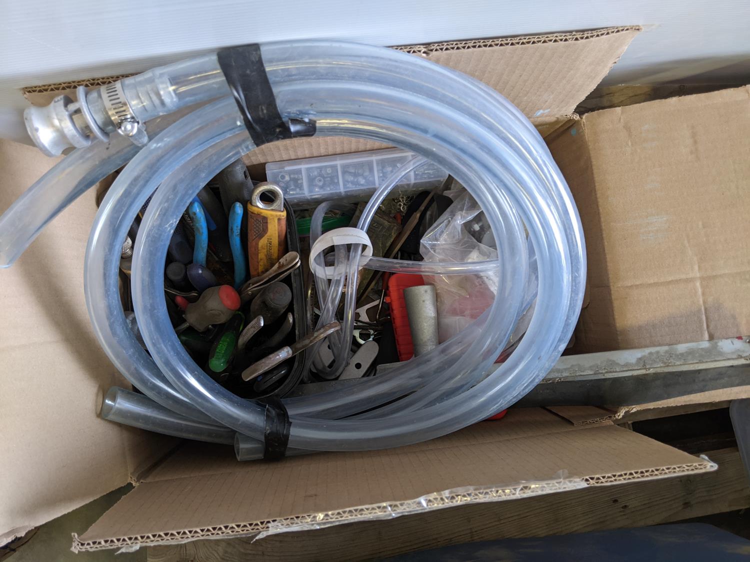 Sockets wrench set, dust hose, oil filter, wrench, battery powered fuel pump, socket wrench set, exhaust clamp, hole bits, hub kit guide, grease gun, hole saw kit, battery charger