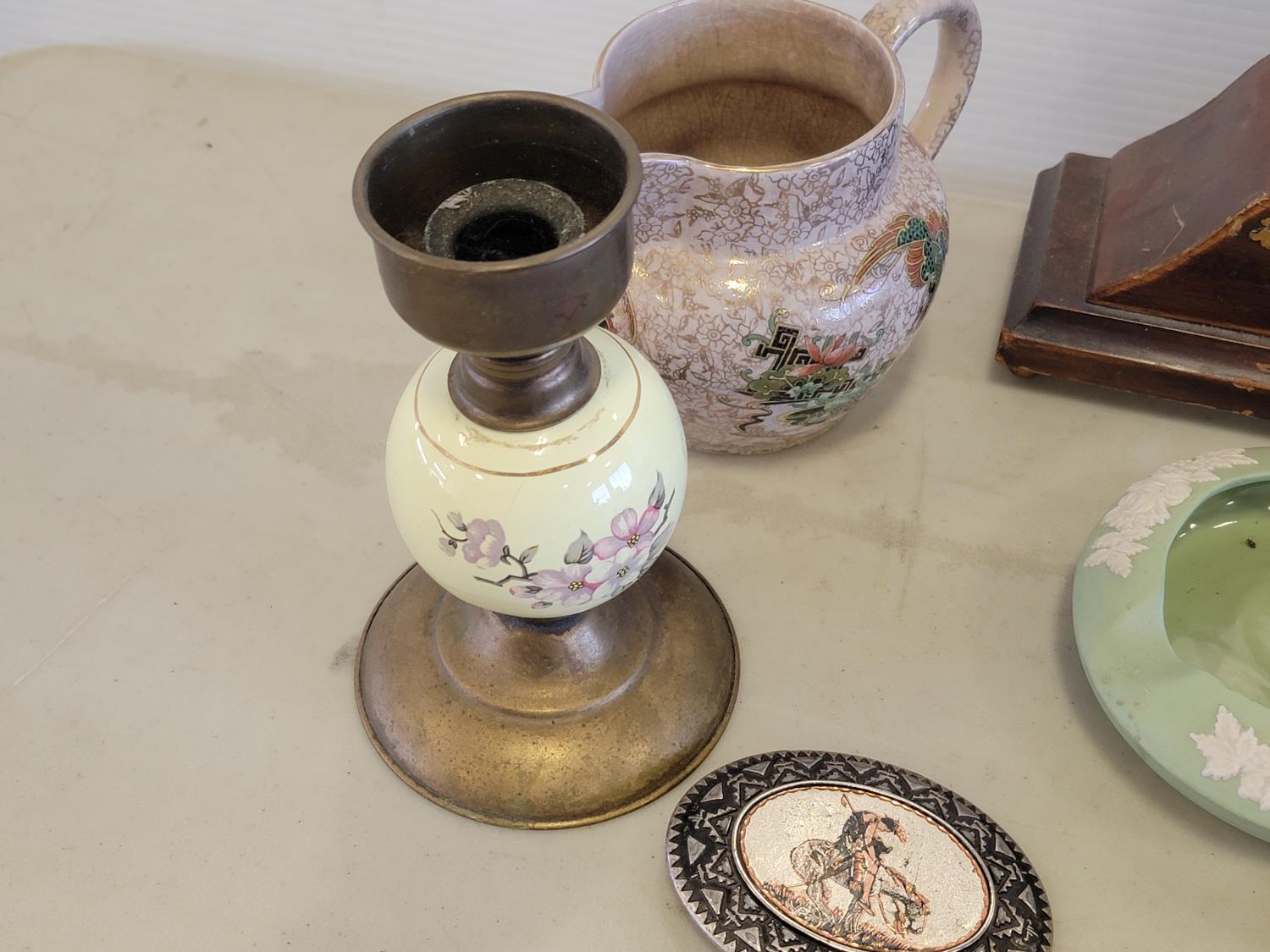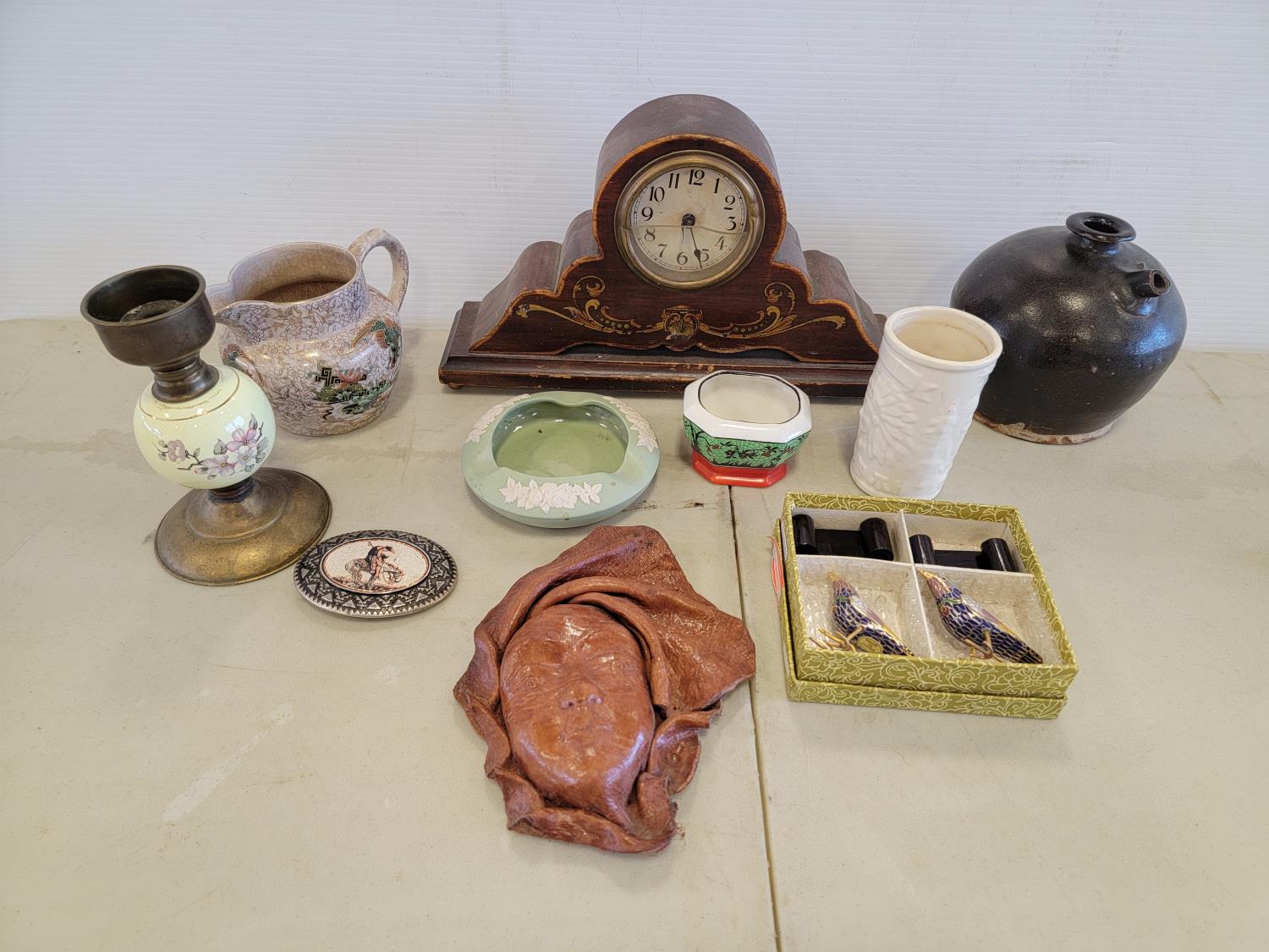 candle holder, water basin, clock, leather art, belt buckle