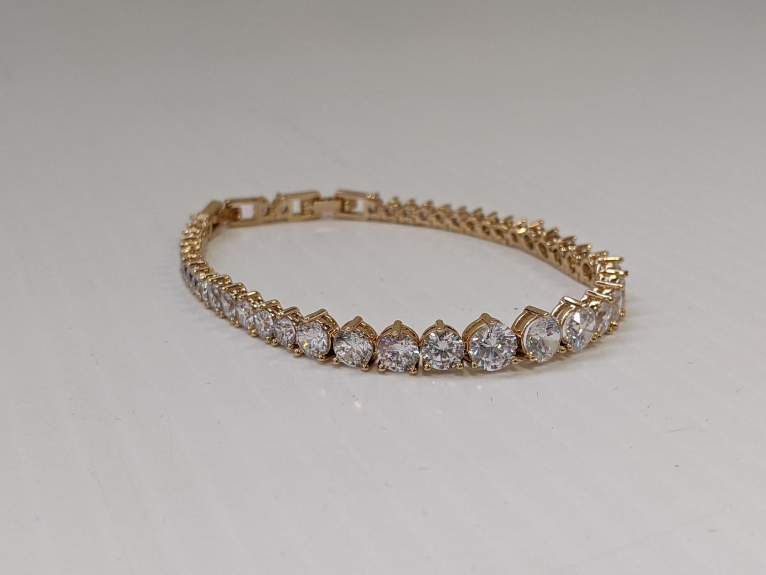 5435 Smartlife 18K Gold Plated 6.0 mm Graduated Round Cut Tennis Bracelet (Unused)