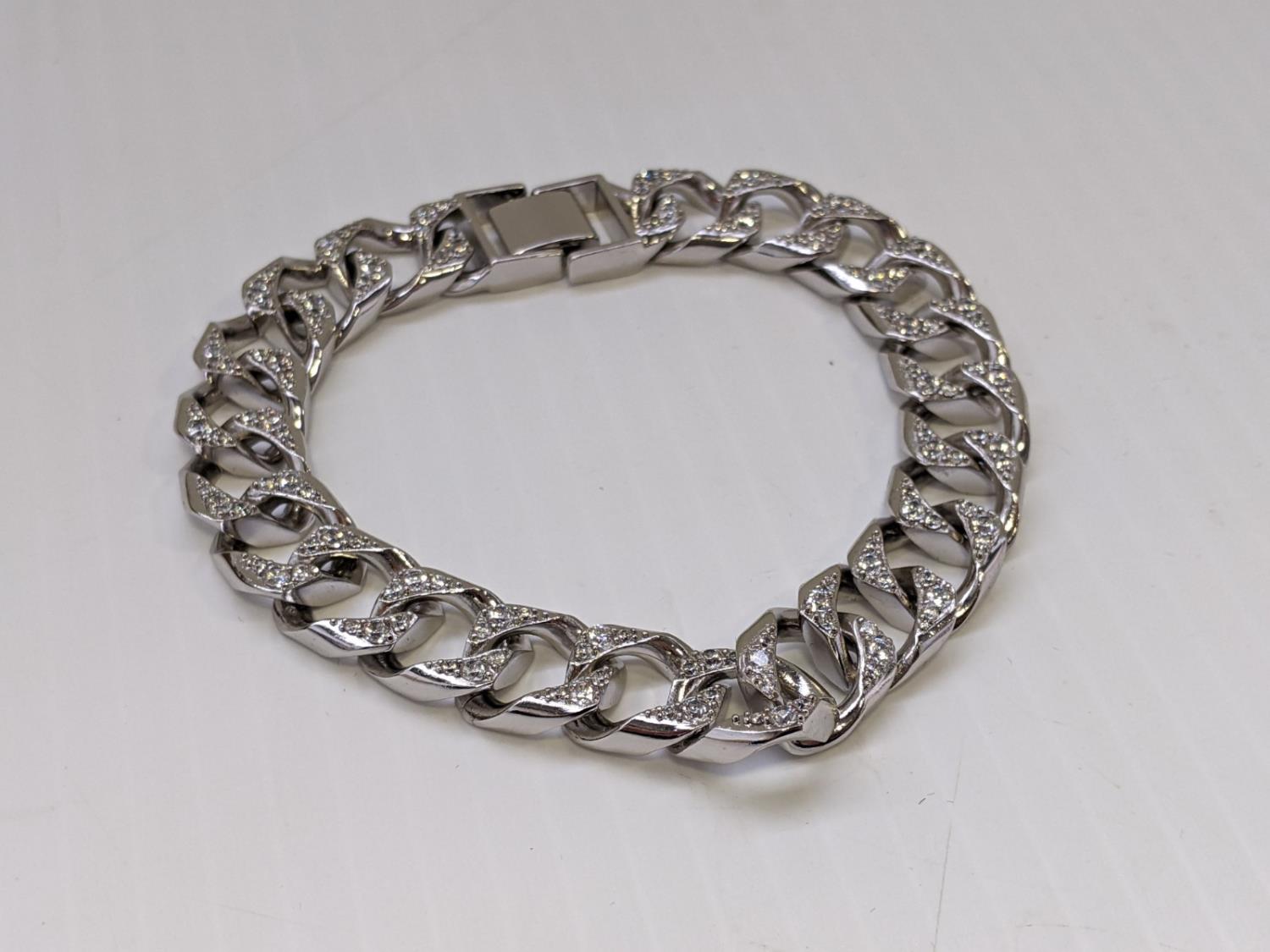5437 Smartlife Platinum Plated 13.0 mm Iced Out Cuban Link Bracelet (Unused)