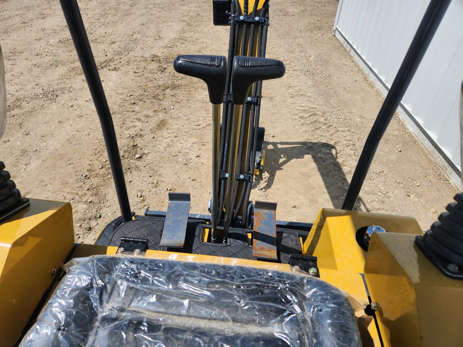 Open station, gas engine, 16 inch dig bucket, manual coupler, manual thumb, 31 inch stick, backfill blade, 7 inch rubber tracks
