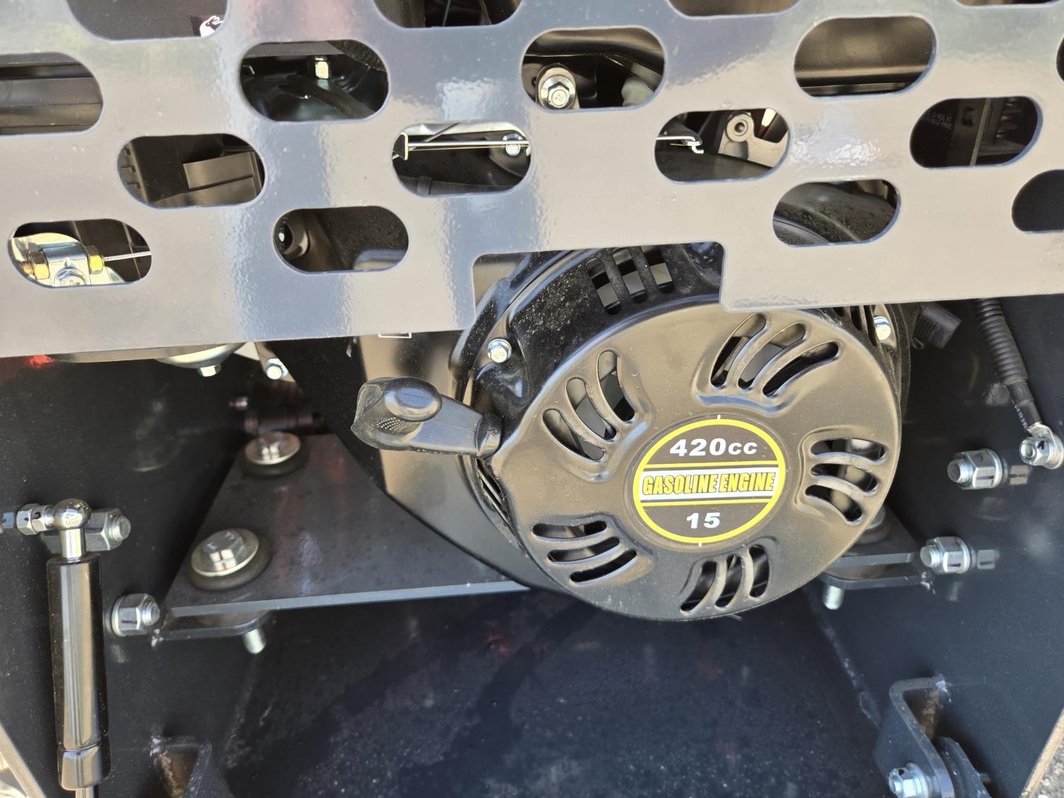 Open station, 420cc gas engine, 38 inch smooth bucket, manual coupler, 1 auxiliary hydraulics, 6 inch rubber tracks
