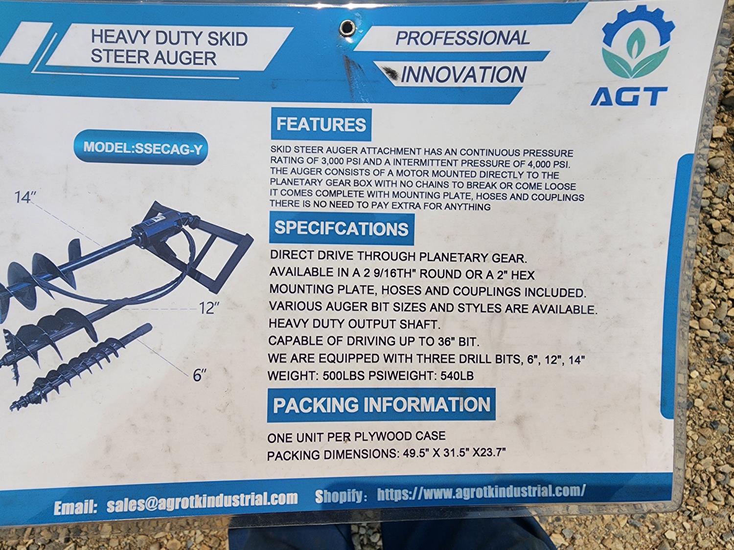 3150 2024 Mower King SSECAG-Y Skid Steer Auger (Unused)