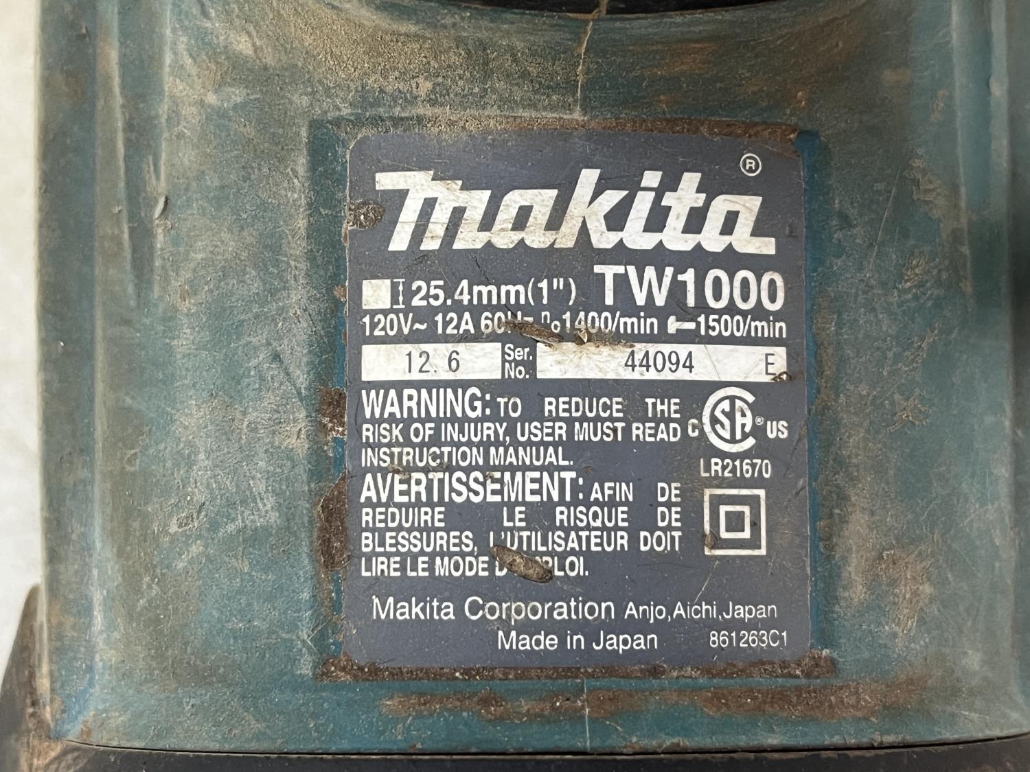 2138 Makita TW1000 1 Inch Drive Impact Drill