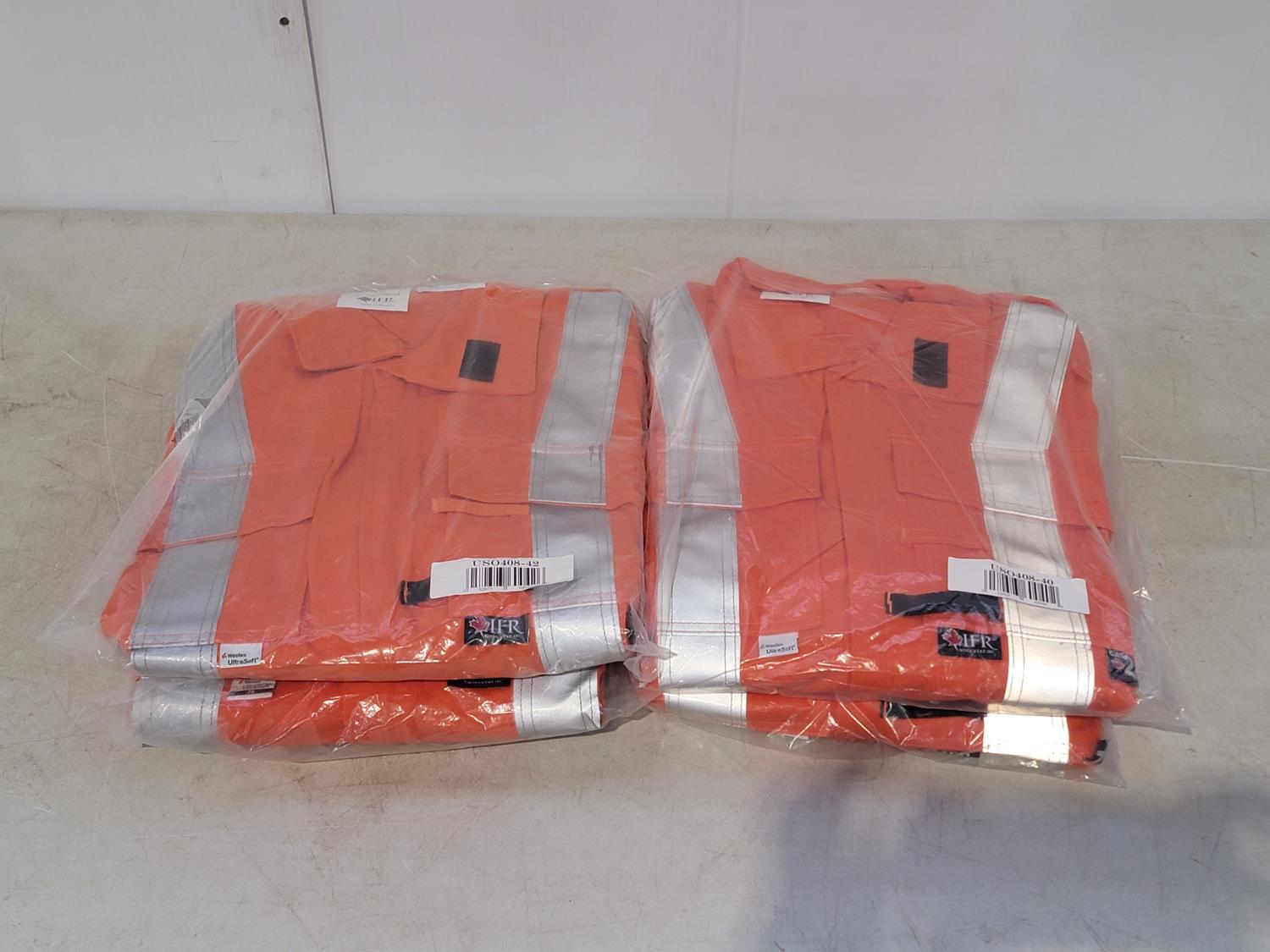 2093 (2) 42R (2) 40R FR Bright Orange Stripped Coveralls (Unused)