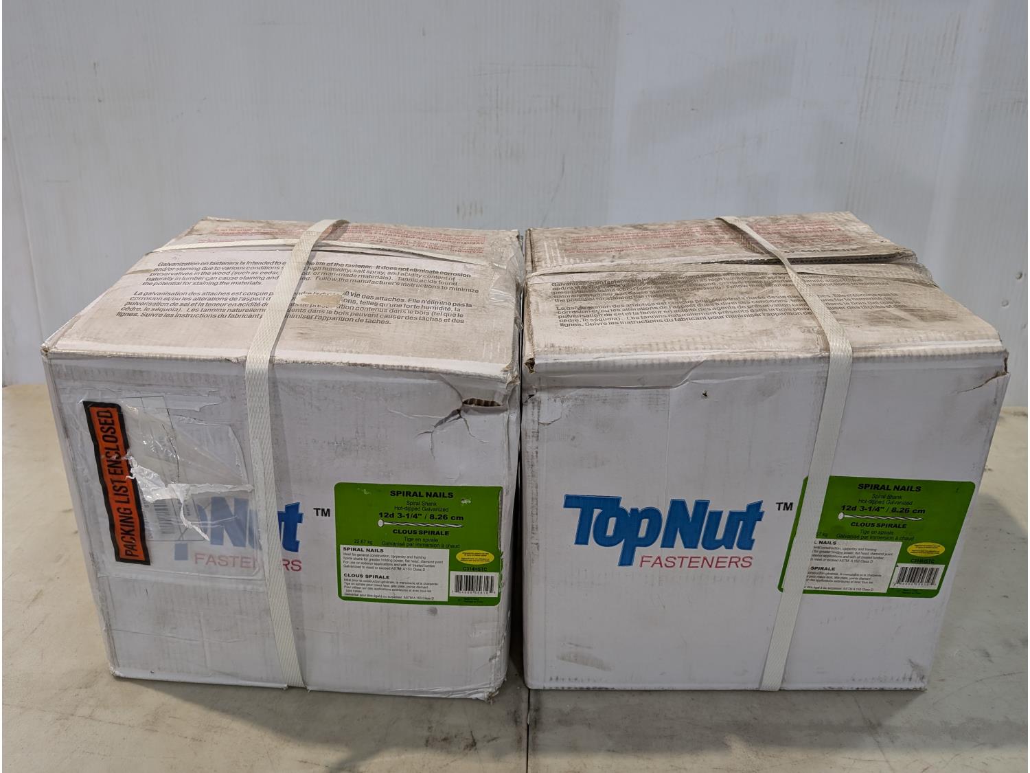 1879 (2) Cases of Topnut 3-1/4 Inch 12D Spiral Nails (Unused)