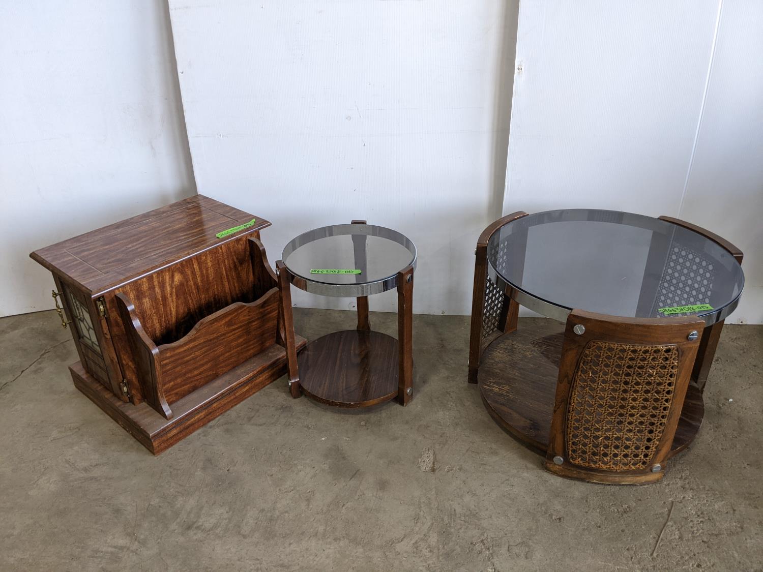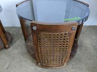 Round tables: 28 inch w x 20 inch h, 16 inch w x 19 inch h, Stool: 24 inch w x 15 inch d x 20 inch h