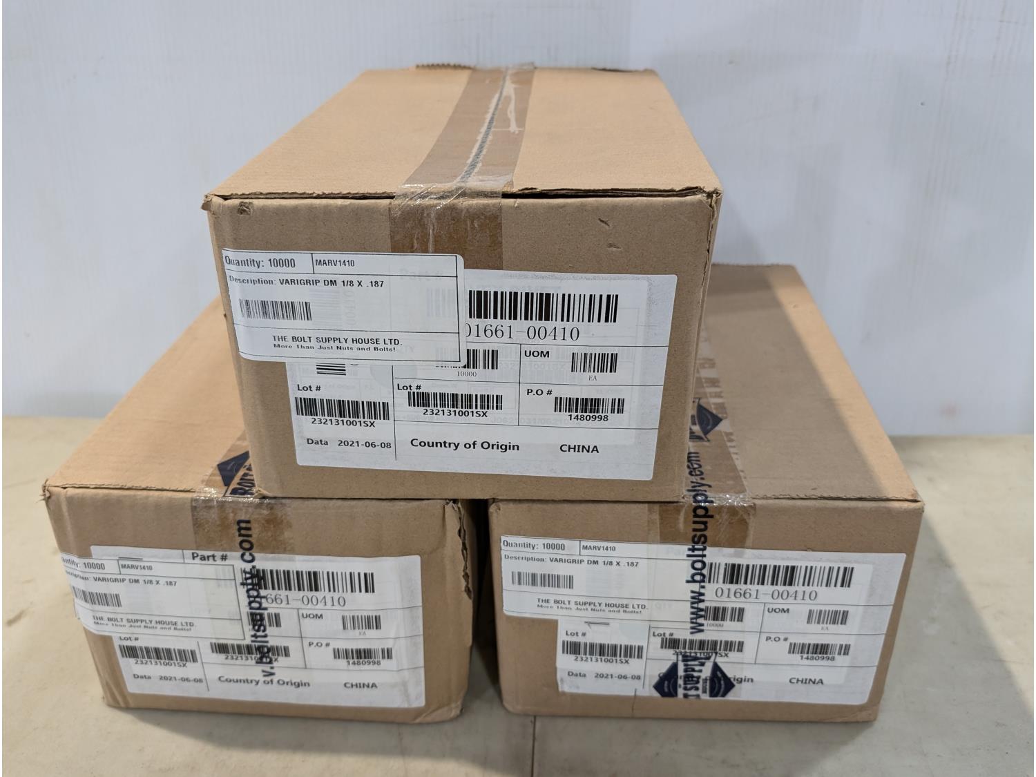 1776 (3) Cases of Bolt Supply House Varigrip DM 1/8 Inch X .187 Rivets (Unused)