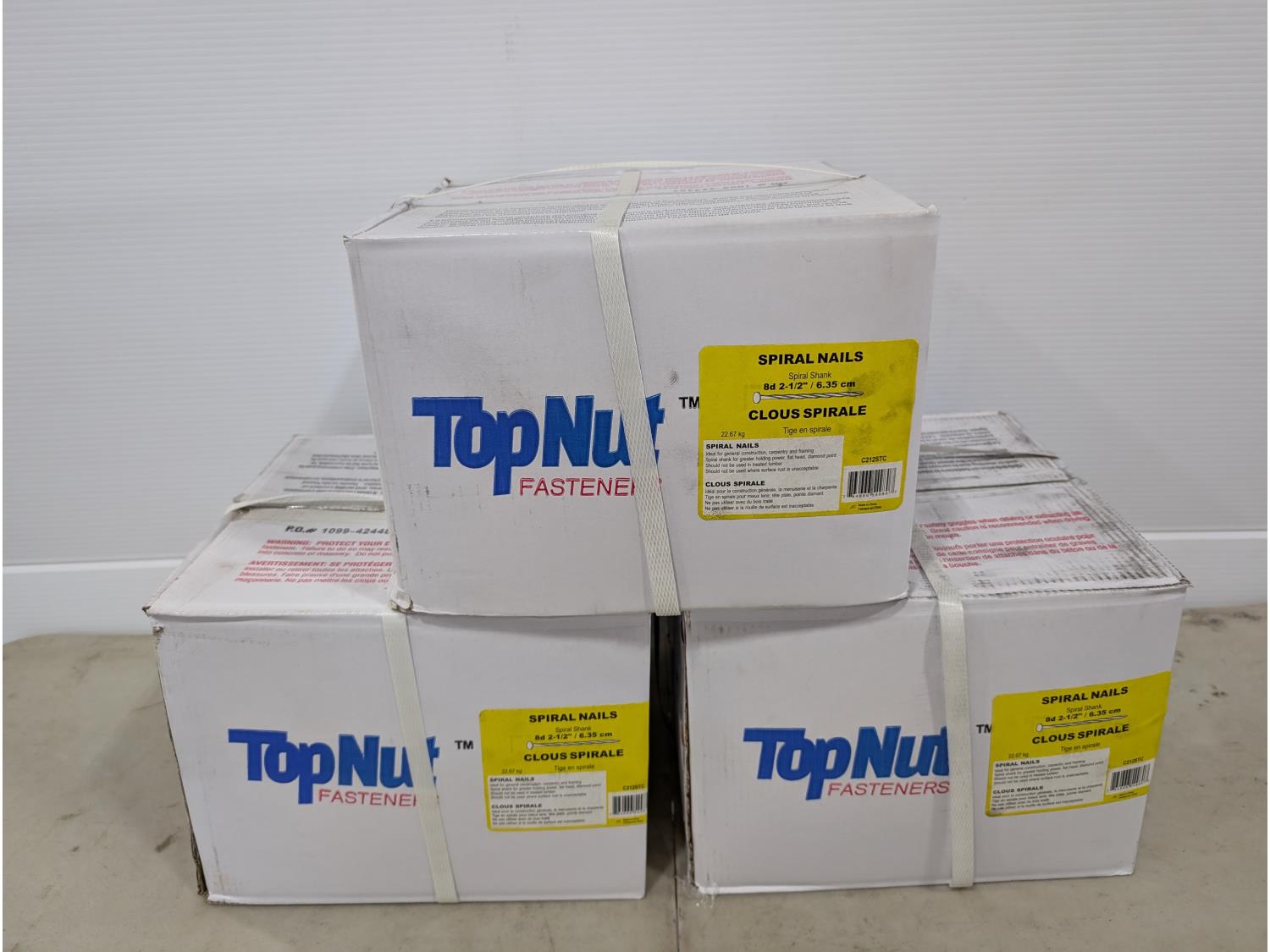 1830 (3) Cases of TopNut 2-1/2 Inch 8d Spiral Nails (Unused)