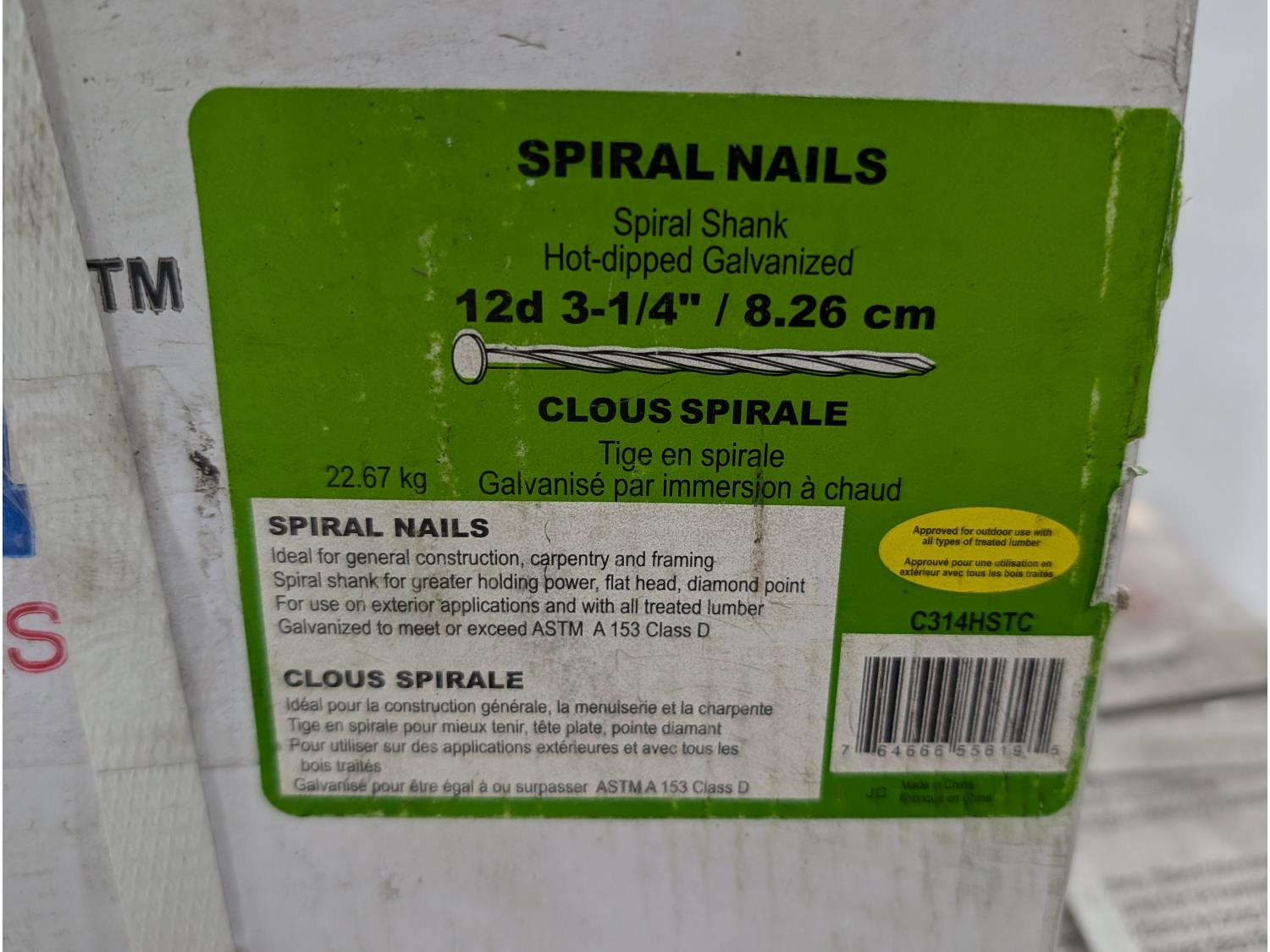 1872 (3) Cases of Topnut 3-1/4 Inch 12D Spiral Nails (Unused)