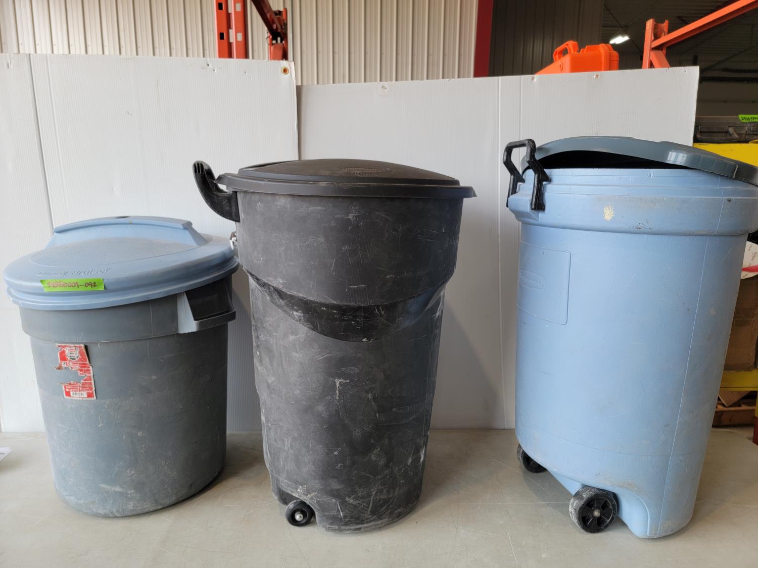 1486 Rubbermaid (3) Garbage Bins with Lids