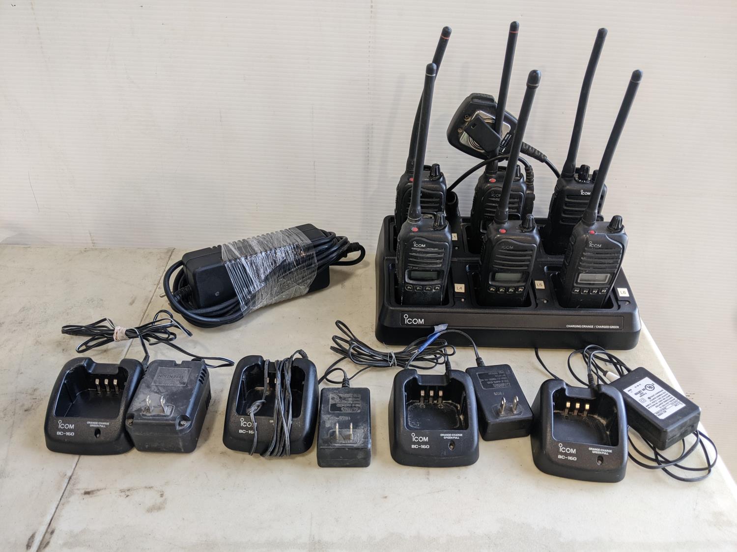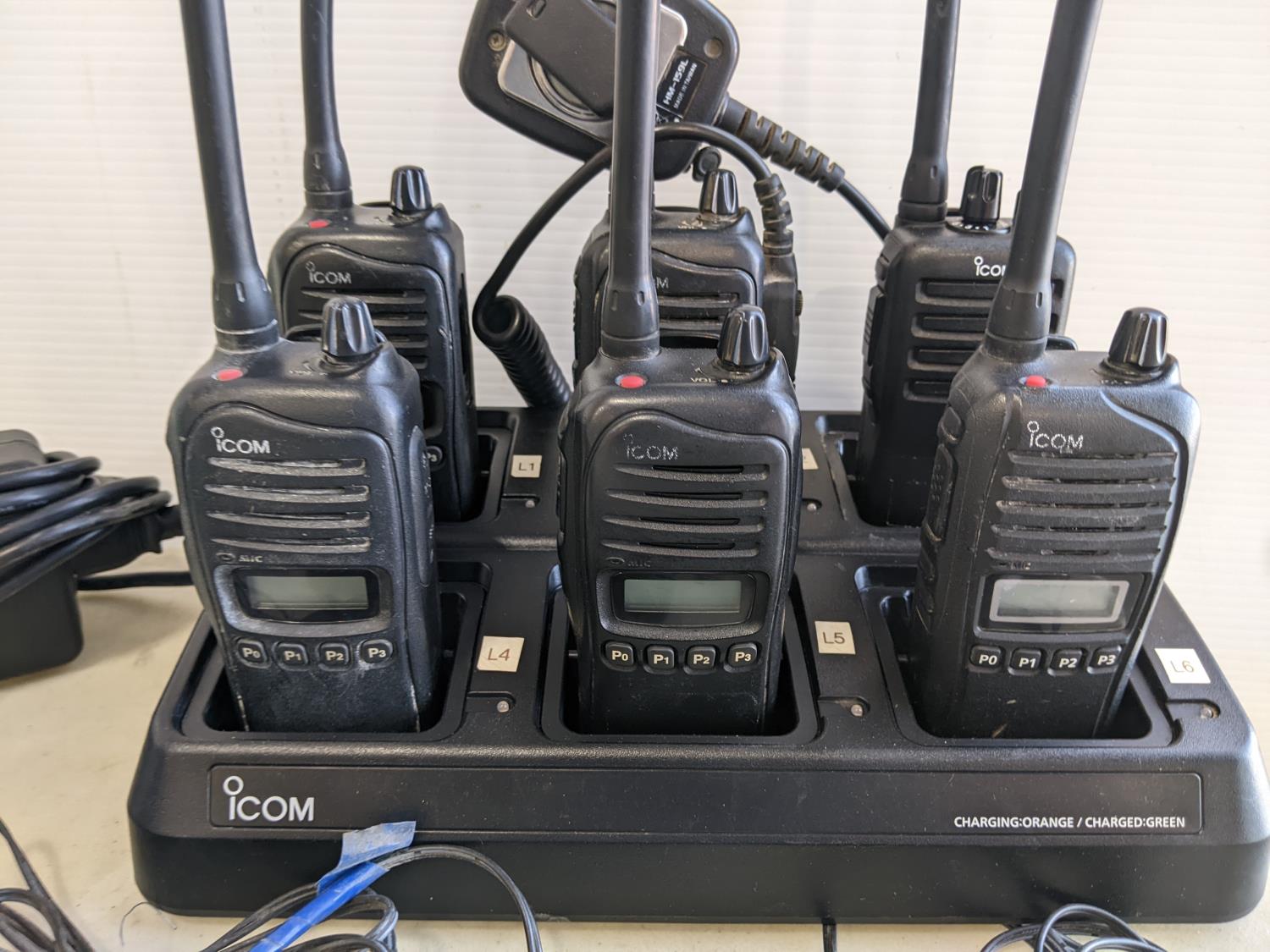 1703 (6) ICOM BC160 VHF Handheld Radios with Base Charger and Individual Chargers