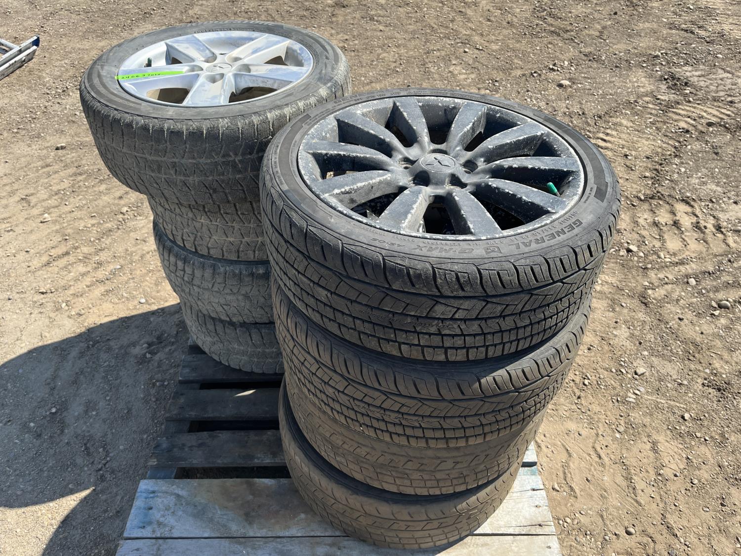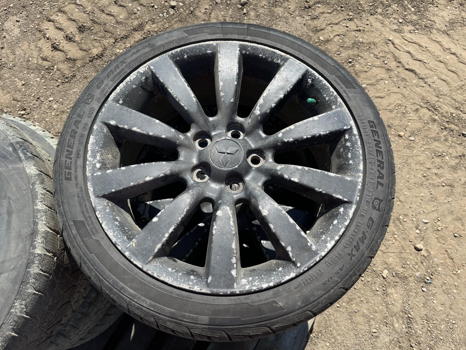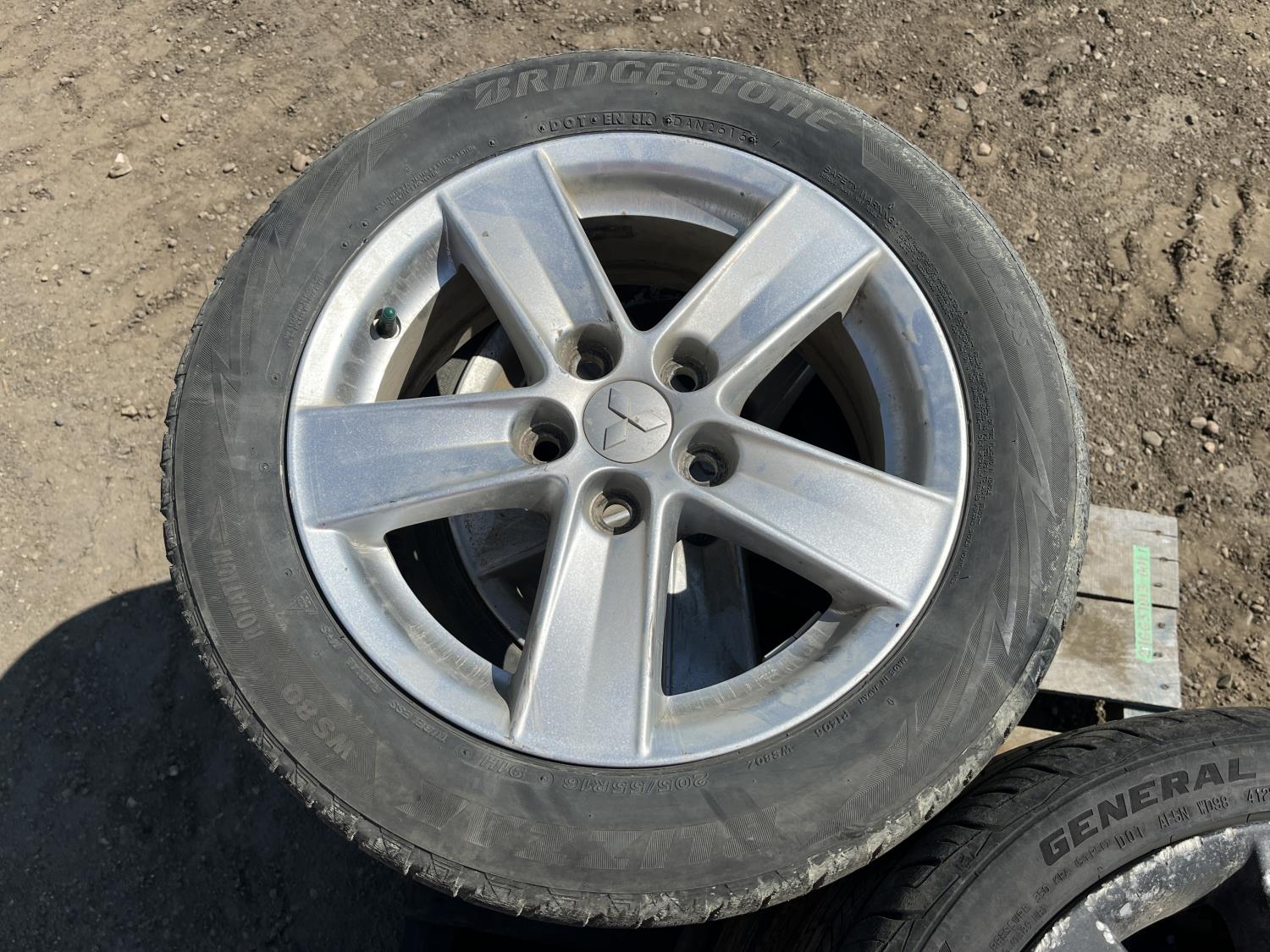 (4) Bridgestone 205/55R16 on Mitsubishi rims, (4) General 225/40R18 on Mitsubishi rims