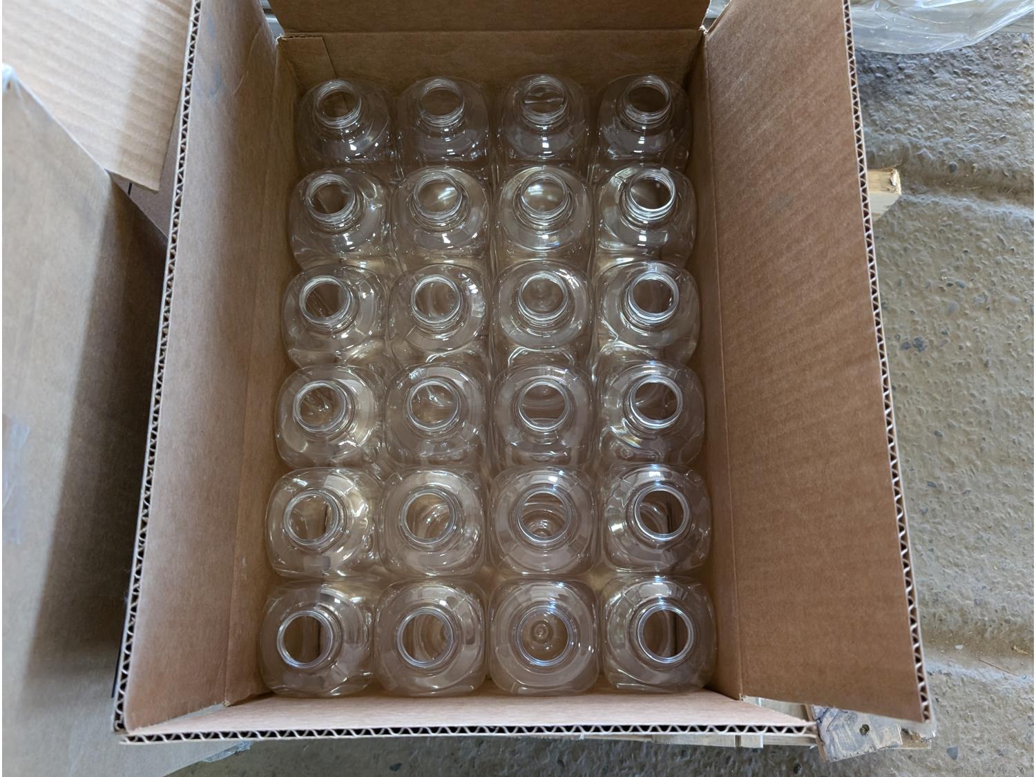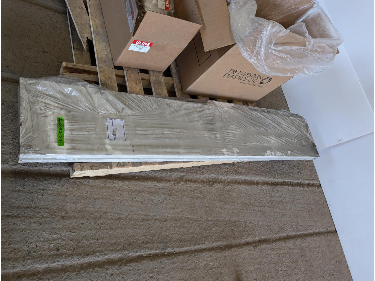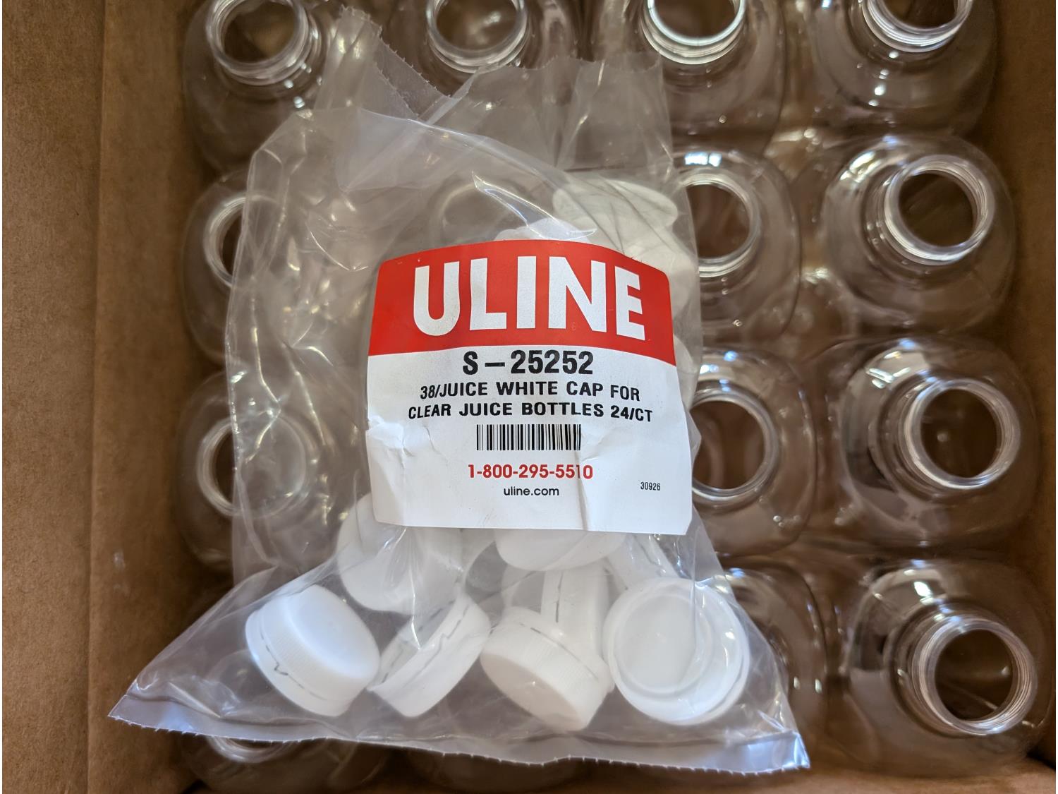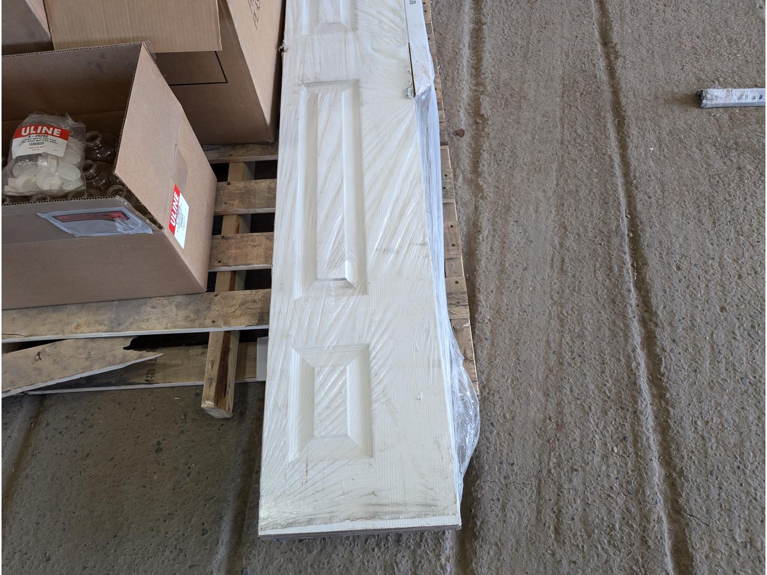 1469 Bi-Fold Door, (5) 1-1/2 Inch X 72 Inch Angle Steel, Qty of White Snap On Lids and (24) Juice Bottles