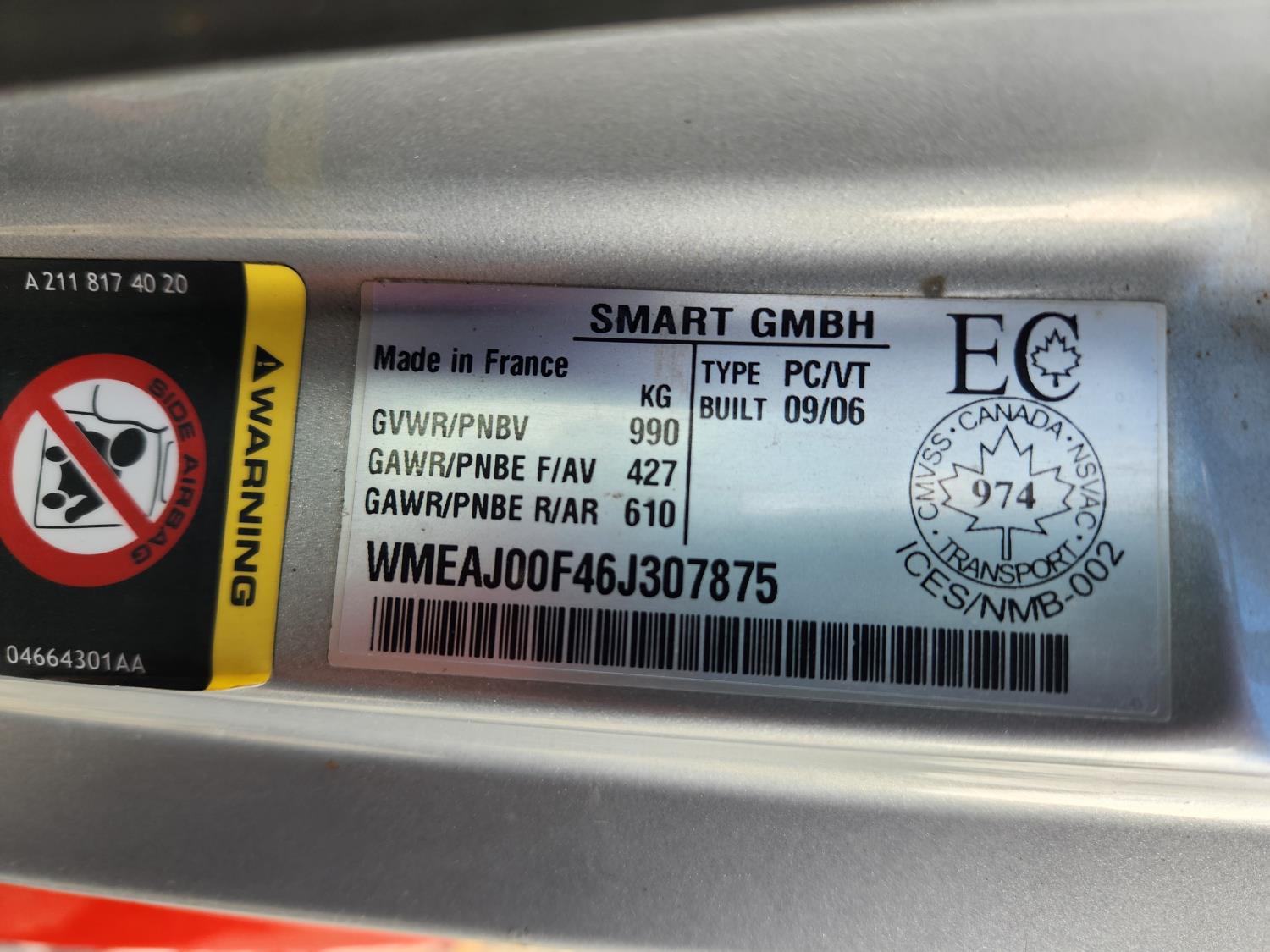 - WMEAJ00F46J307875