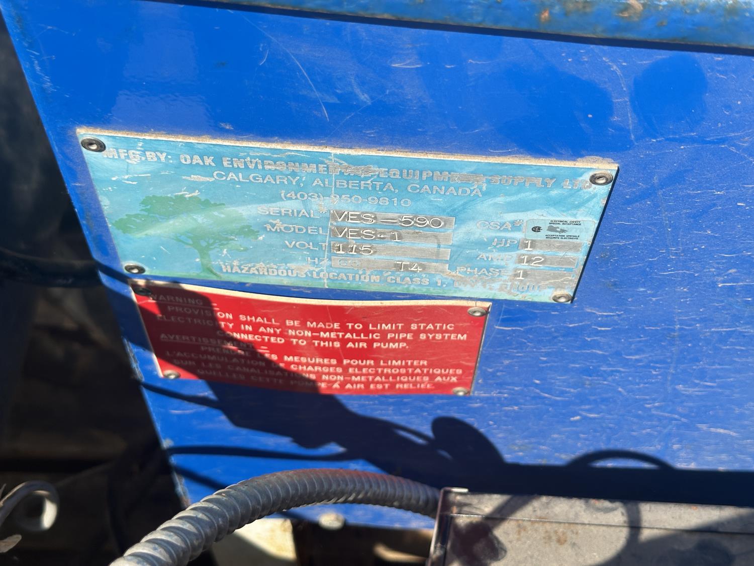 Honeywell: single phase, 115v, s/n CO7J1402, Oak Environmental: 115v, single phase s/n VES-590