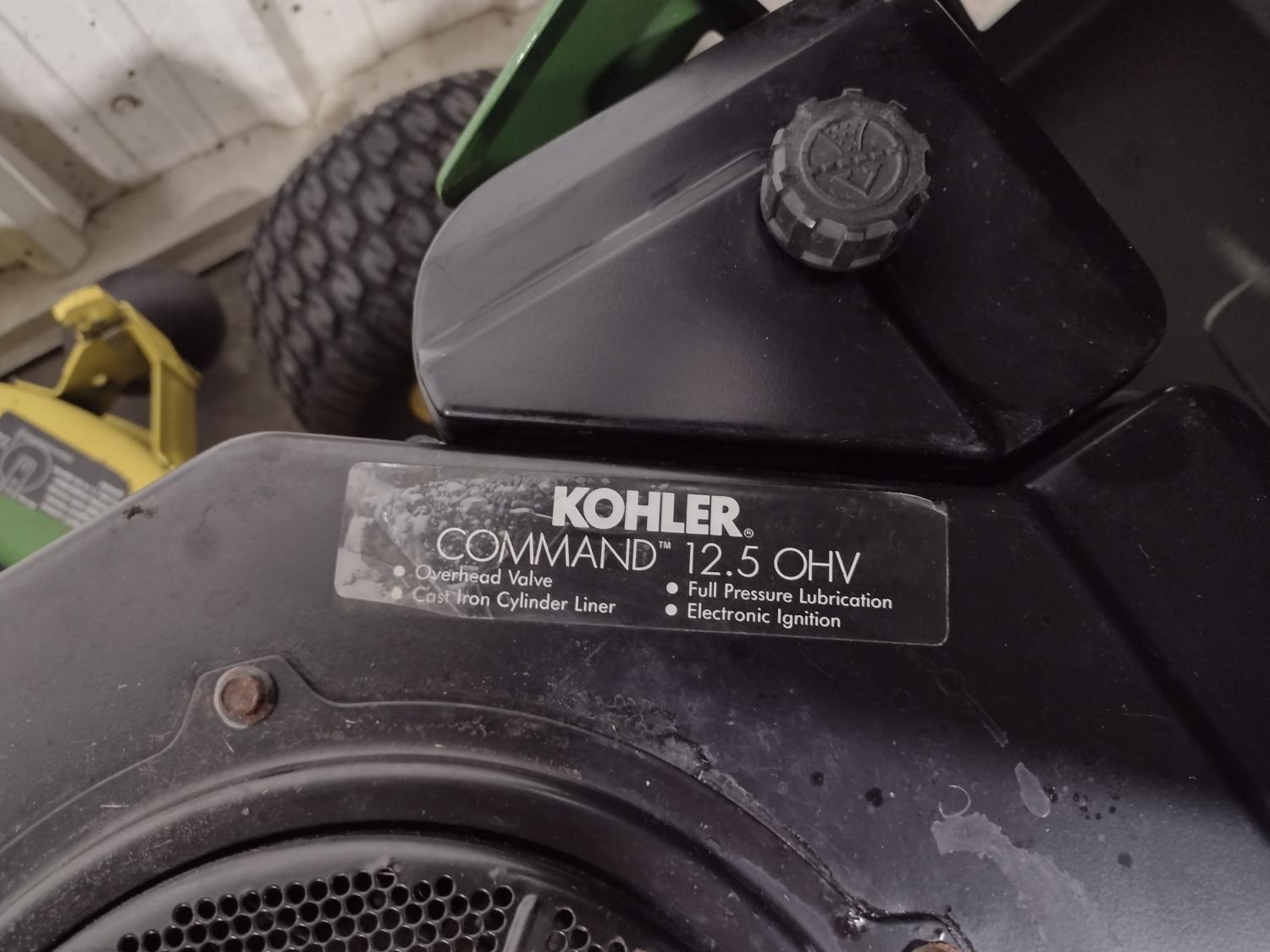 Kohler 12.5 HP single cylinder engine, standard transmission, 38 inch mower deck