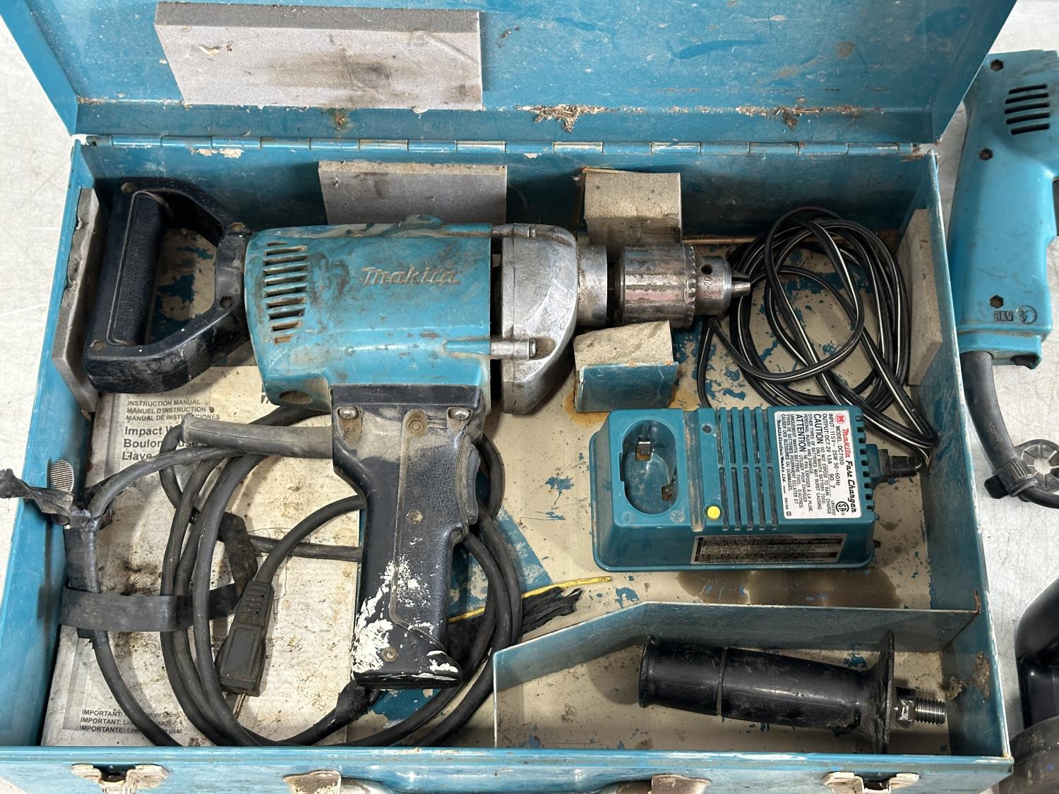 impact hammer drill, (2) drills, twin 18v brushless angle drill, charger