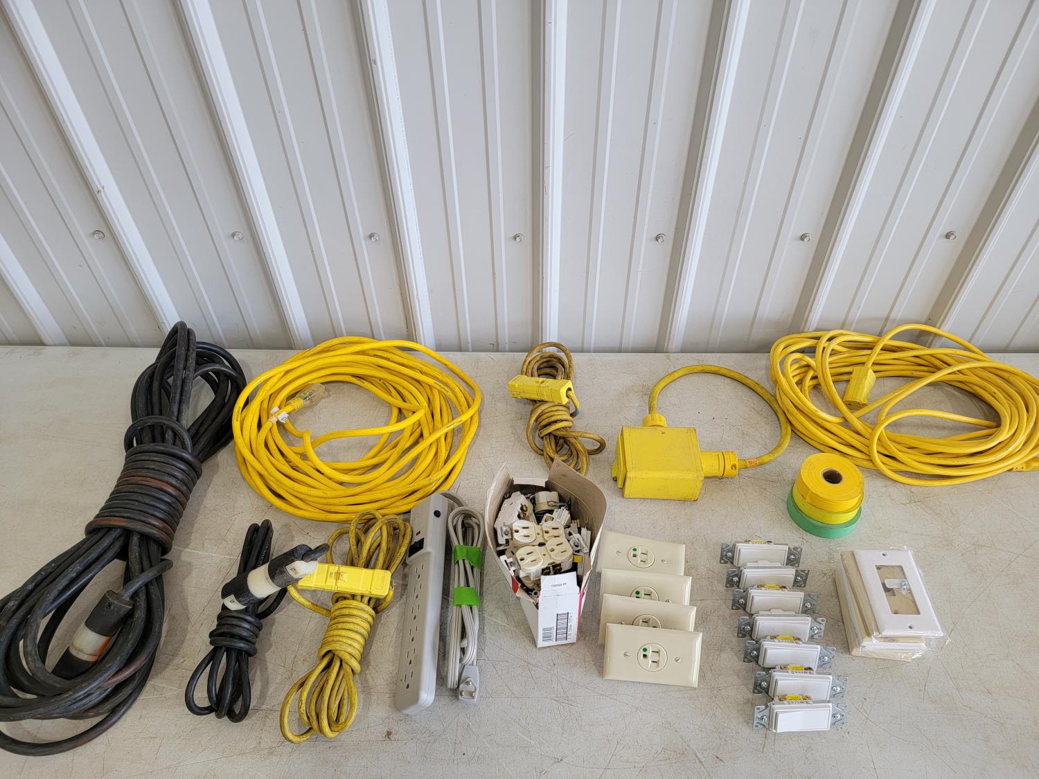 extension cords, outlet switches, plug-ins, power strip, electrical tape