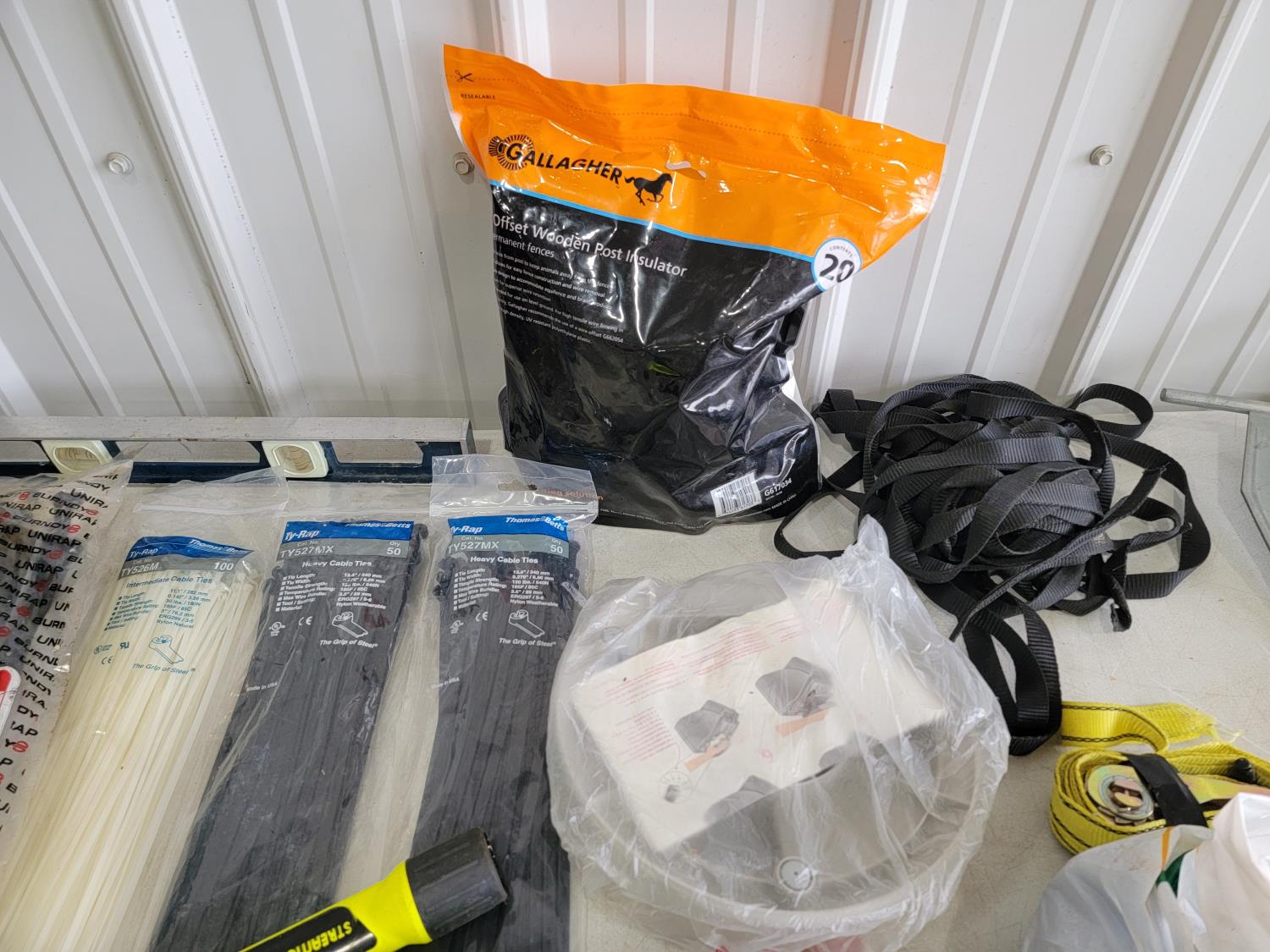 Car code reader, cable ties, level, straps