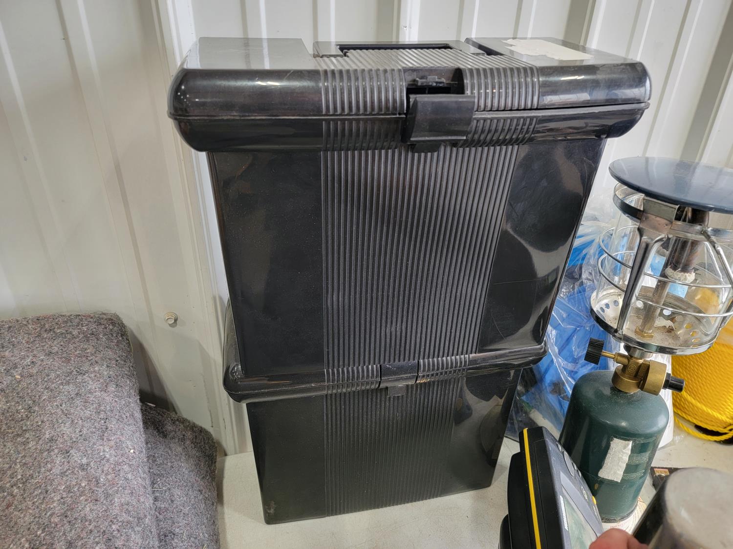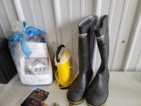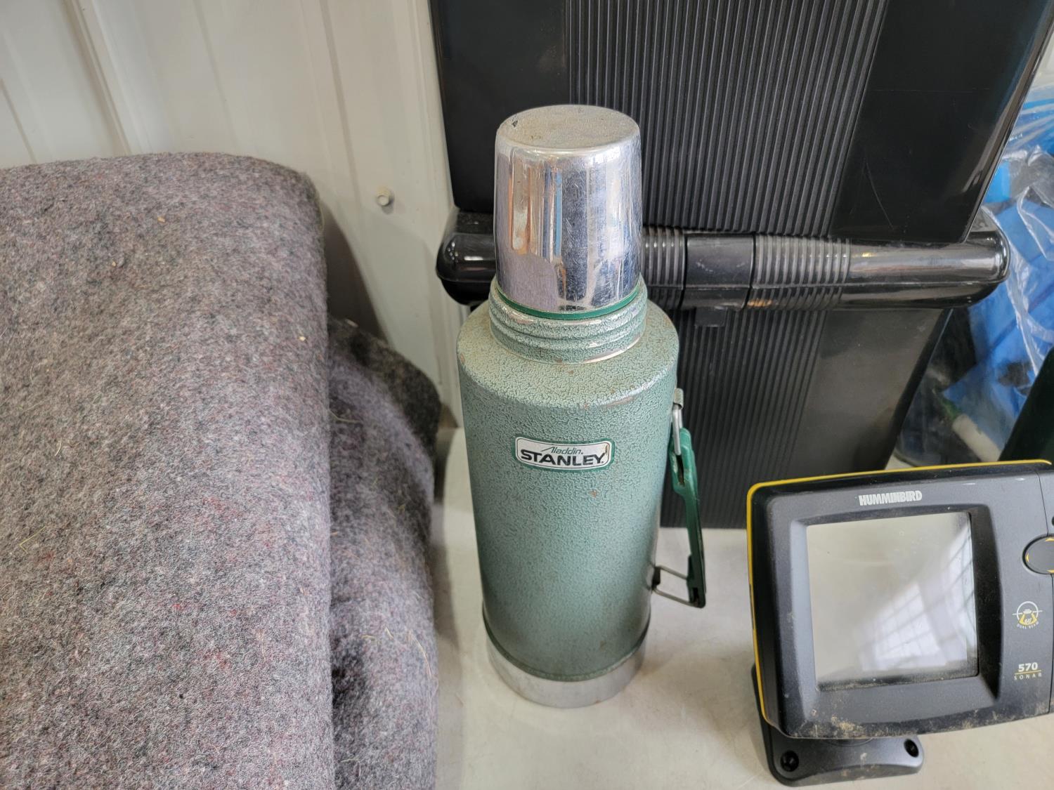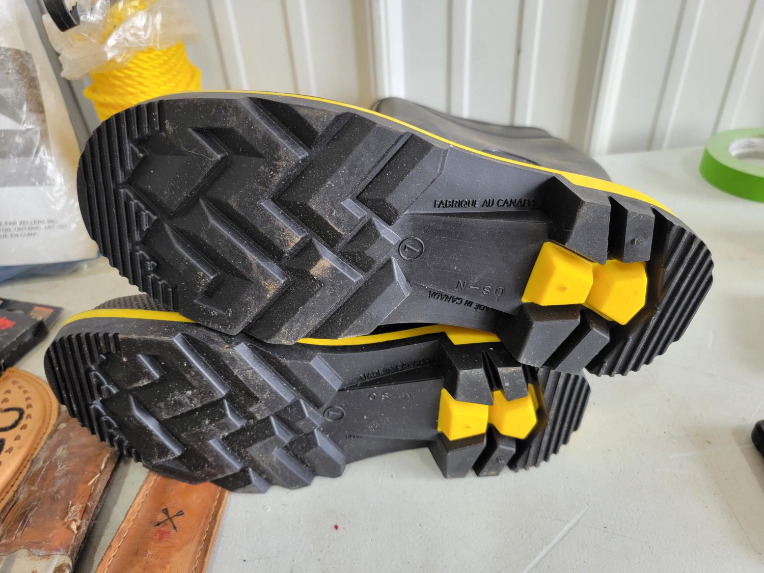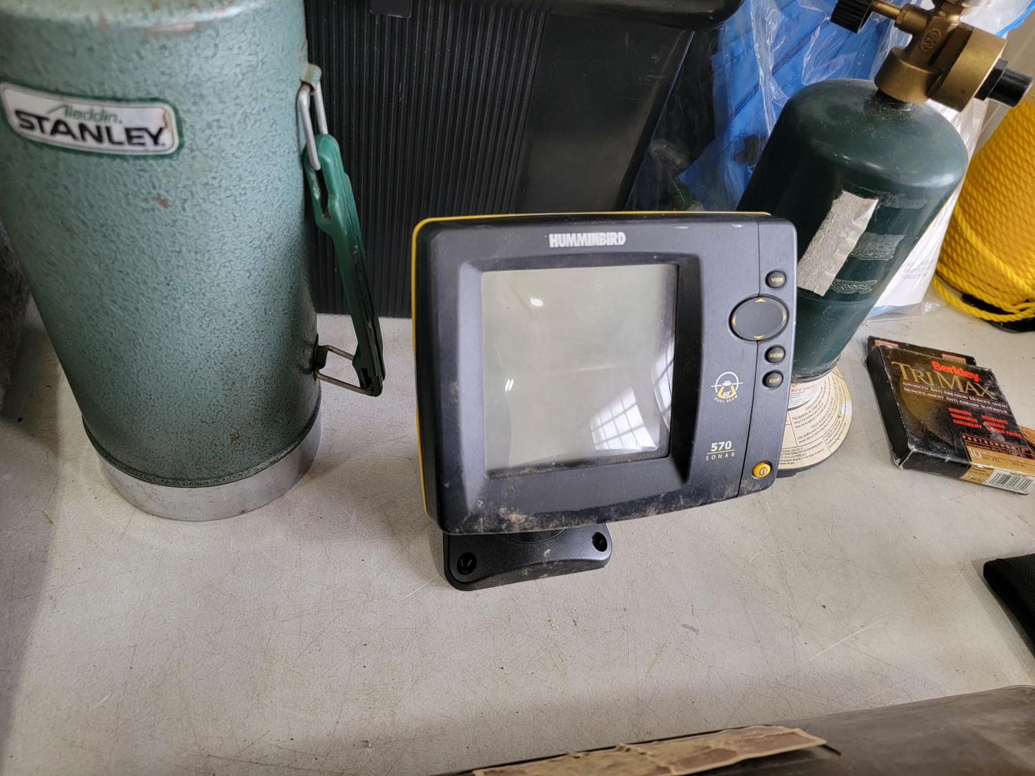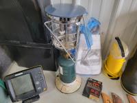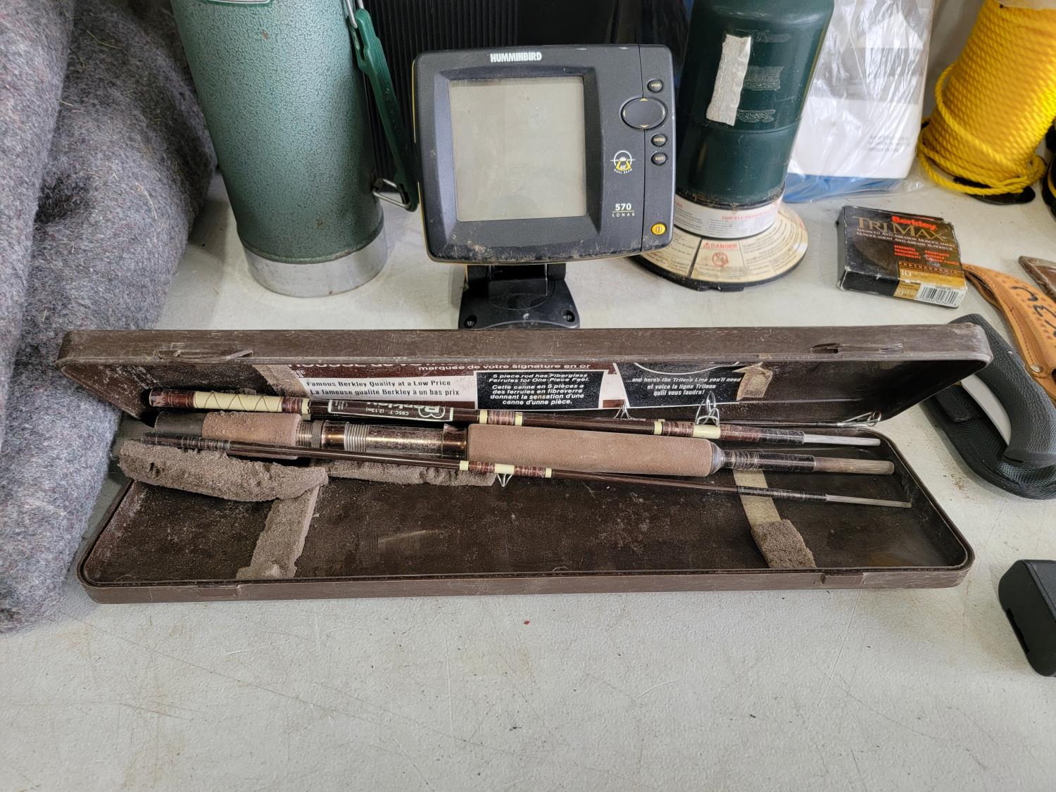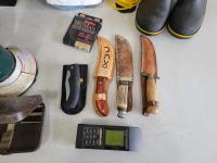 Knives, rope, rubber boots, fishing rod, lantern, Magellan GPS