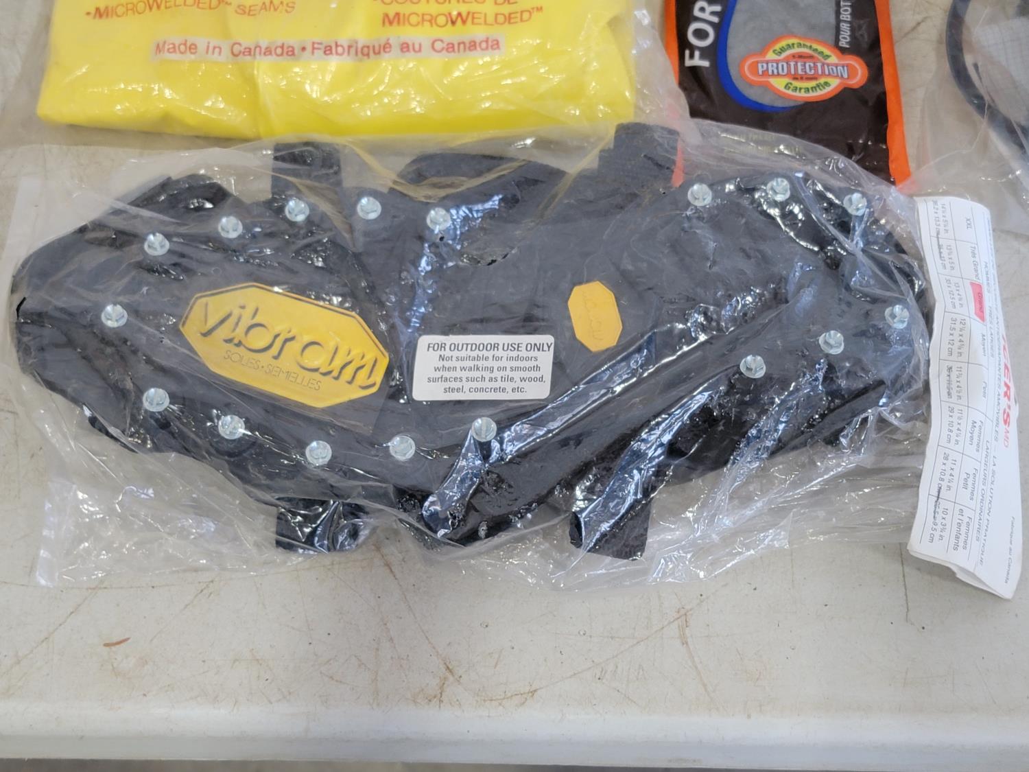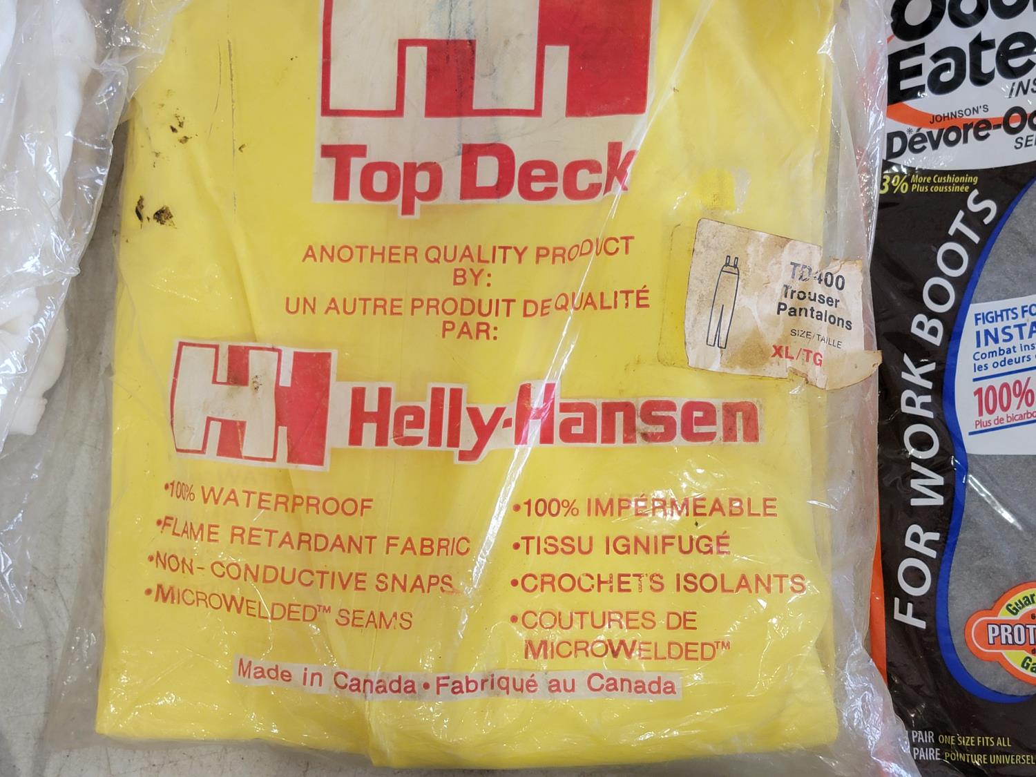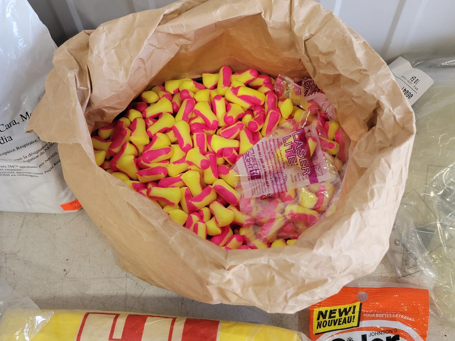 half face respirators, xl rain trousers, clear acetate visors, ear plugs, boot grips, hard hat