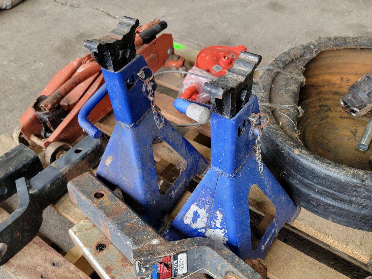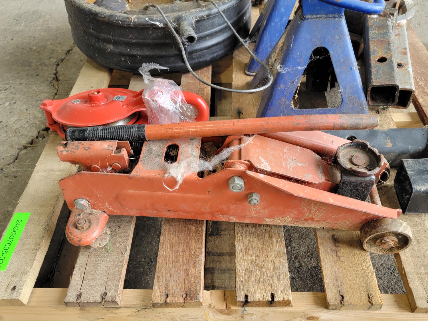 Jack stands, ball hitches, floor jack, pulley, oil pan