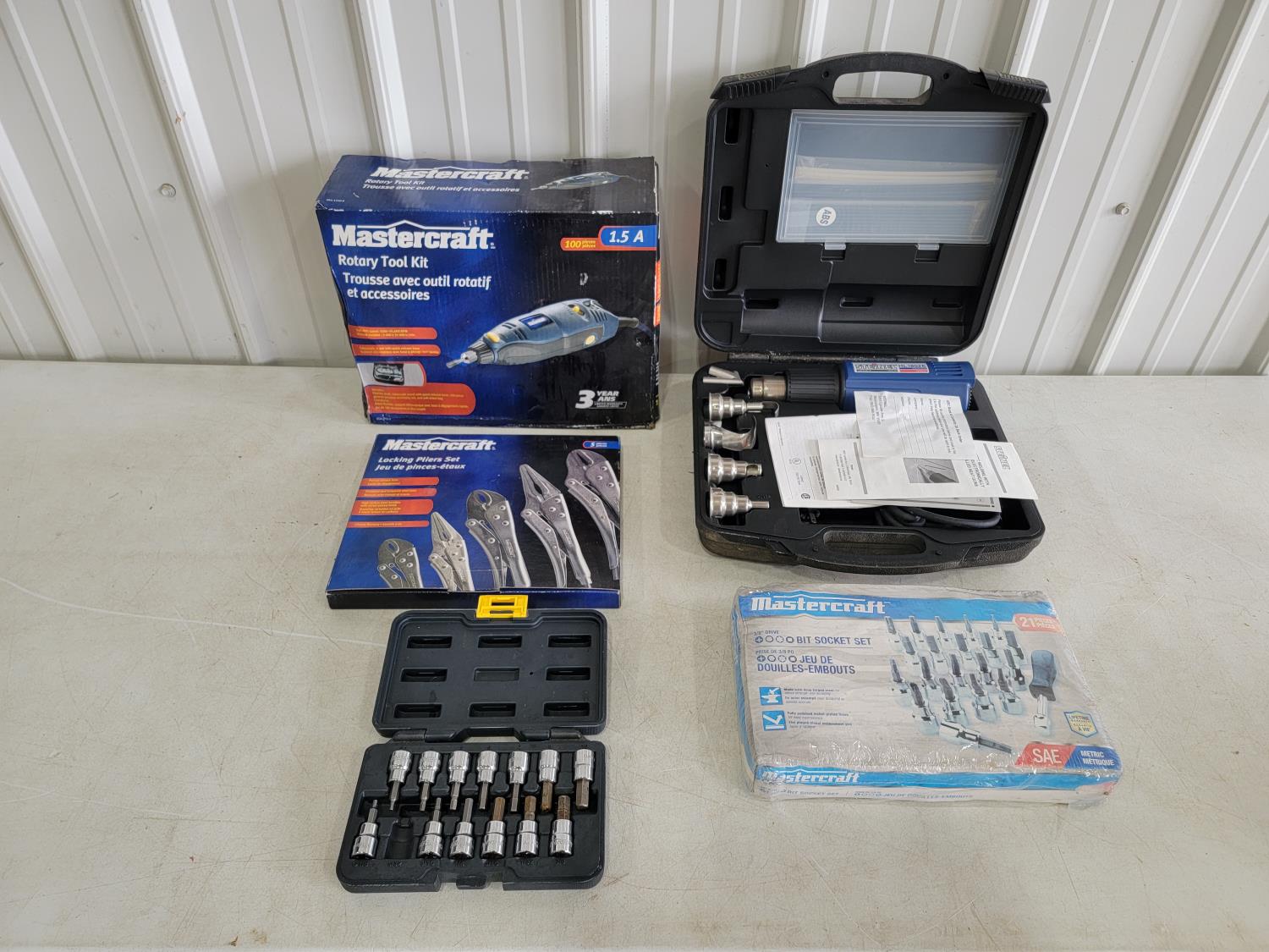 Mastercraft rotary tool, Mastercraft bit socket set, torque bits, locking pliers