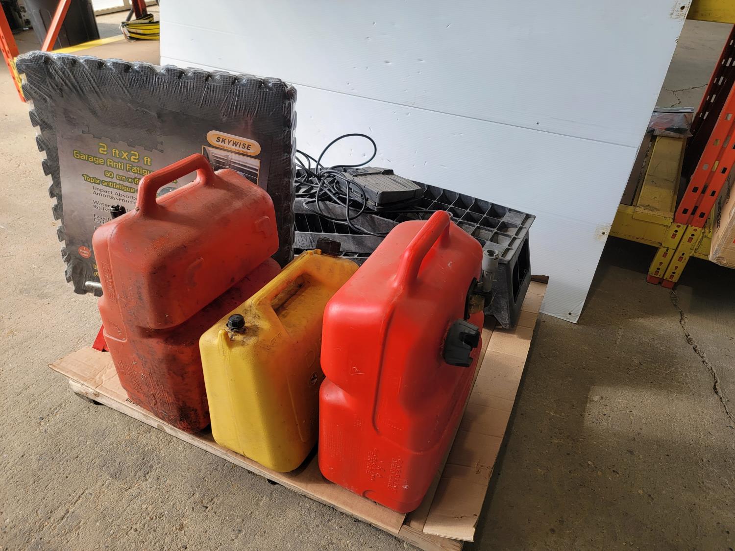 (4) 24 inch x 24 inch anti fatigue mats, jack stands, jerry can, fuel tanks, foot pedal control, vehicle ramps