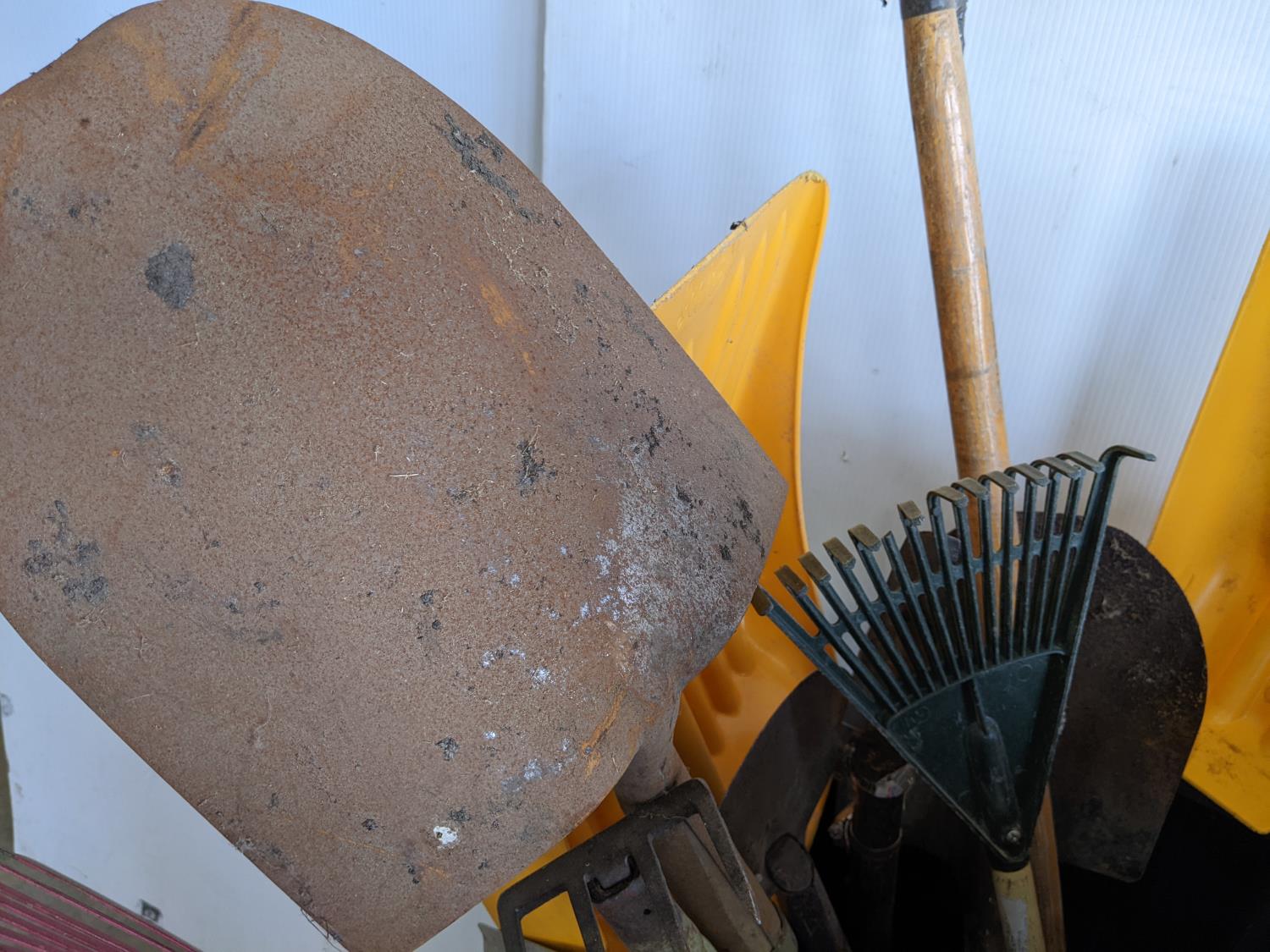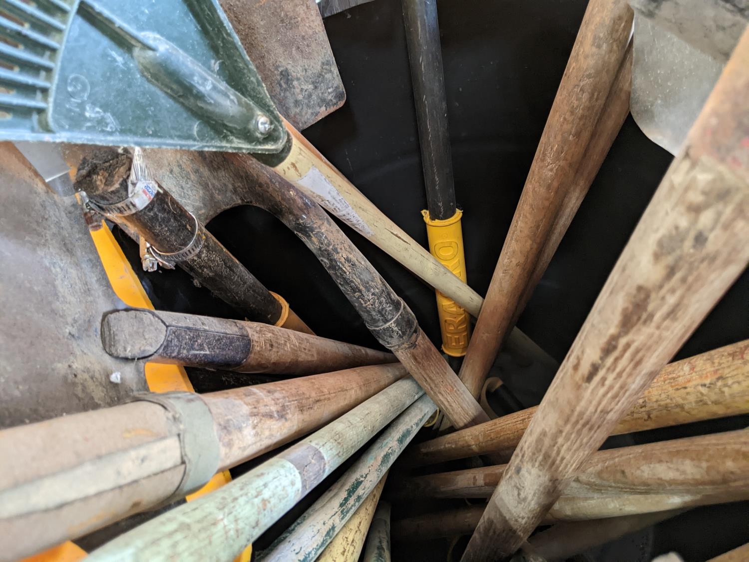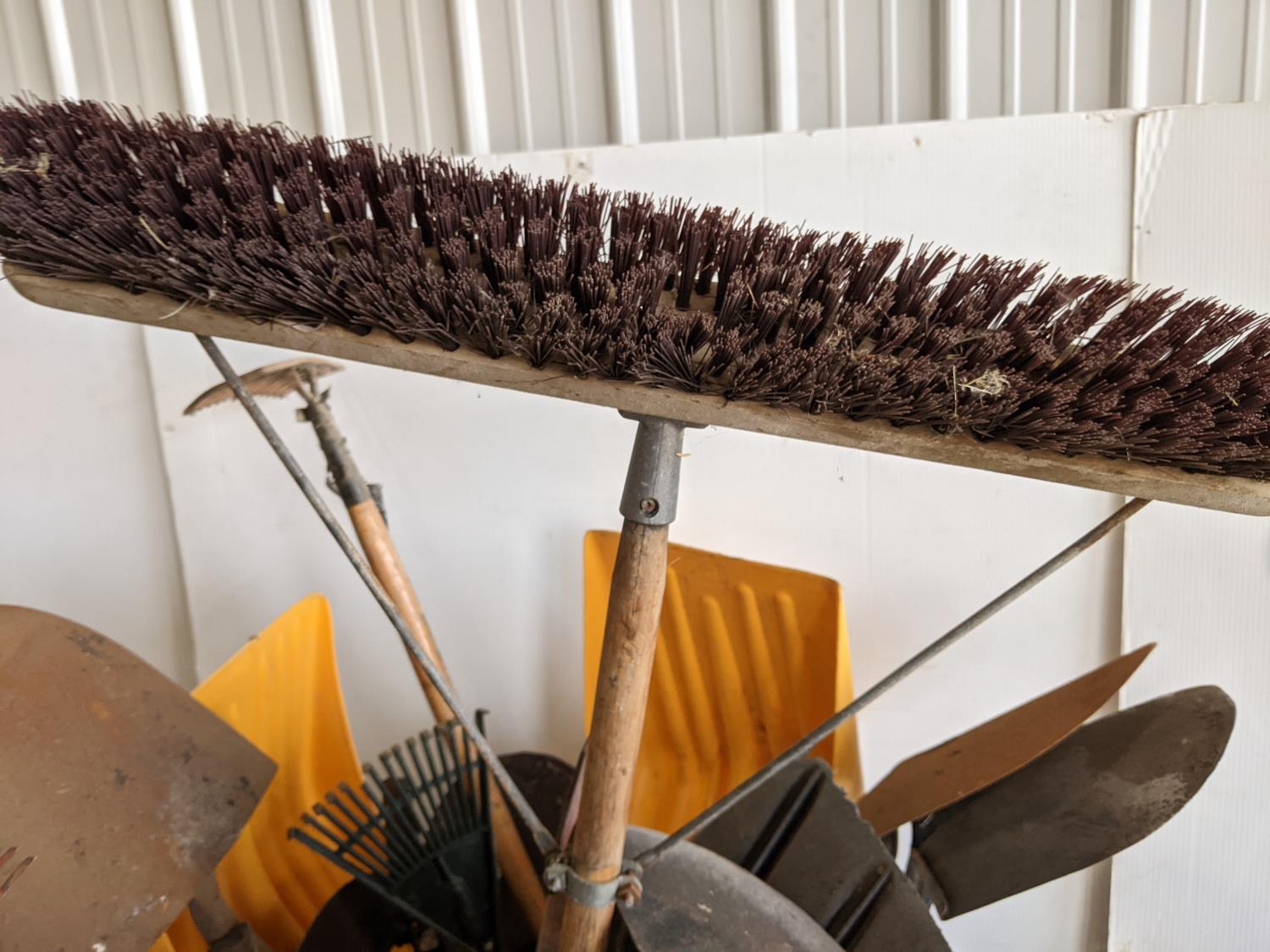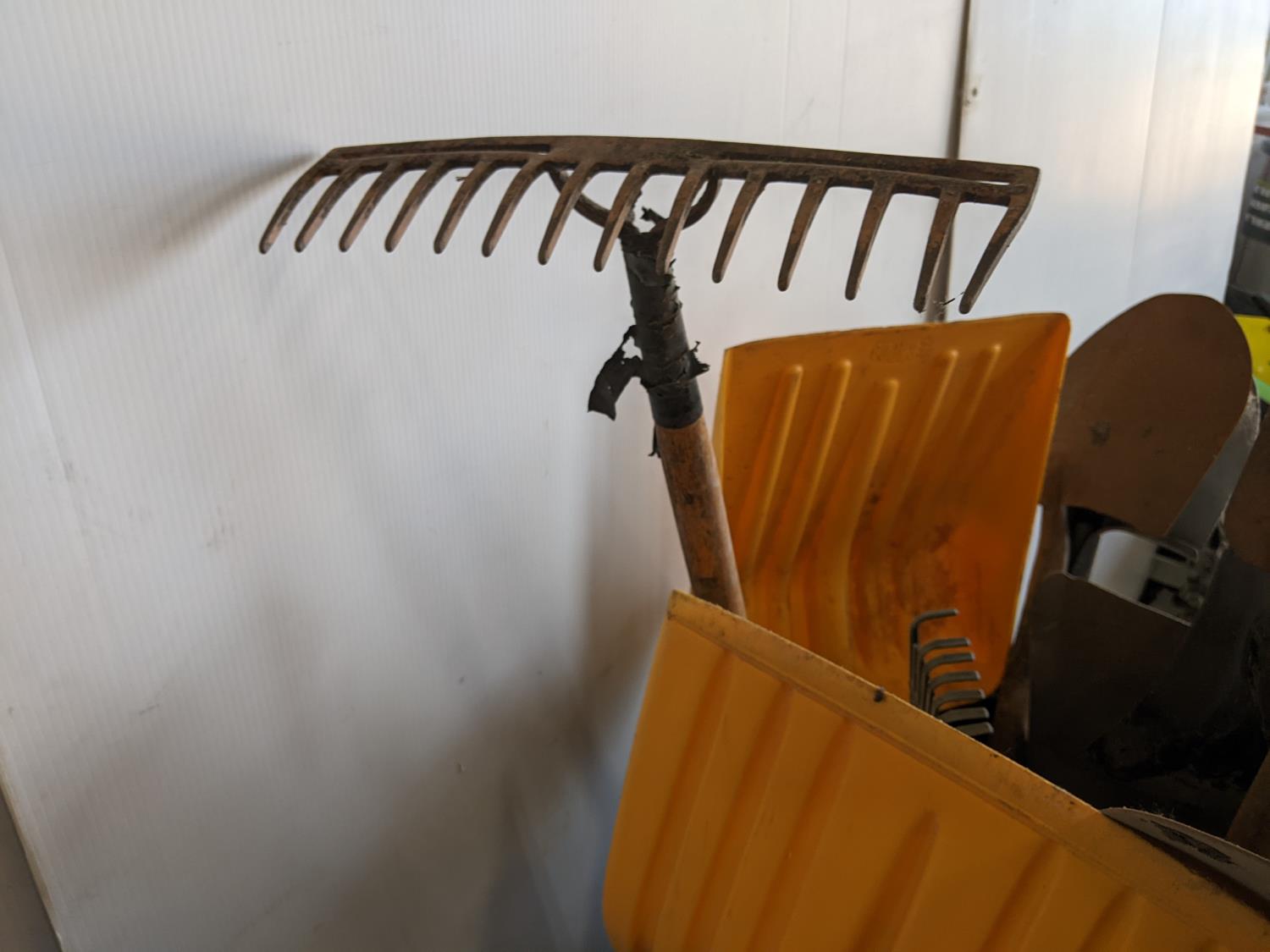 rakes, shovels, brooms, hoe