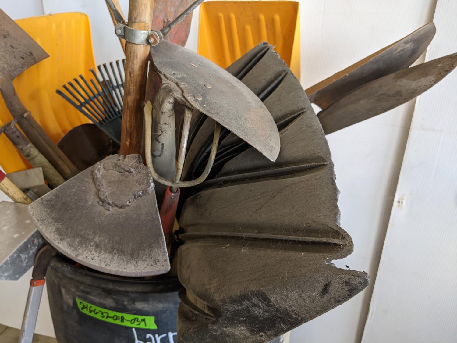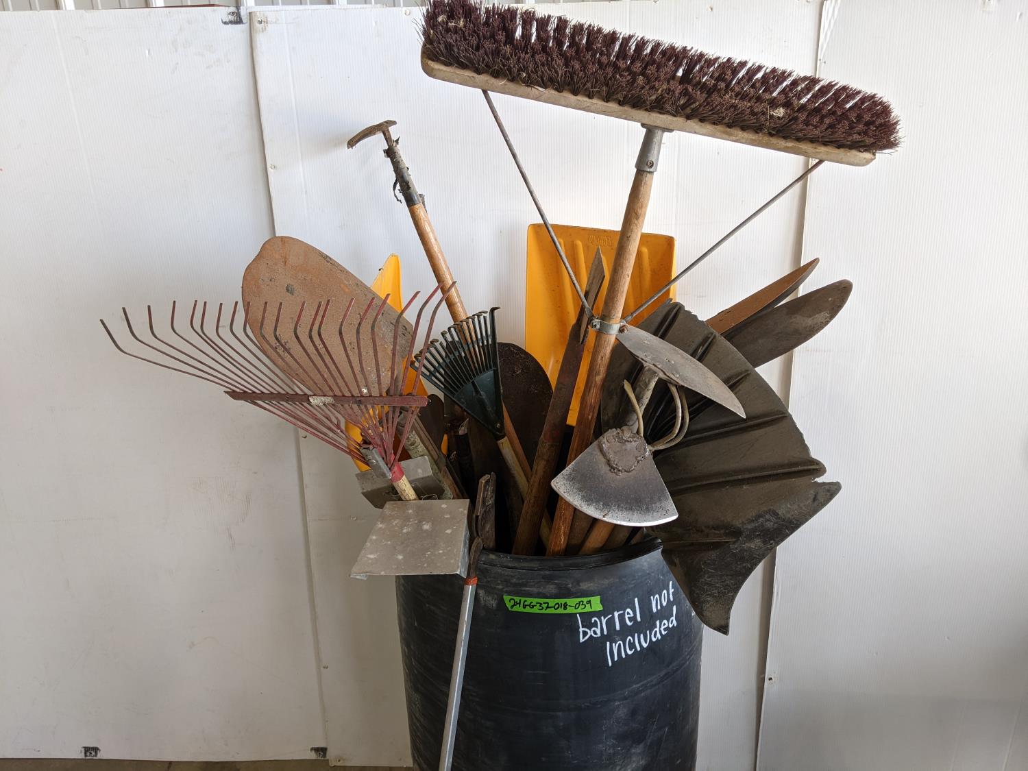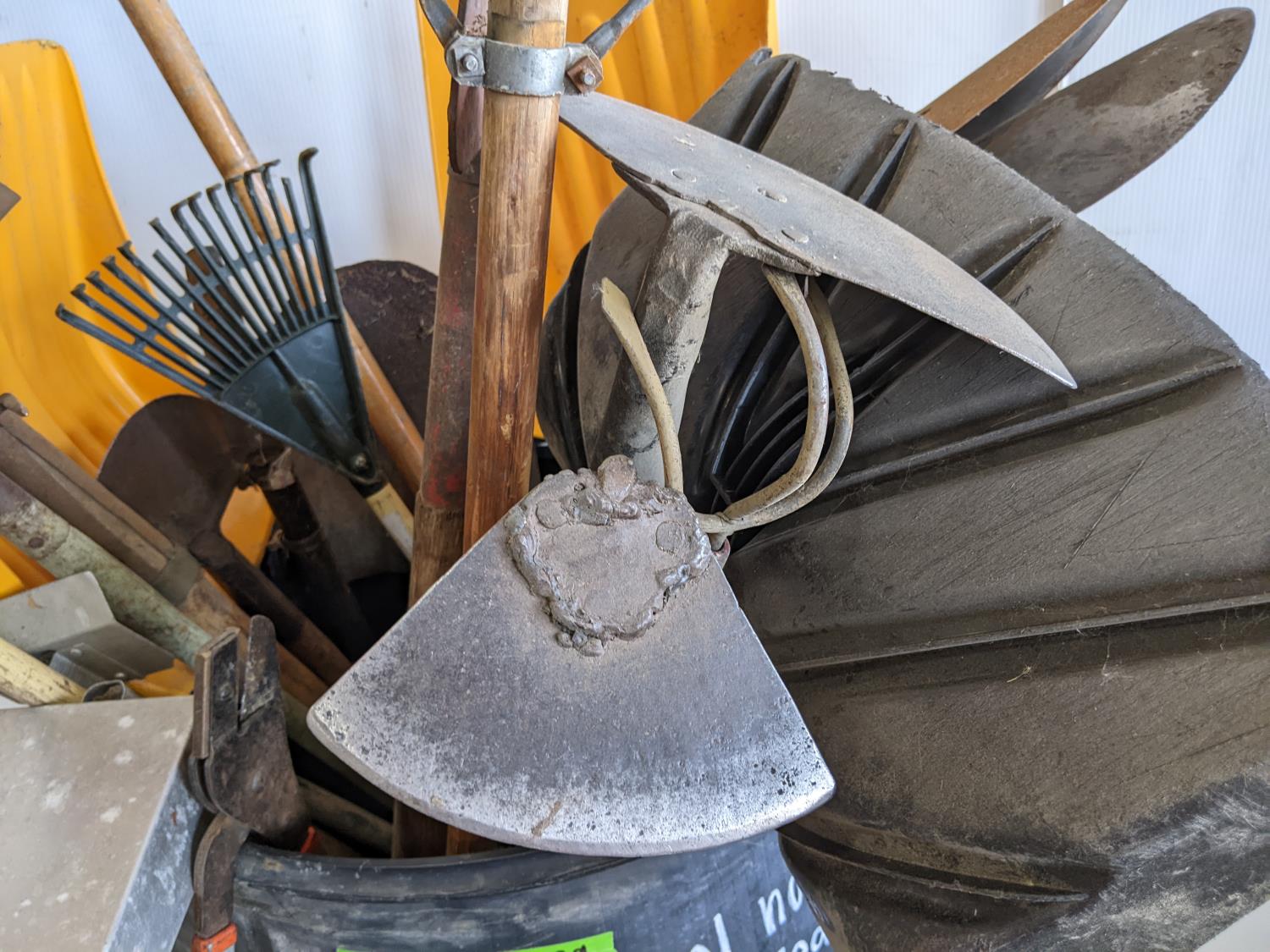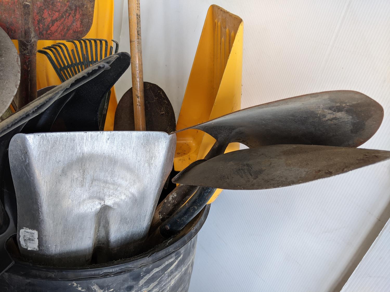 rakes, shovels, brooms, hoe