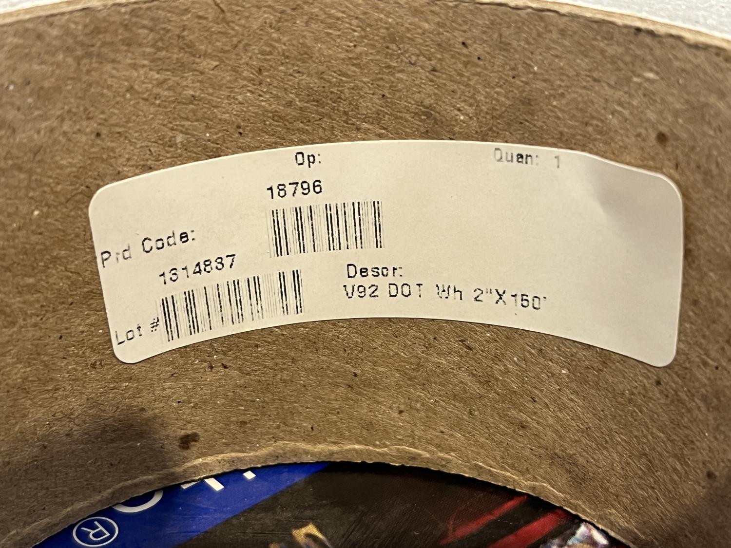 2 inch wide, 150 ft long per roll