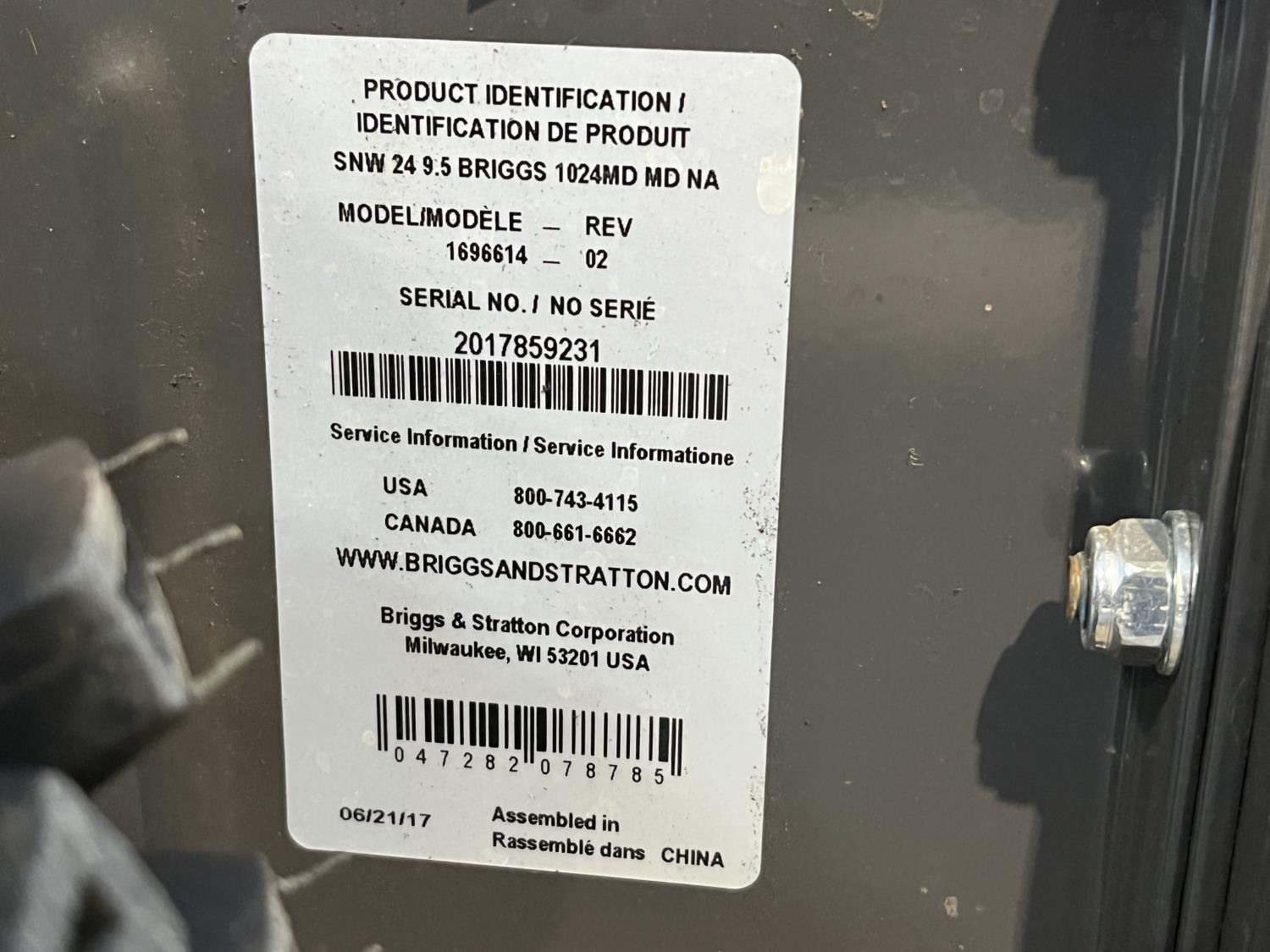 1364 Briggs & Stratton 1024MD Walk Behind 24 Inch Dual Stage Snowblower