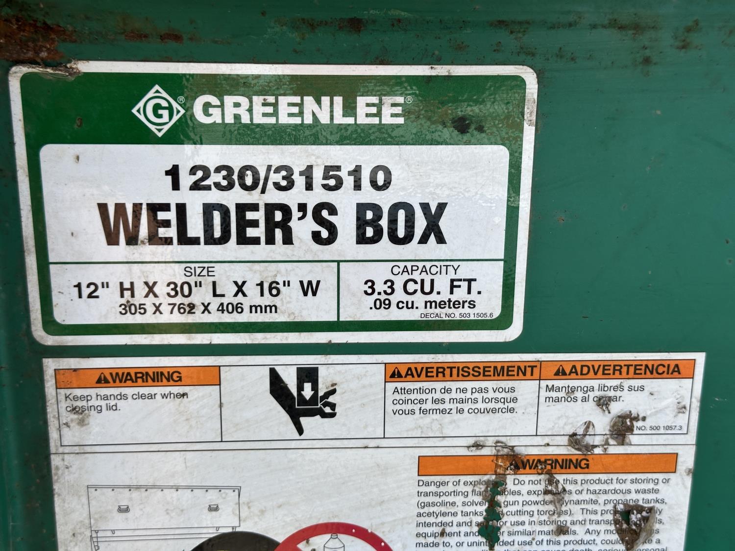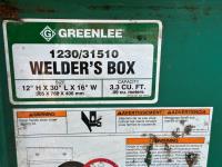 Greenlee welders box 16 inch w x 30 inch d x 12 inch h, welding cart 14-1/2 inch w x 7 inch d x 24 inch h