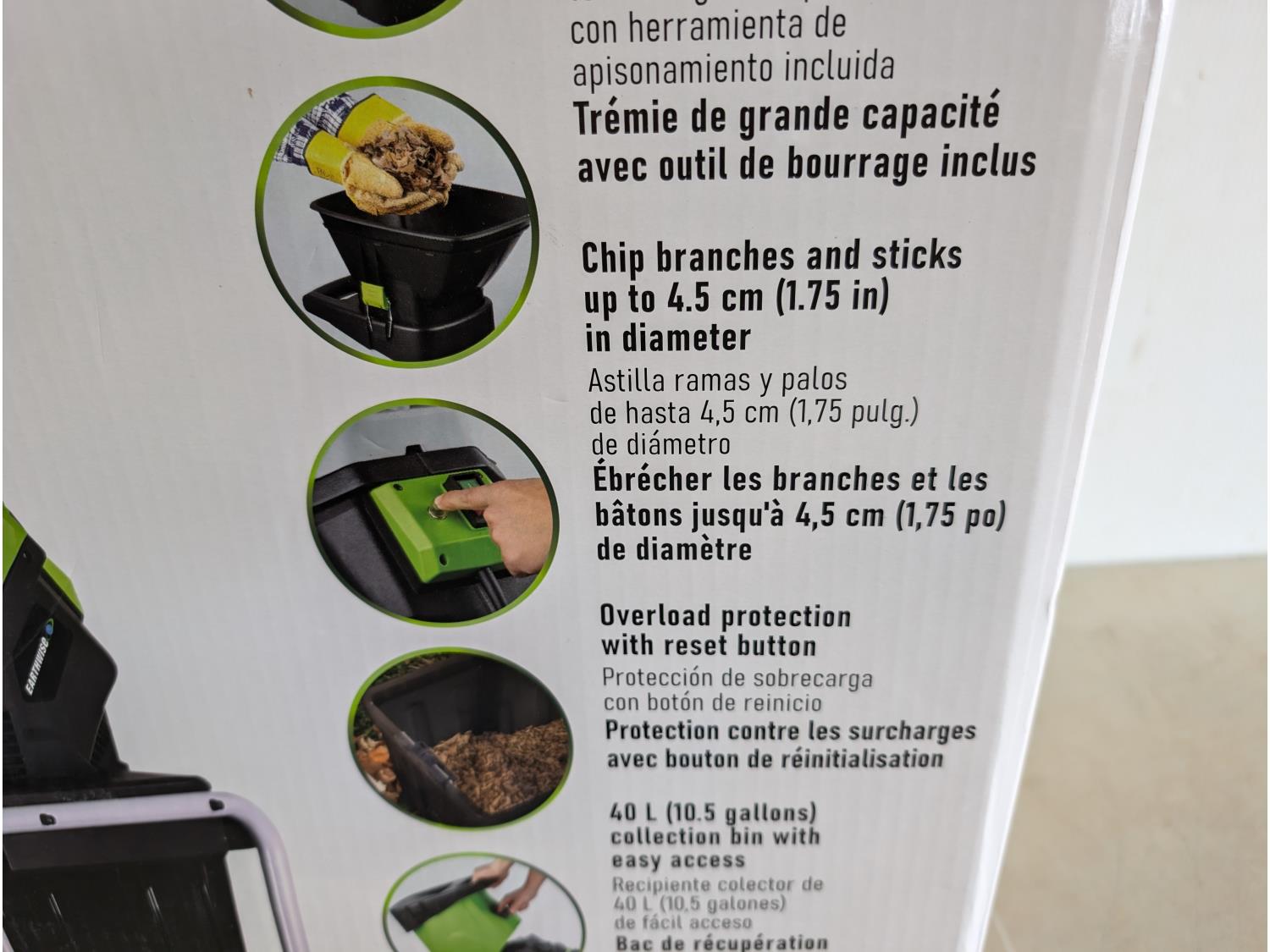 40L capacity, cuts up to 1.75 inch diameter,